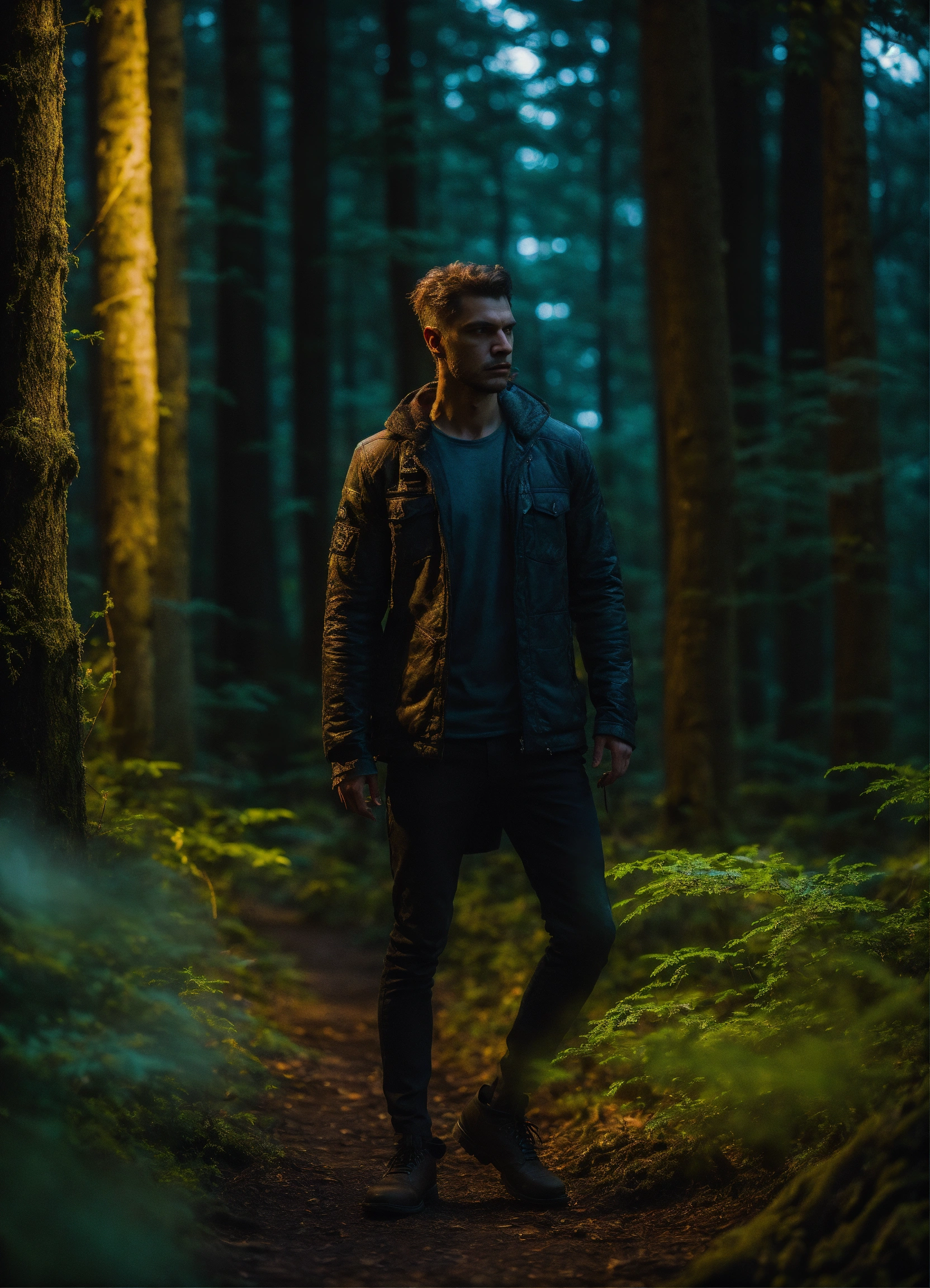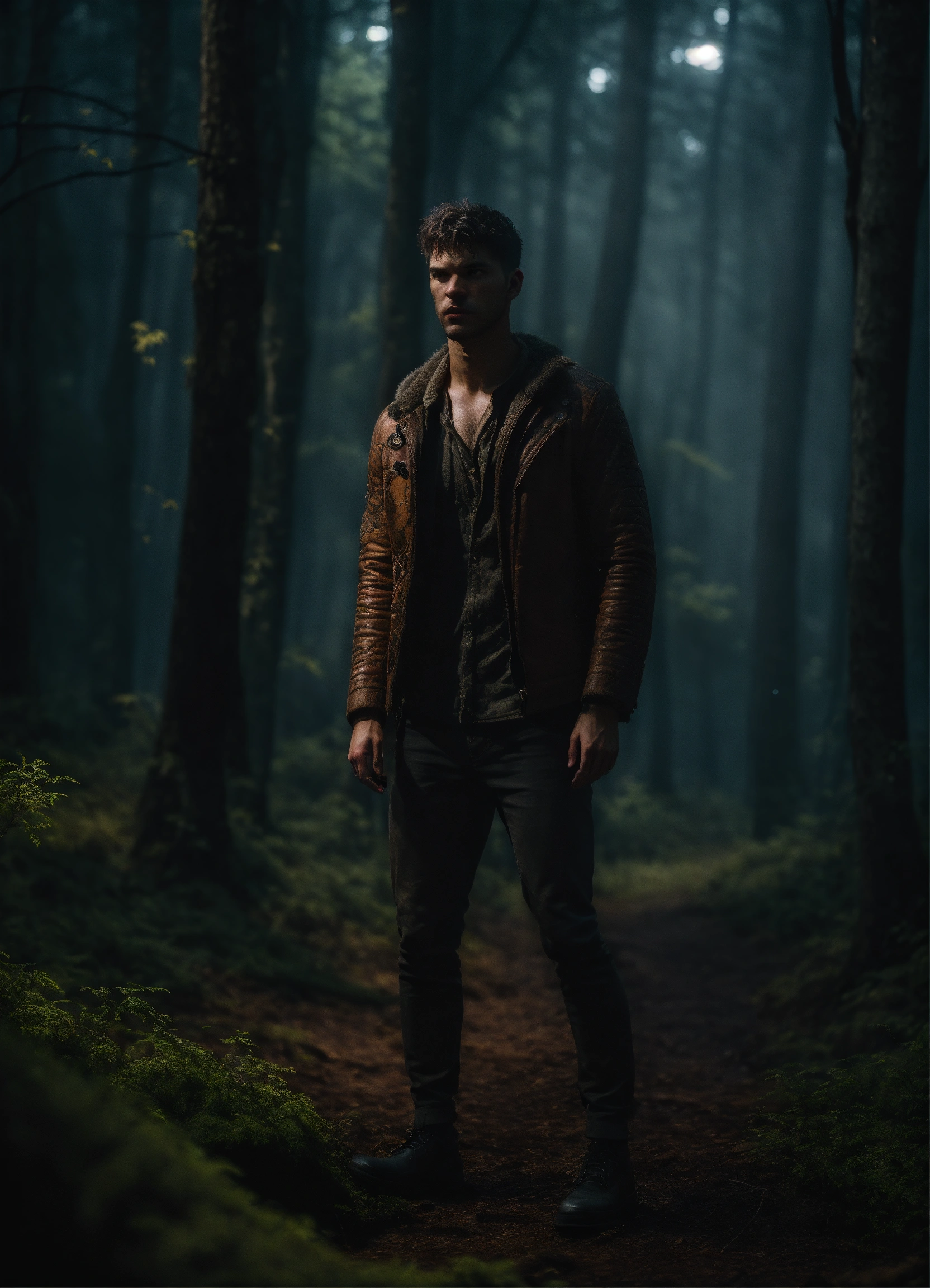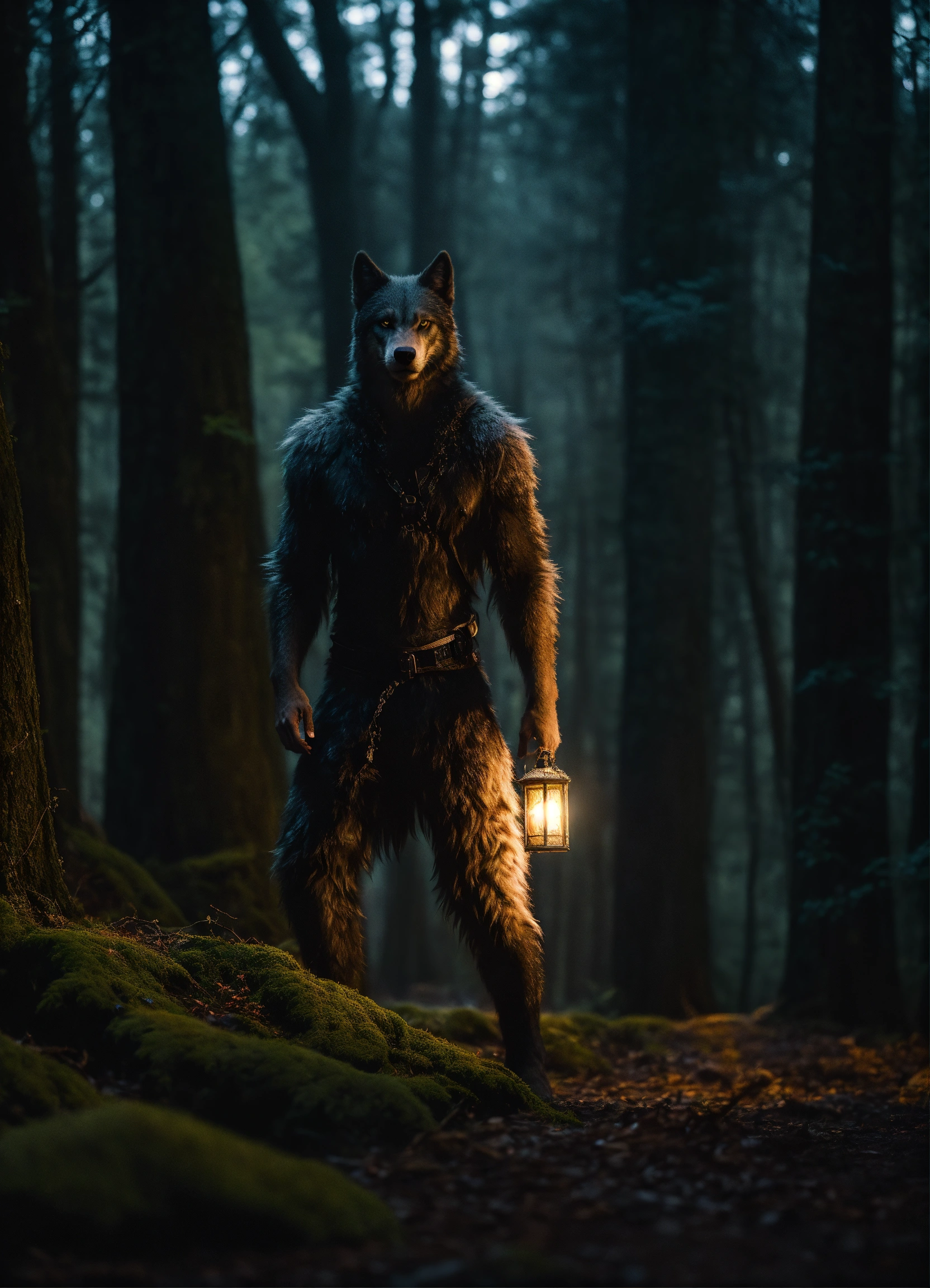 Skinny, gaunt, werewolf, moody lighting, night, in a dark forest, best quality, full body portrait, real picture, intricate details, depth of field, fujifilm xt3, outdoors, raw photo, 8k uhd, film grain, unreal engine 5, ray tracing