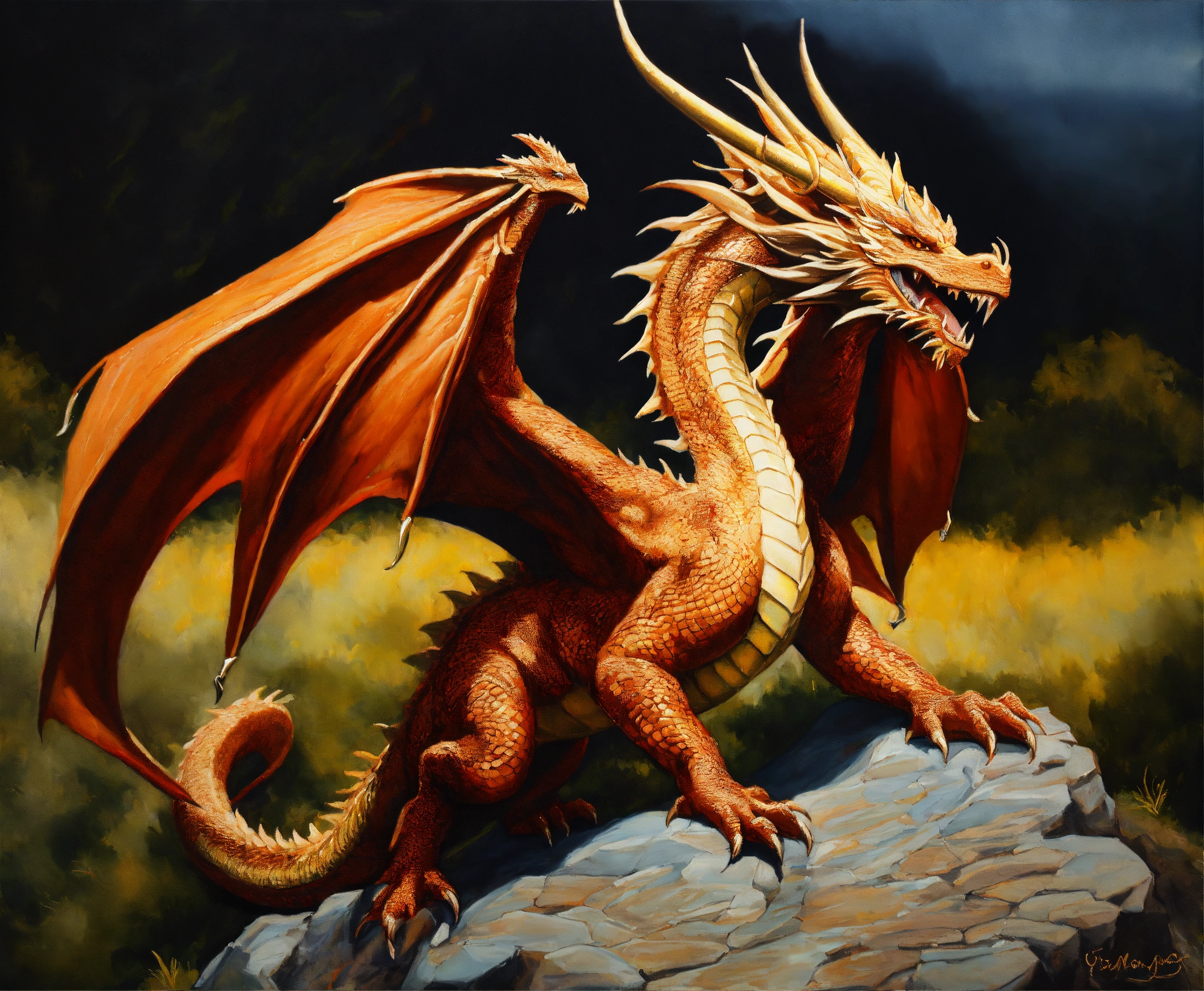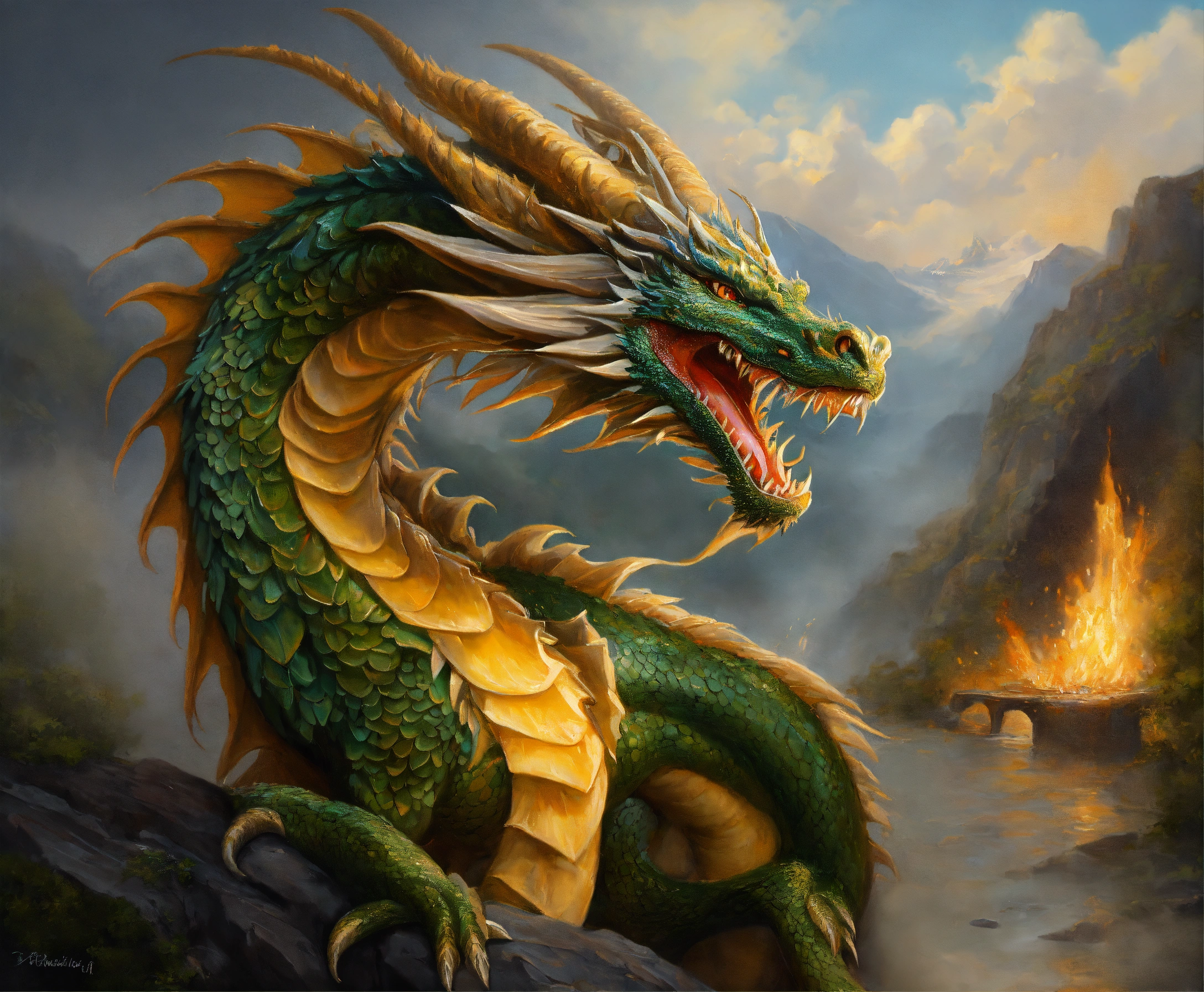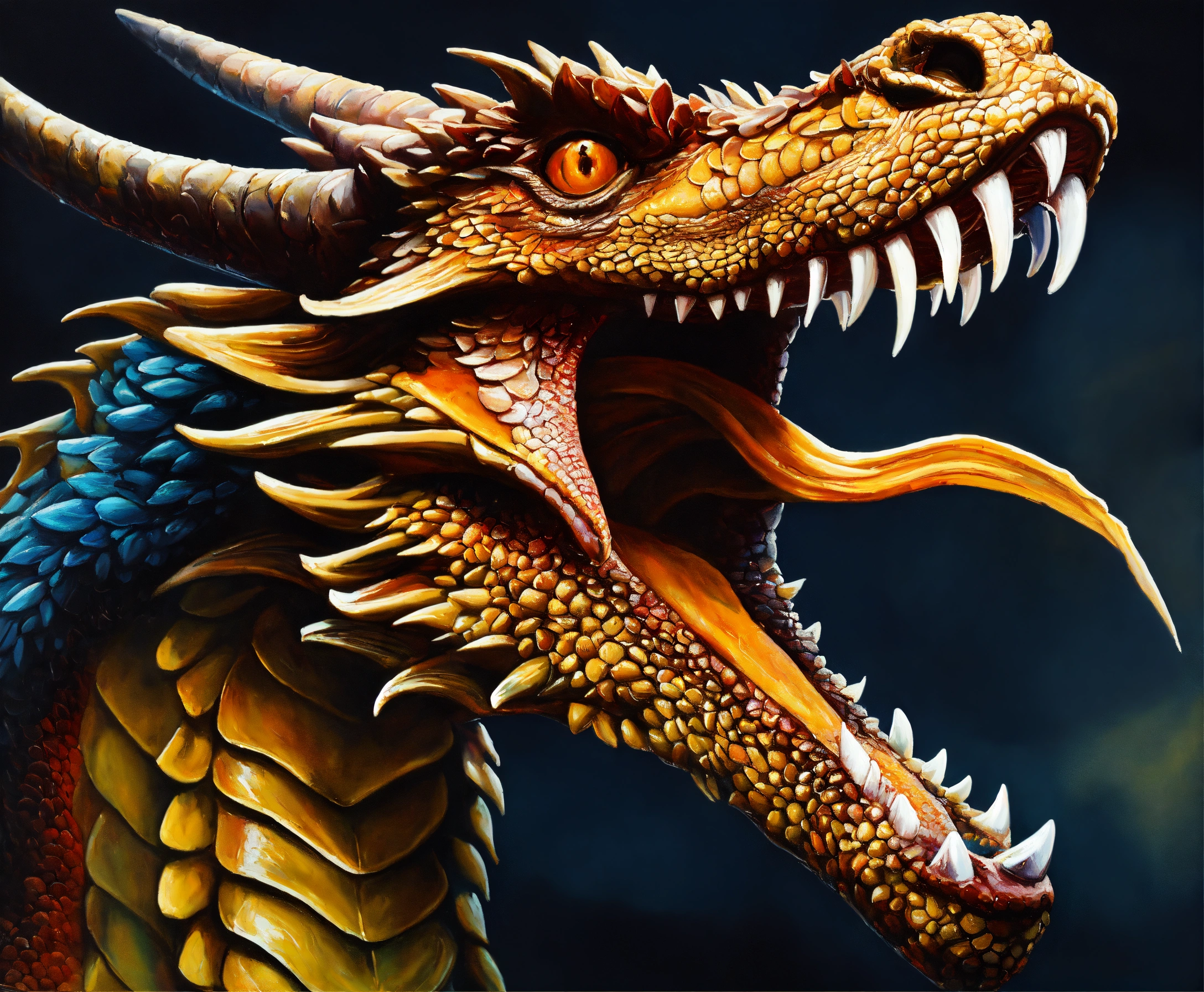 Oil painting of a magnificent dragon