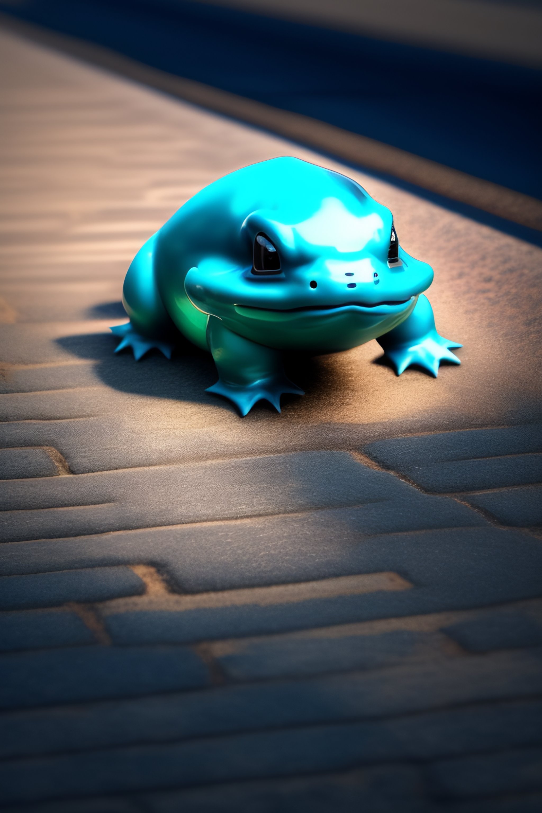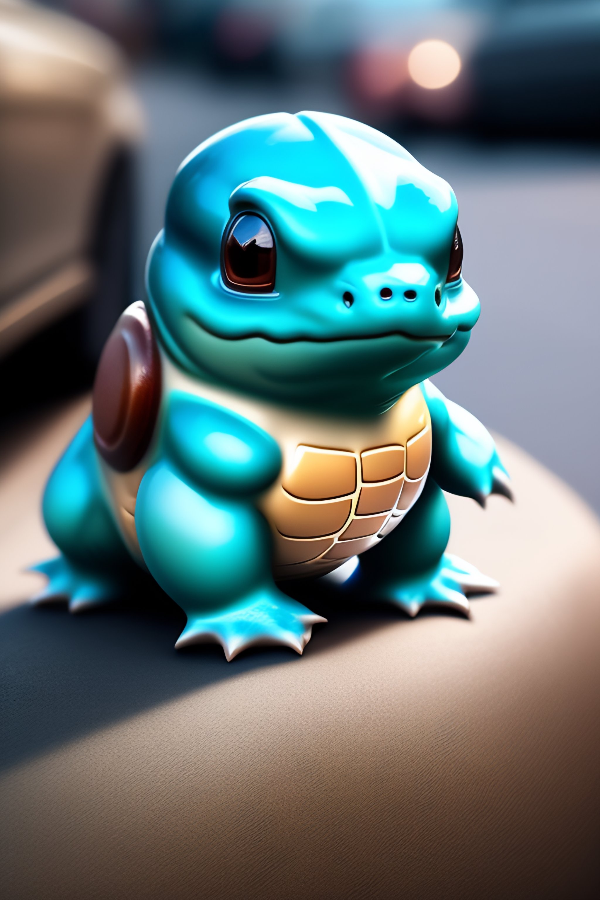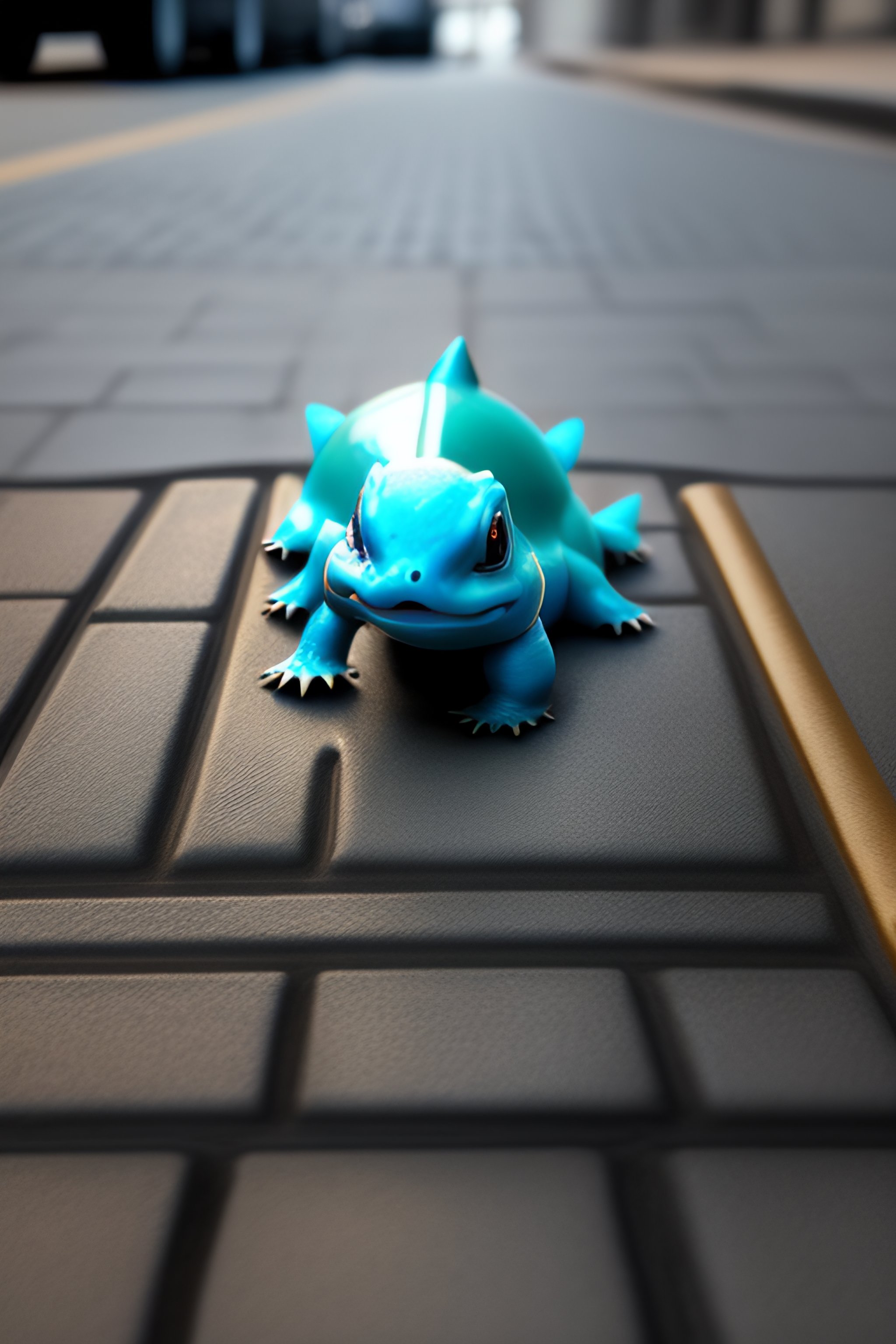 Real life render of squirtle from pokemon on the sidewalk