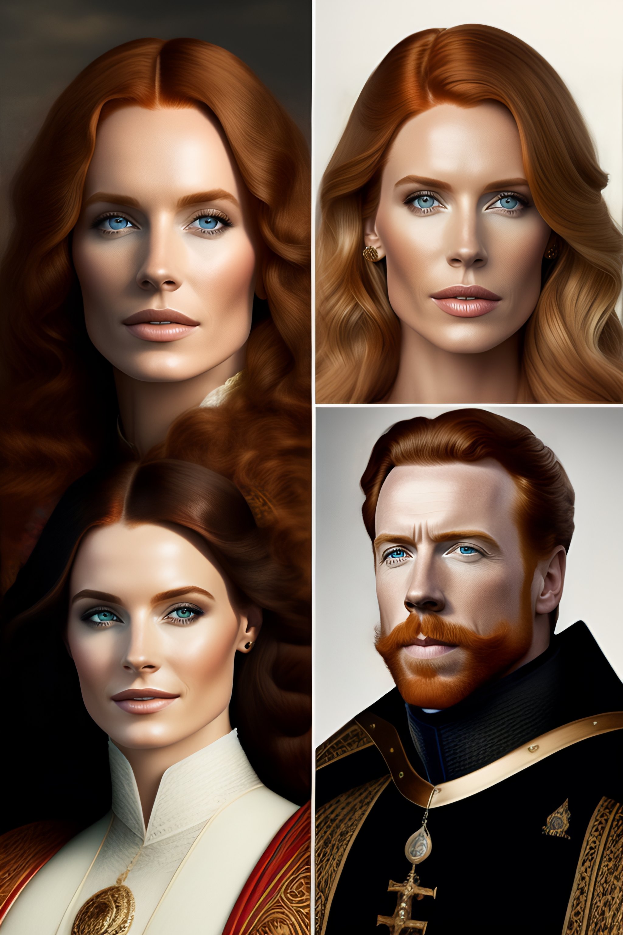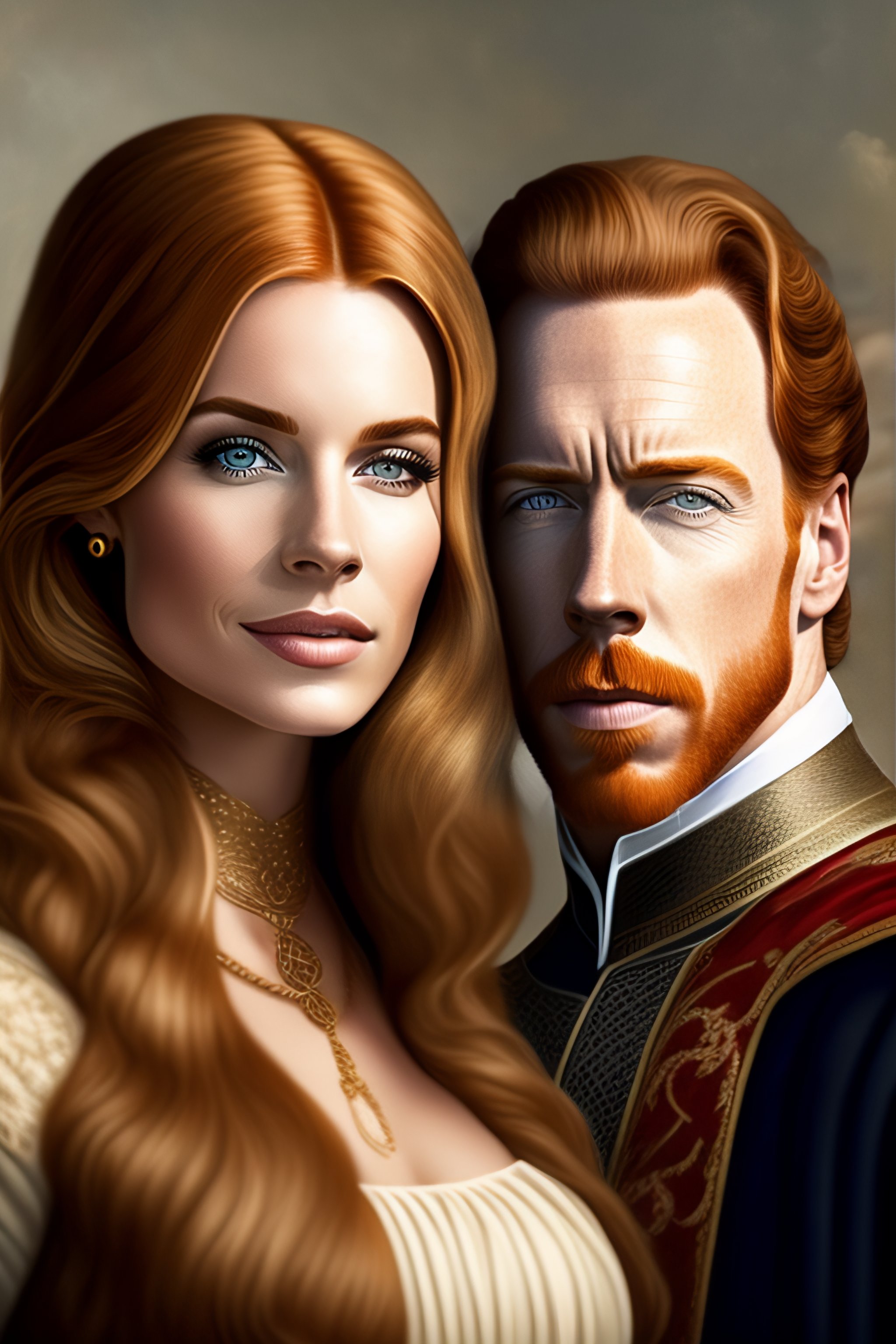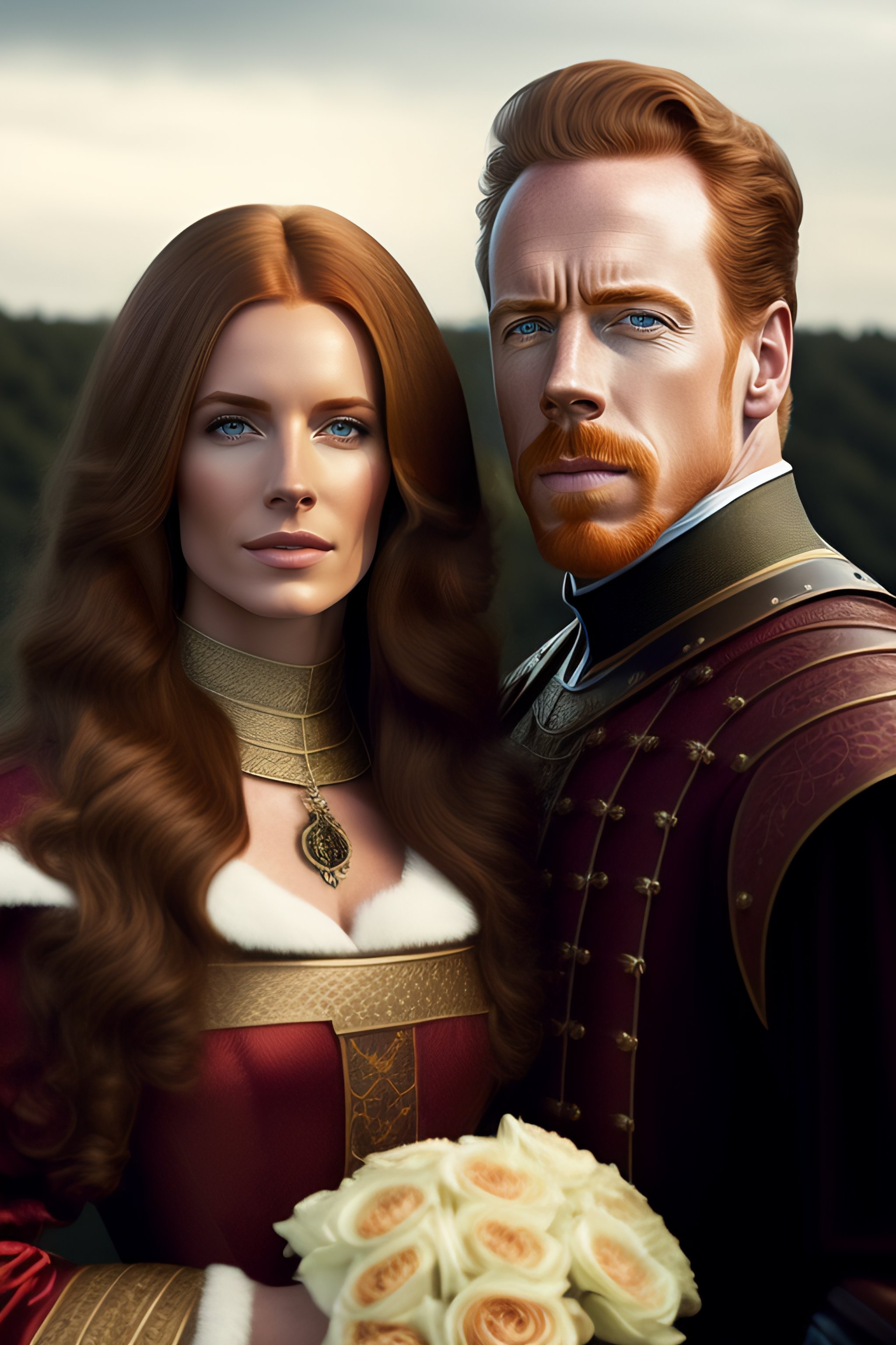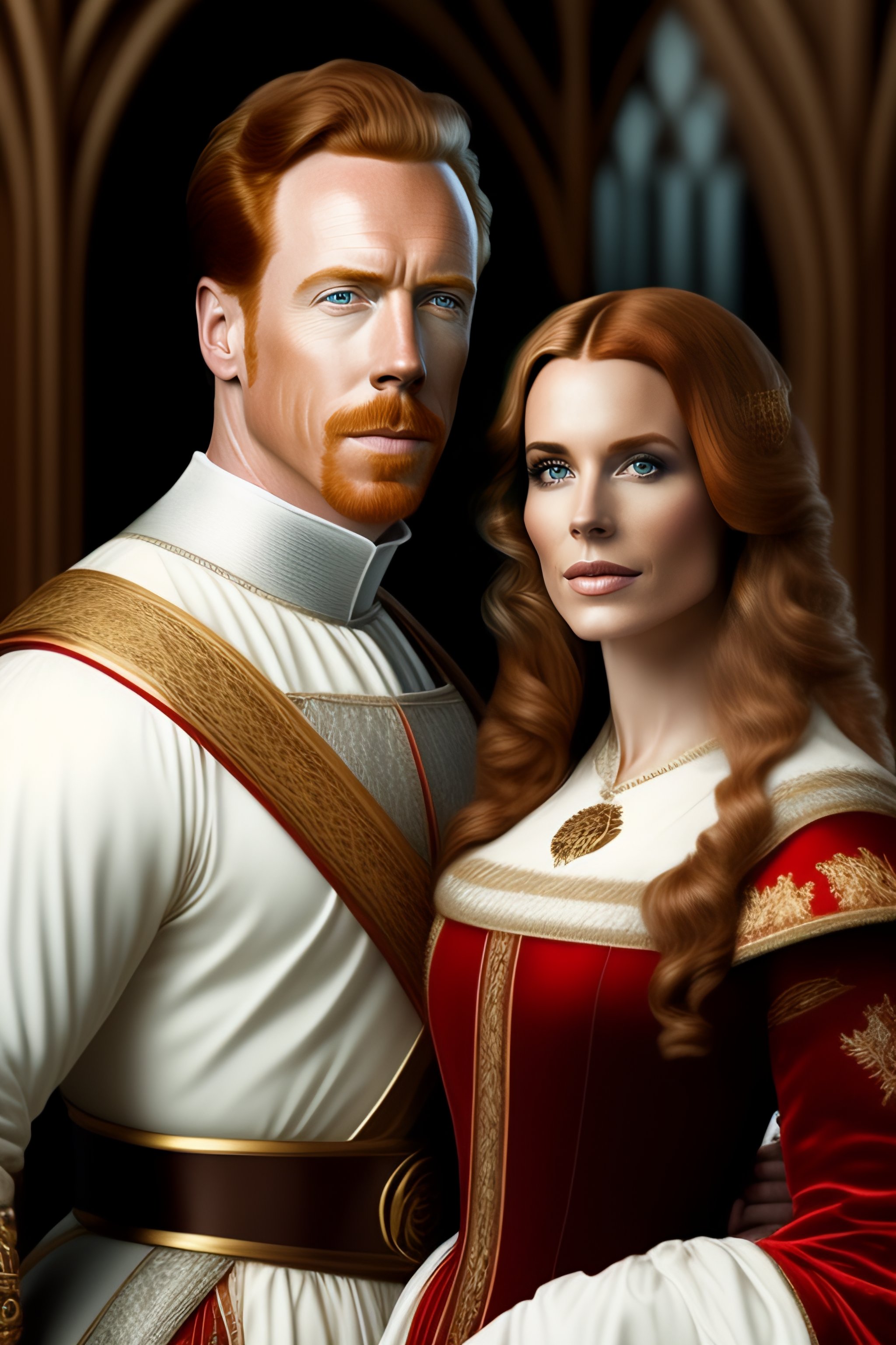 Alexandra moen with light hair together with damian lewis in medieval style