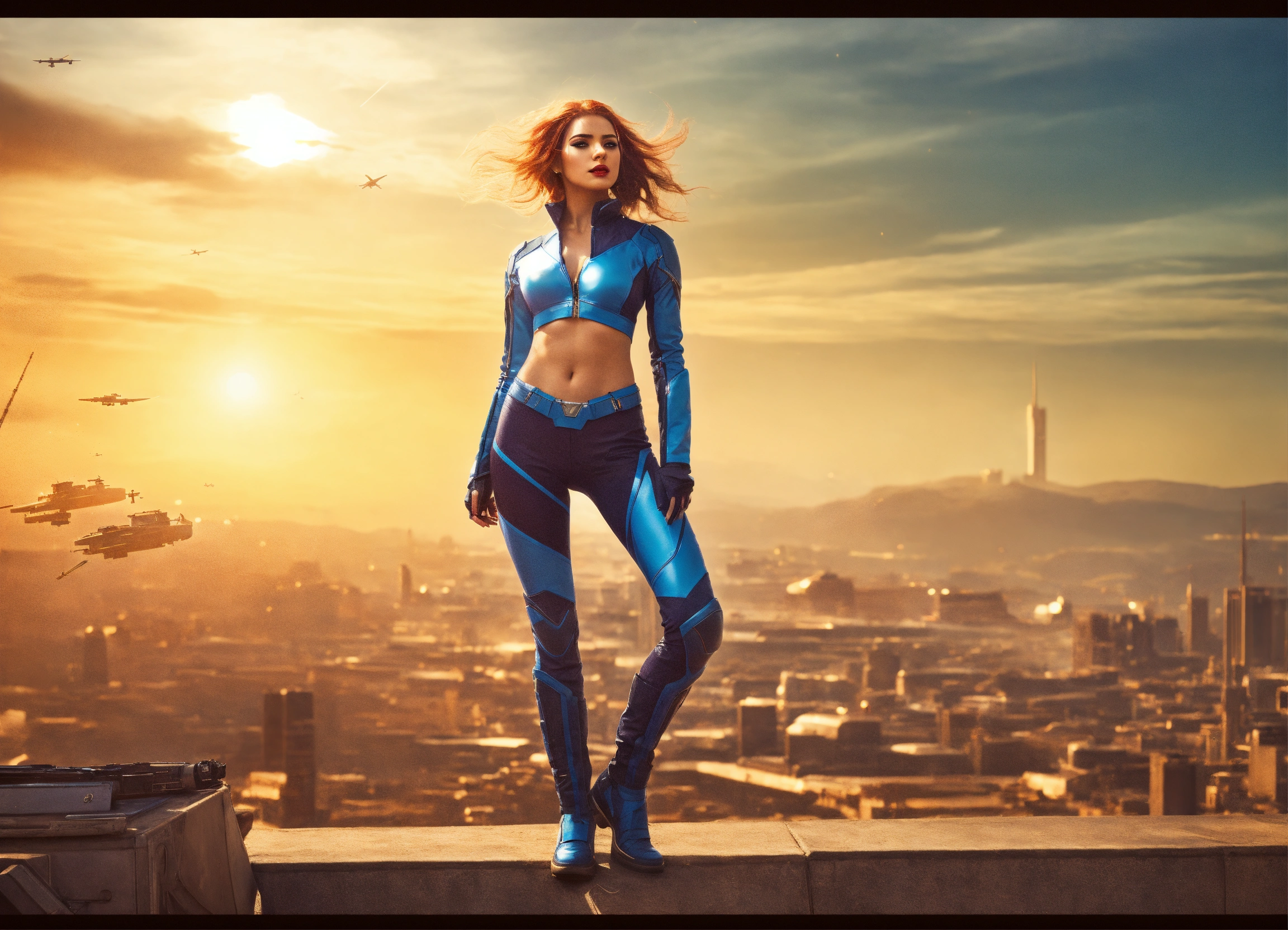 Full body, photo, sci-fi dream girl, futuristic, sunny weather, open shirt, wearing underwaee, 8k, extreme make-up, x-men, no gravity