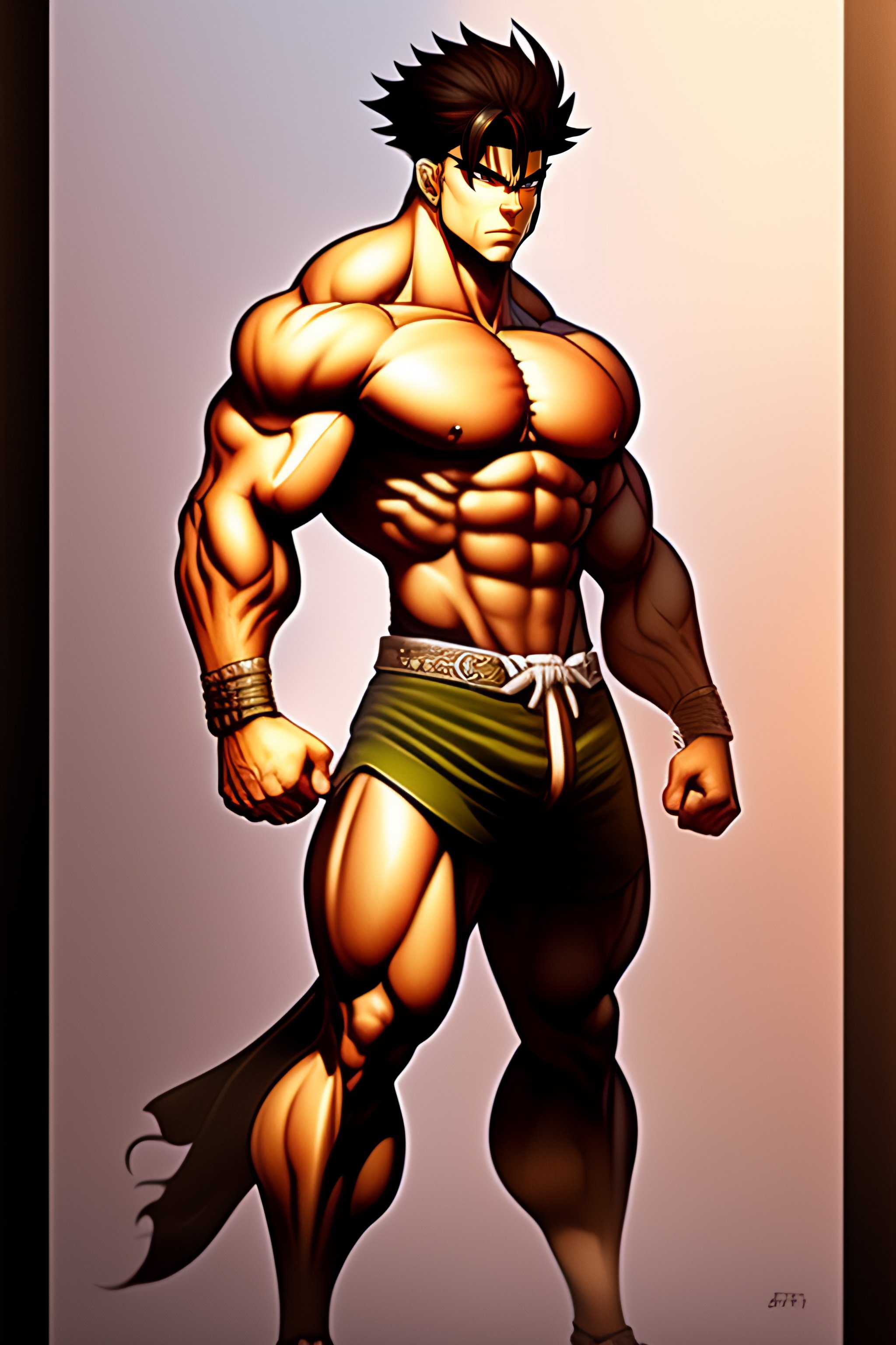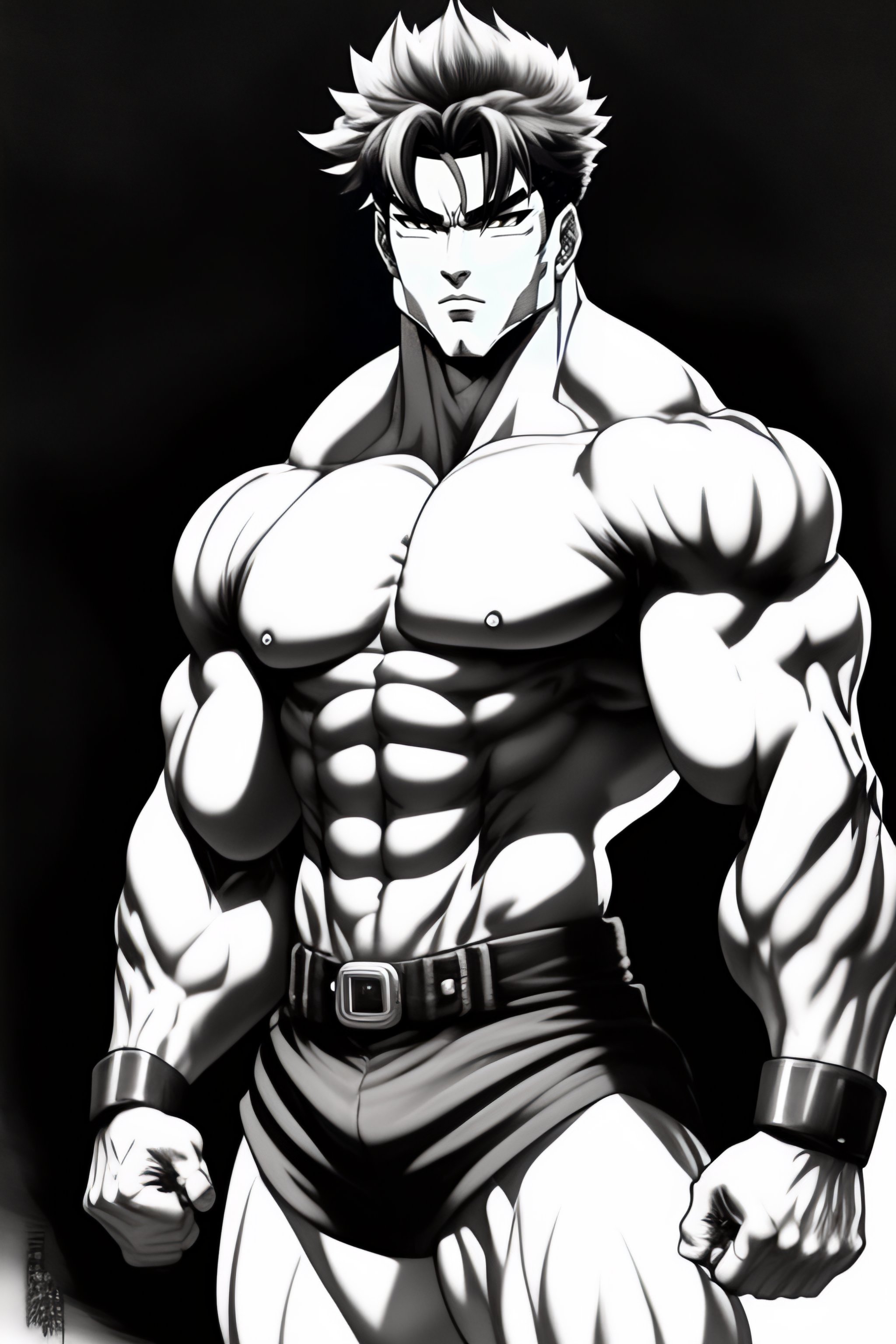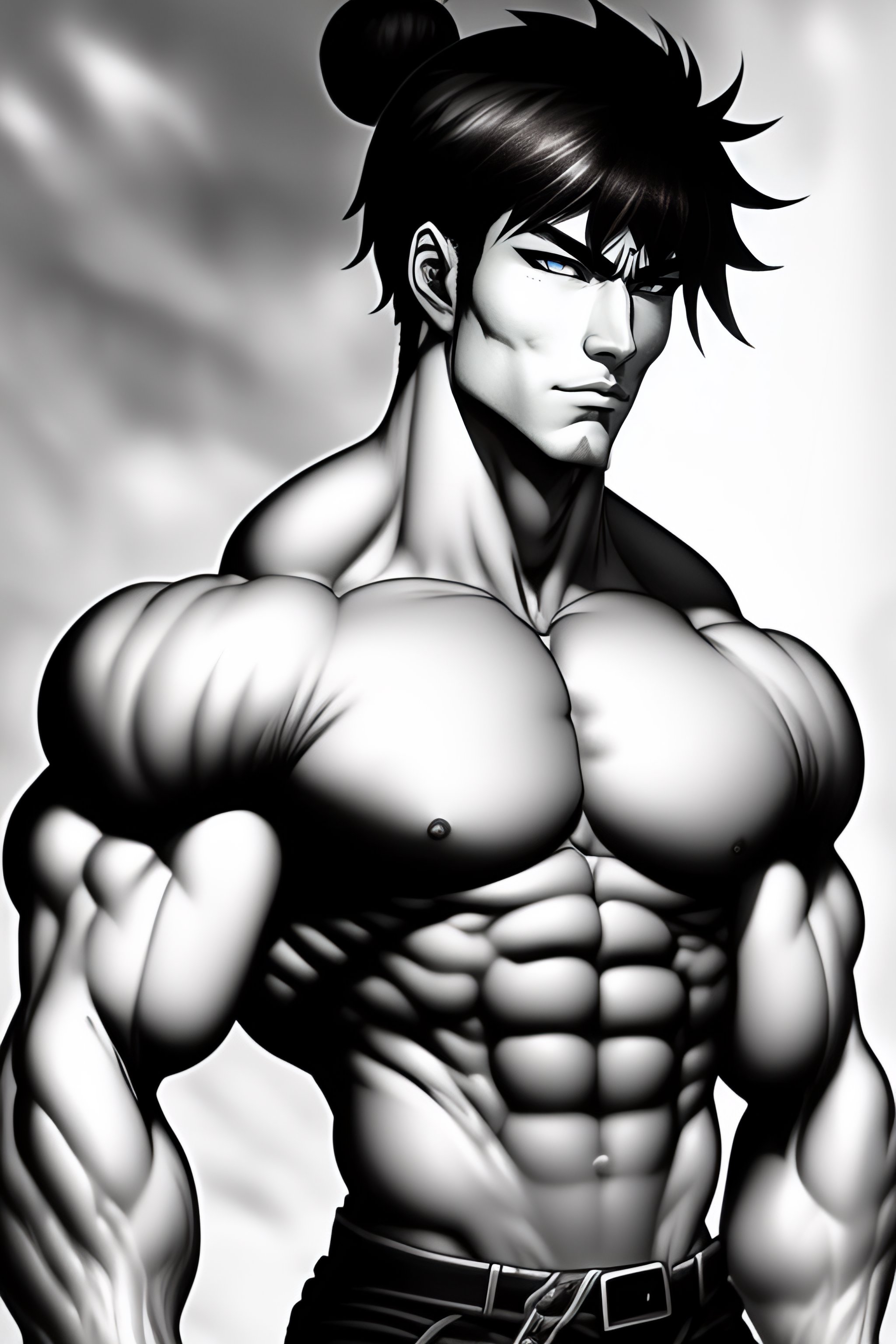 Sketch of a muscular manga character
