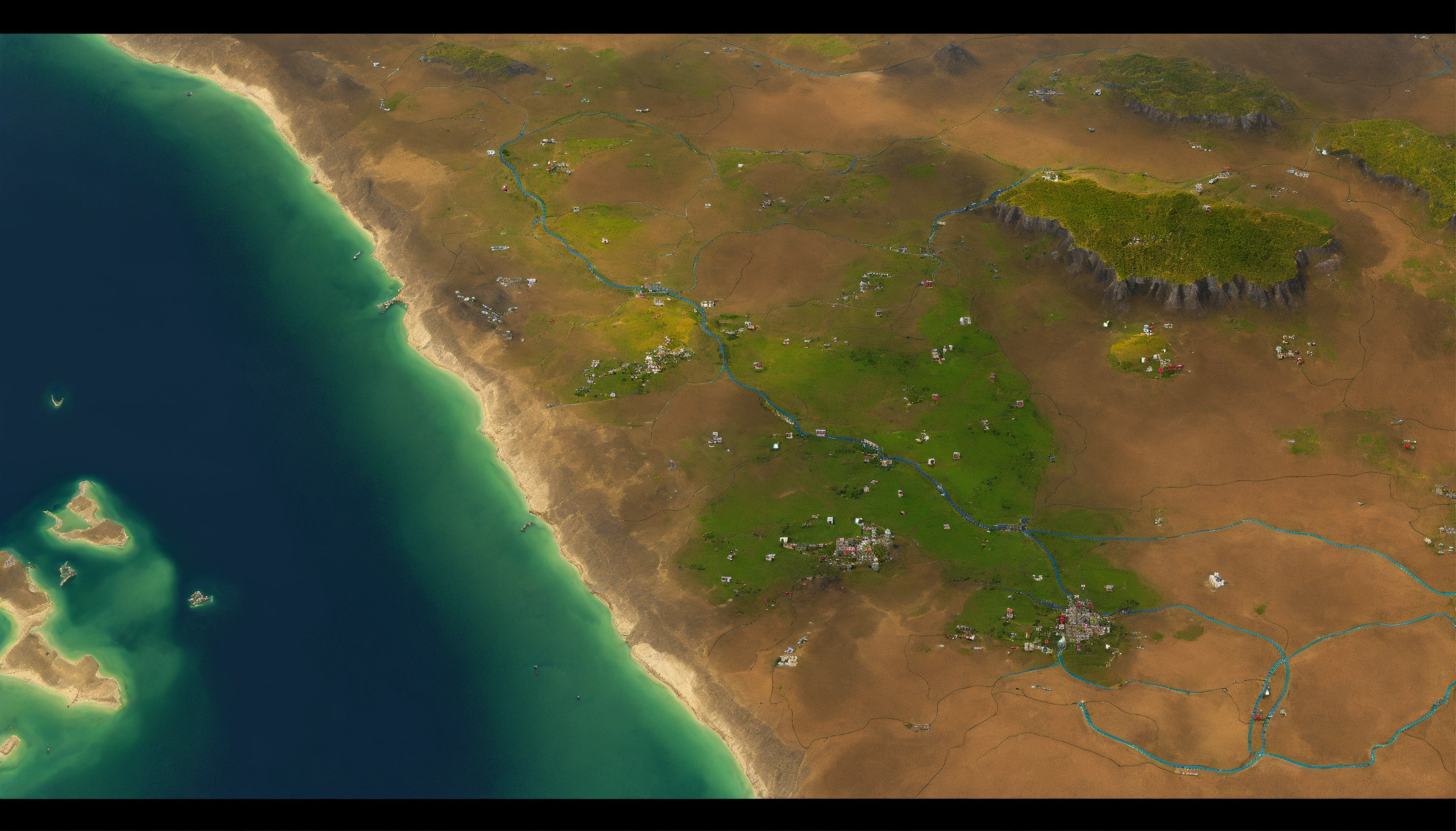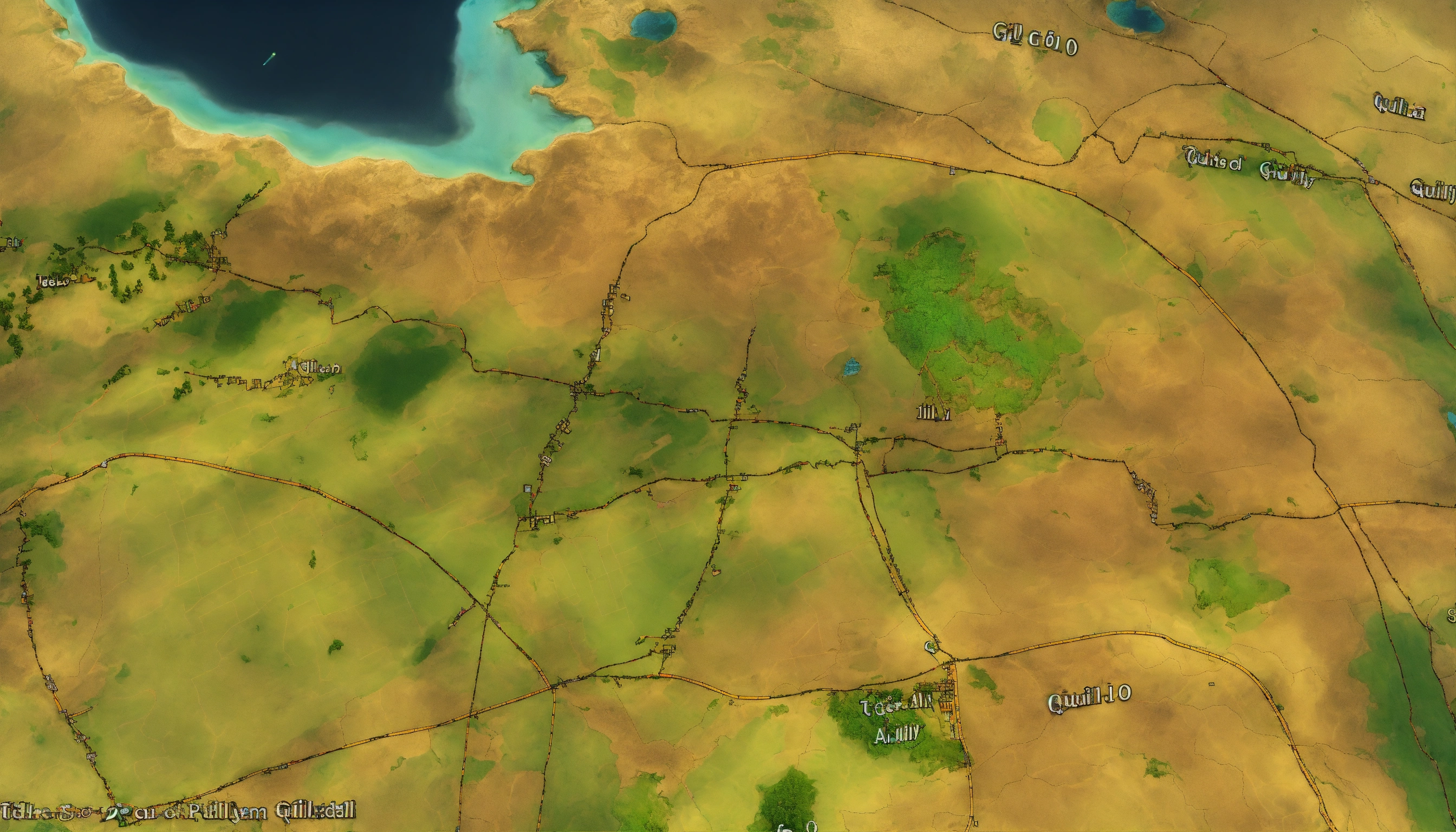 Arial view of 200 miles north to south with tel giddo in the bottom 1/5th of the map, 6k image qualty
