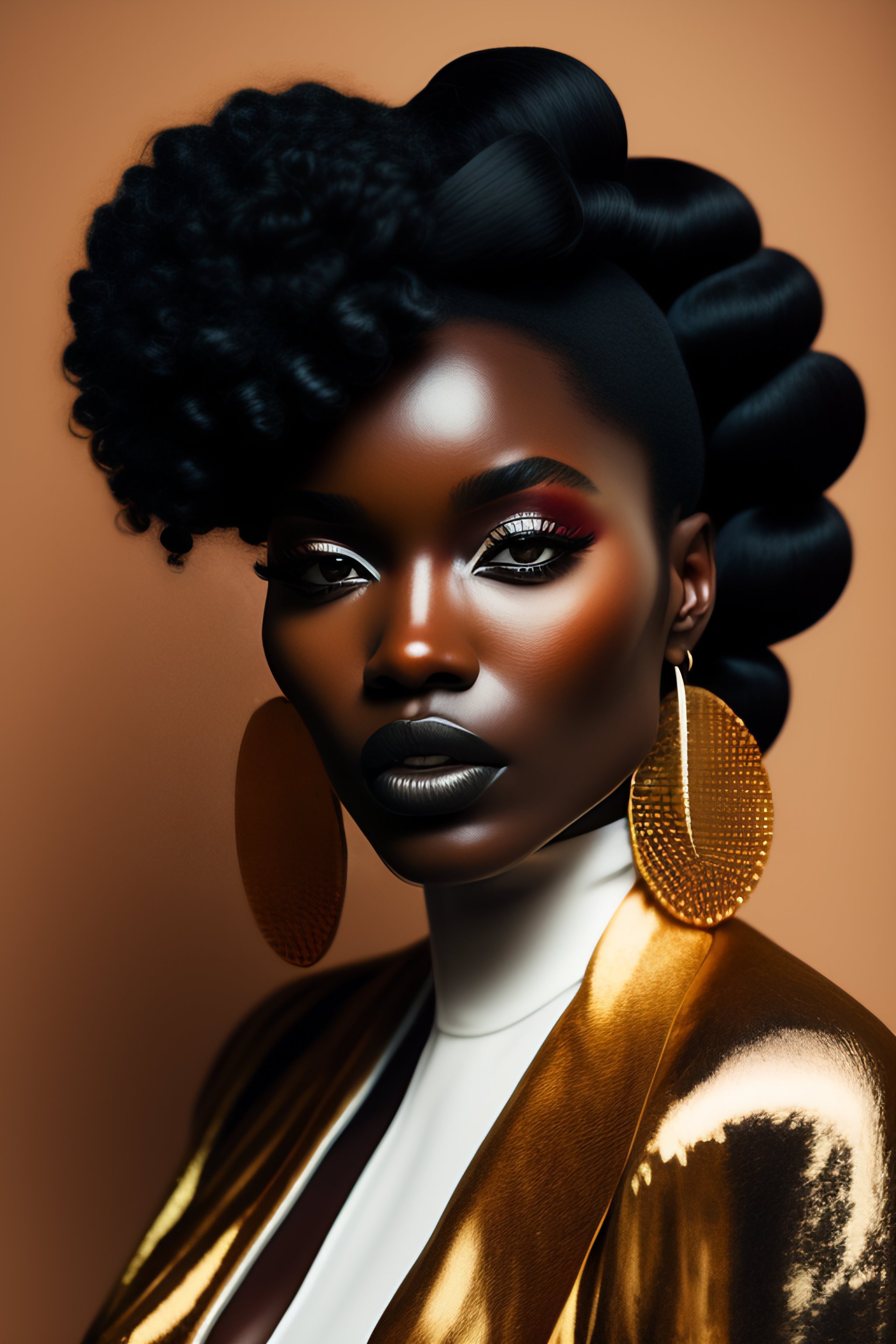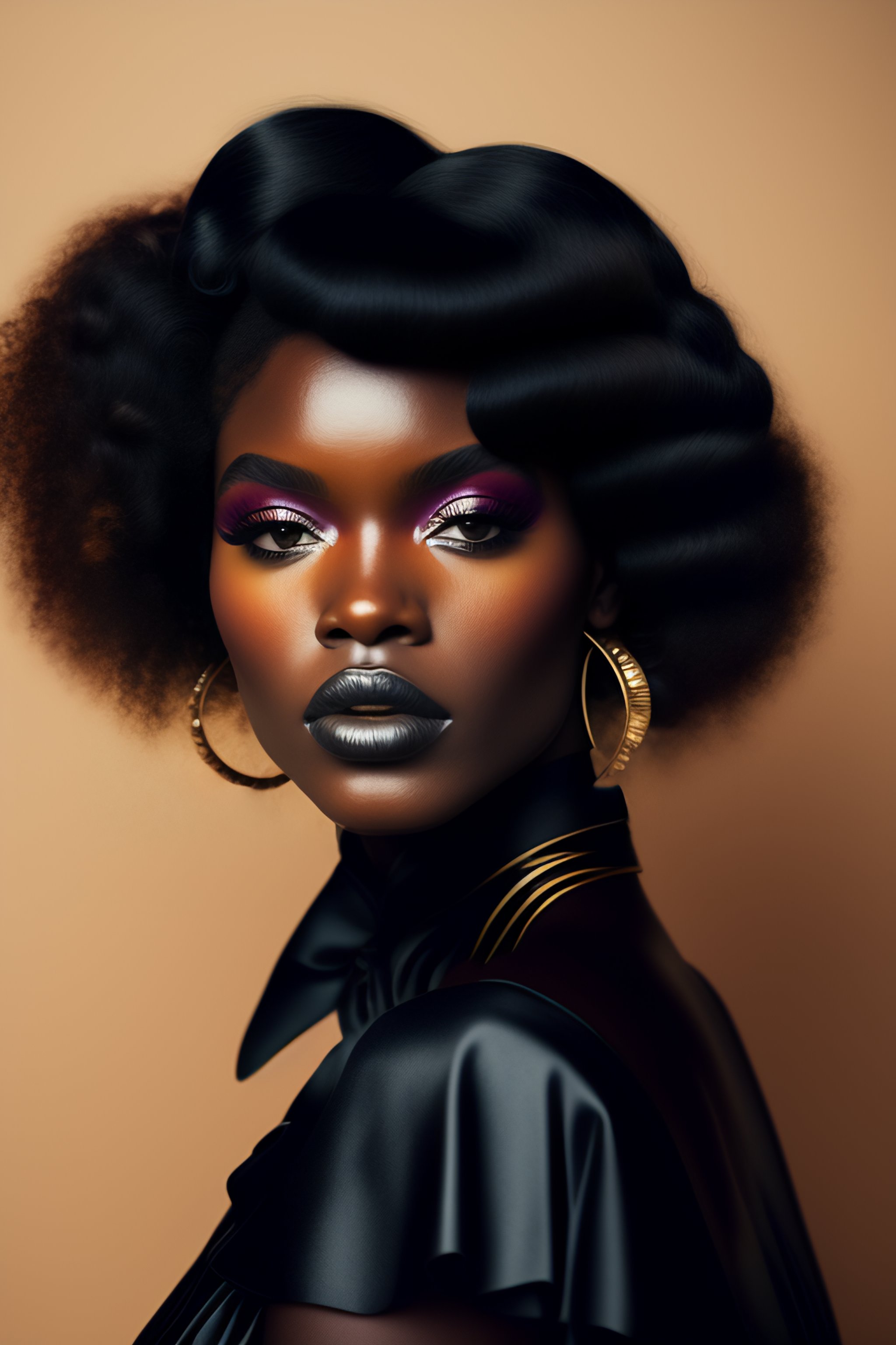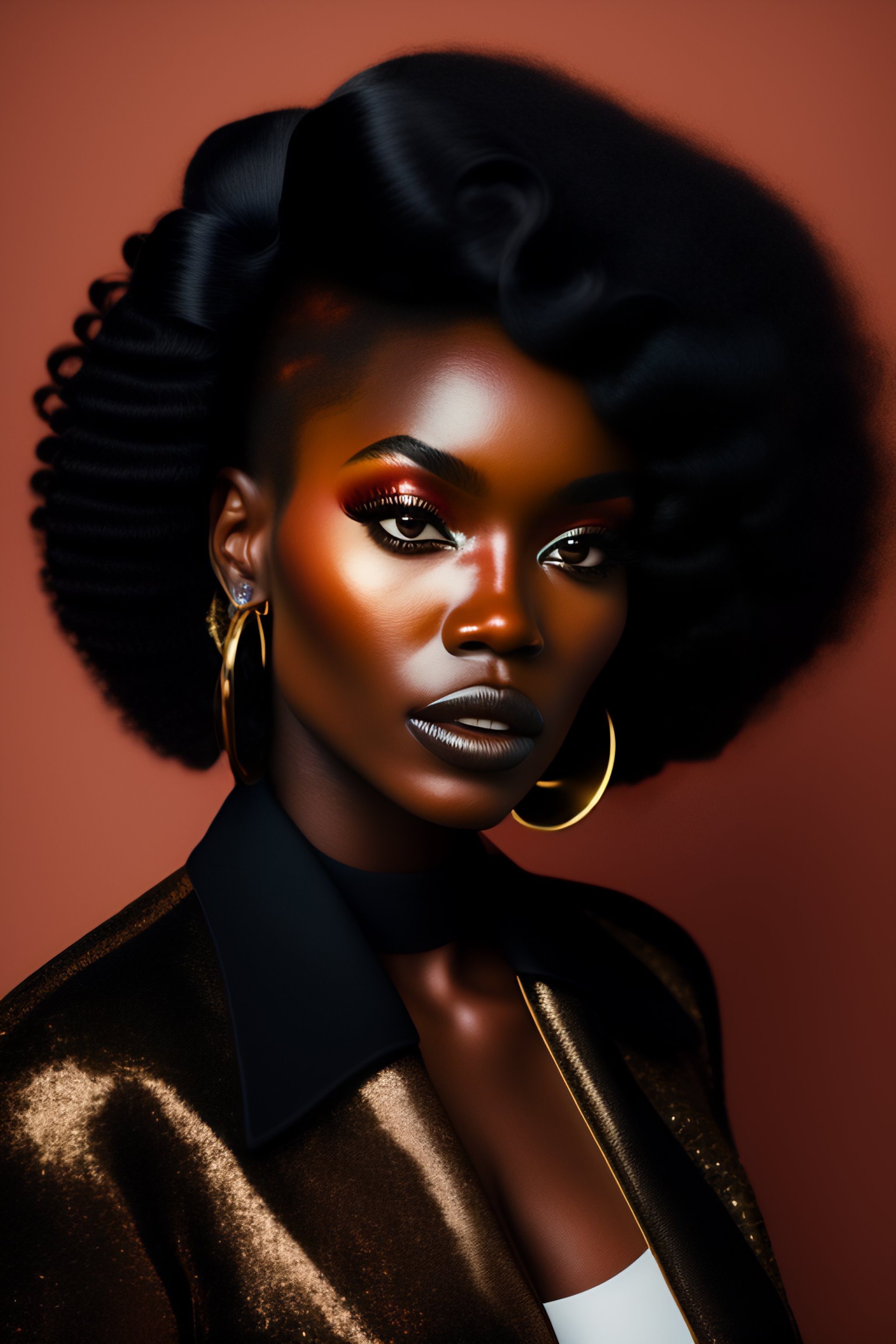 A photo of a beautiful blck woman with black curly hair, dreamy, nostalgic, fashion editorial, studio photography, magazine photography, earth tones, 9:16