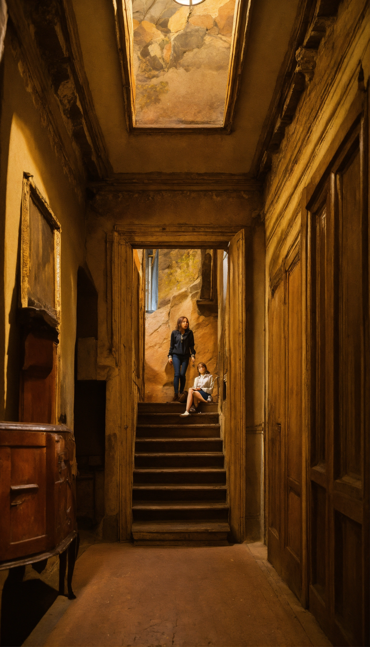 Jeune femme qui crie dans un couloir de chateuax