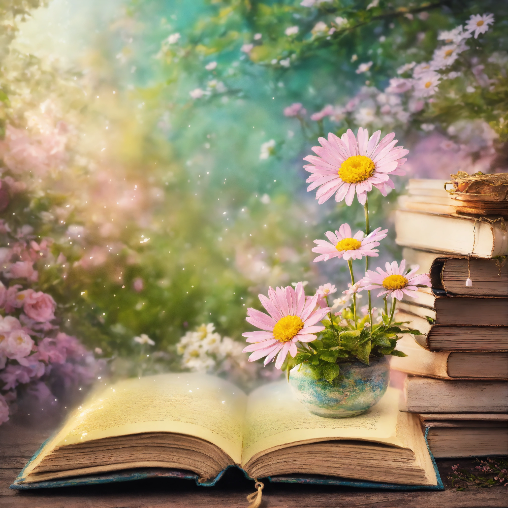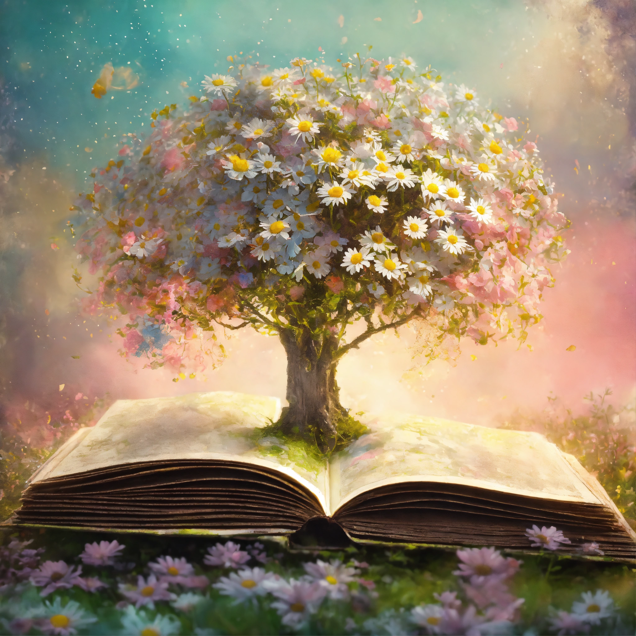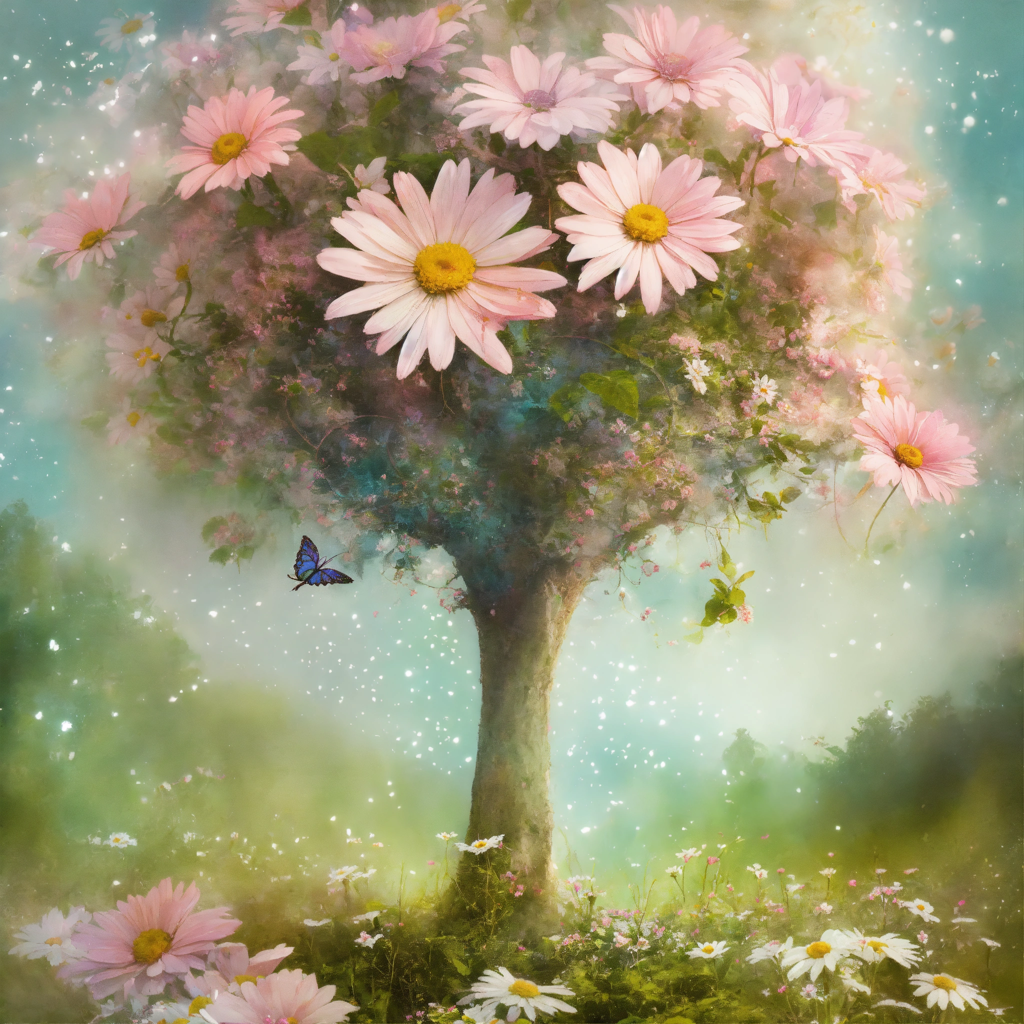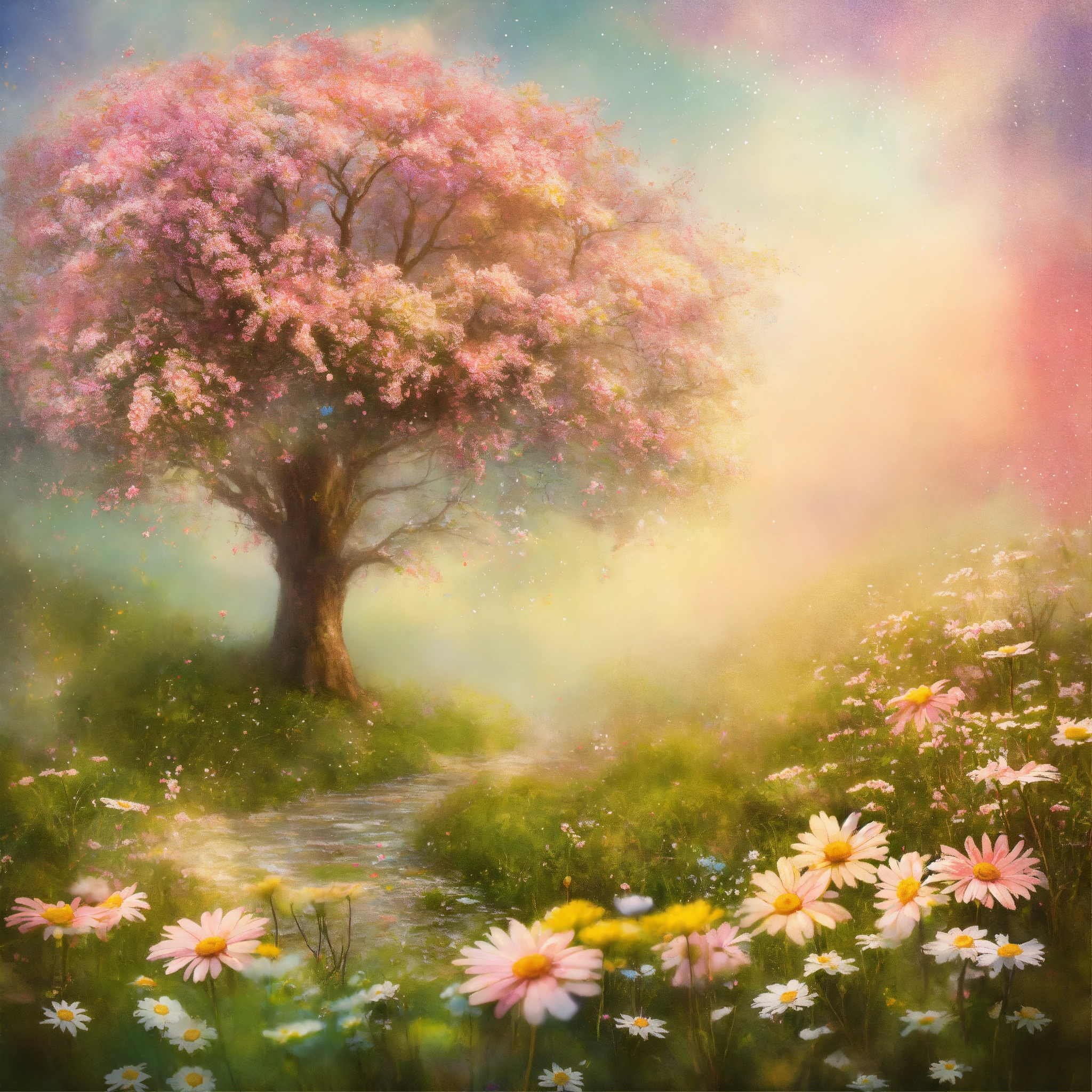 Shabby chic dreamy mist pastel junk journals daisy flower tree swirling magical fairytale abstract art style