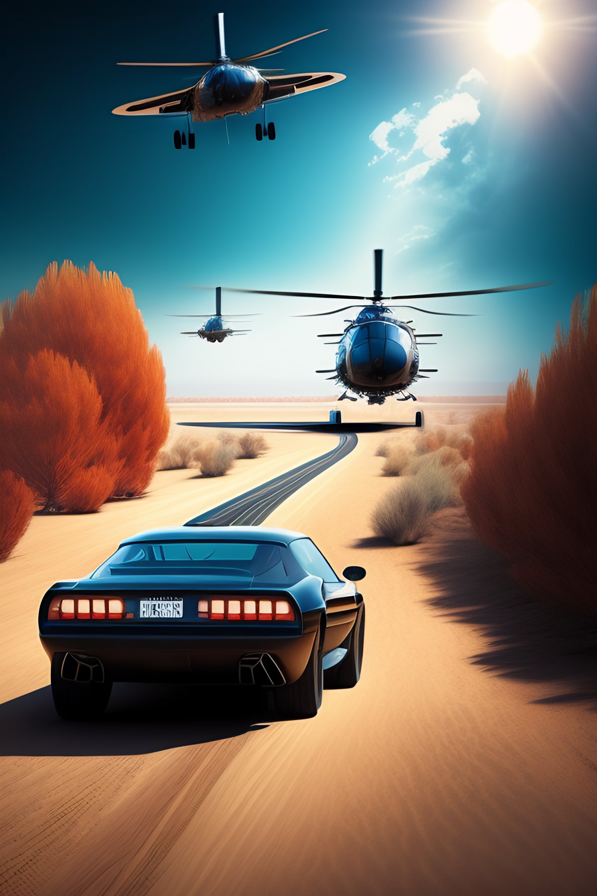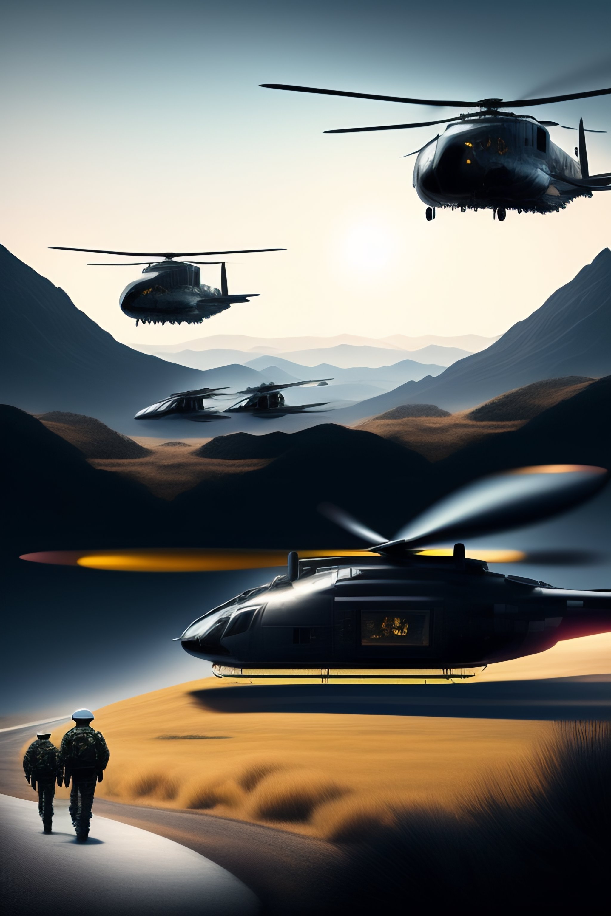 Conspiracy poster, black helicopters are following me, hyperrealistic illustration, advertising poster