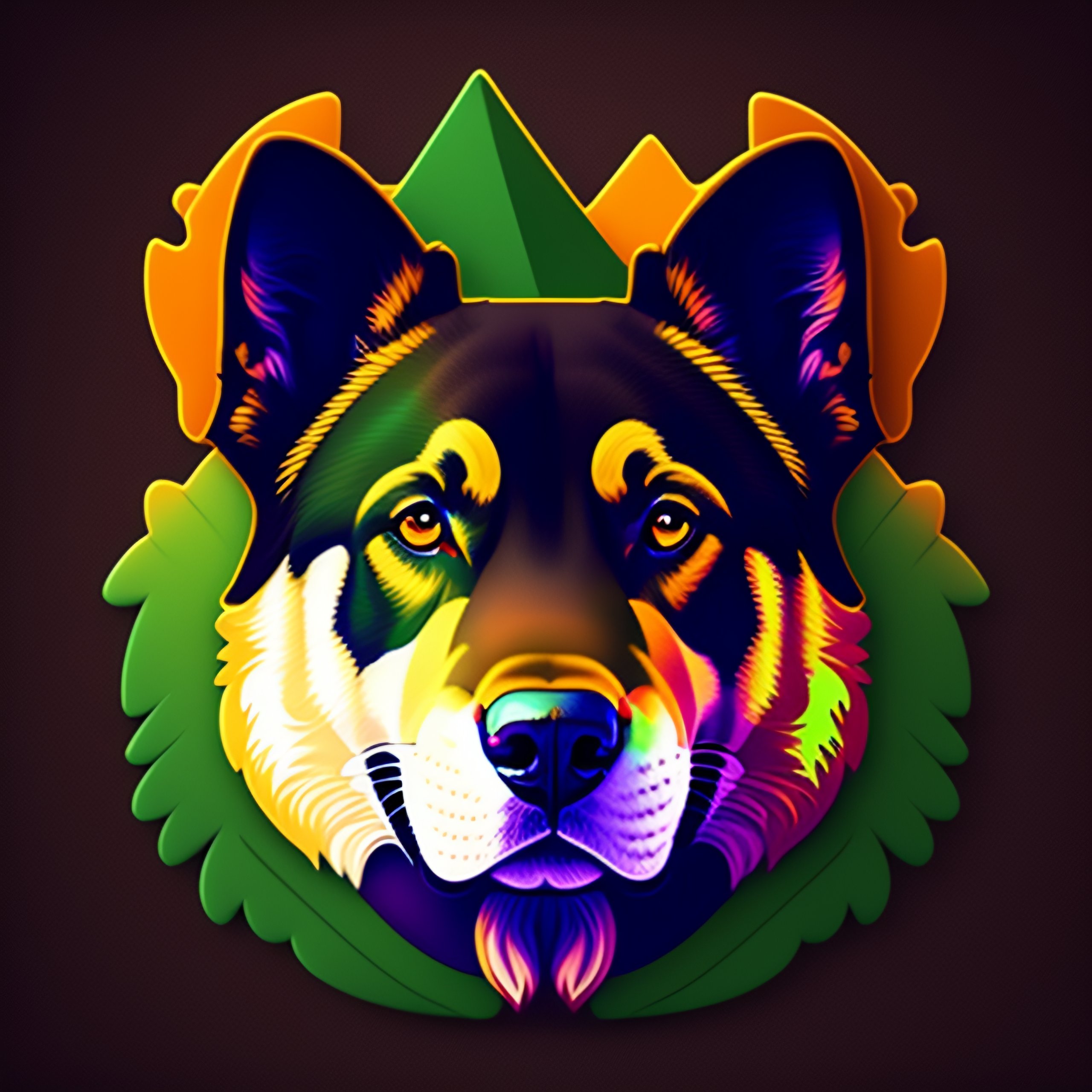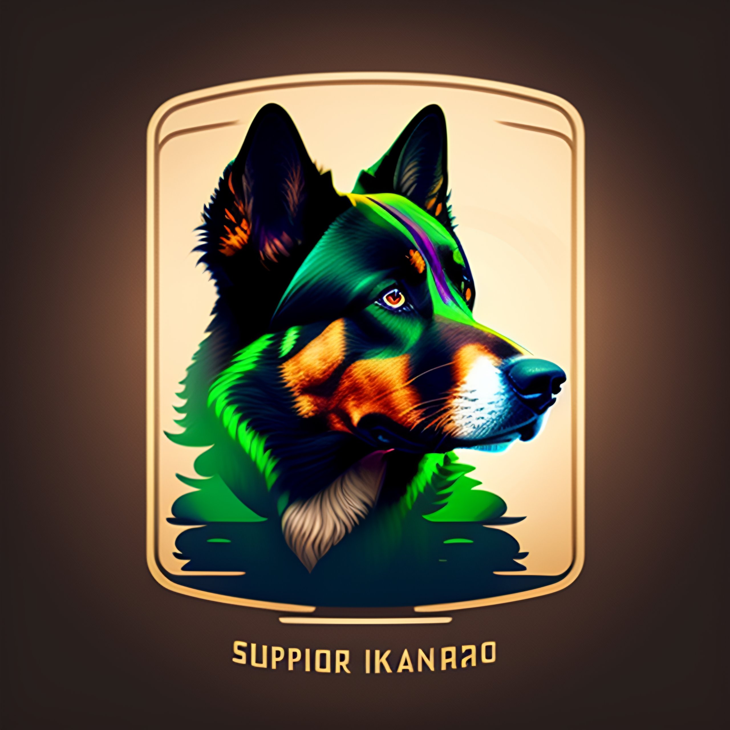 Logo of super adventurer with mountain and evergreen forest inside wild k9 dog head shape dark background in three matte color