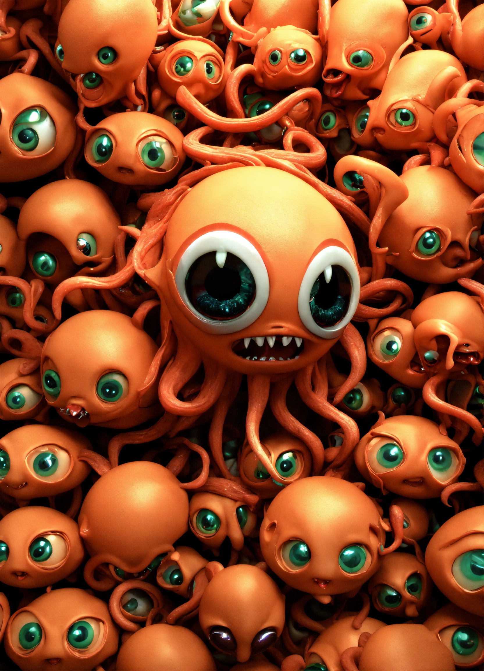 3d, 3d render, best quality, ultra detailed, wall of creepy aliens, wall of alien faces, big eyes, bug-eyed, creatures, eager, excited, hungry, tongues, tentacles, tendrils, aroused