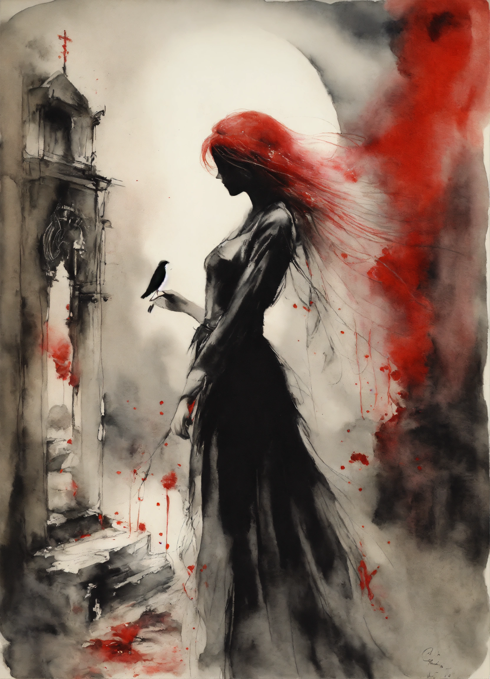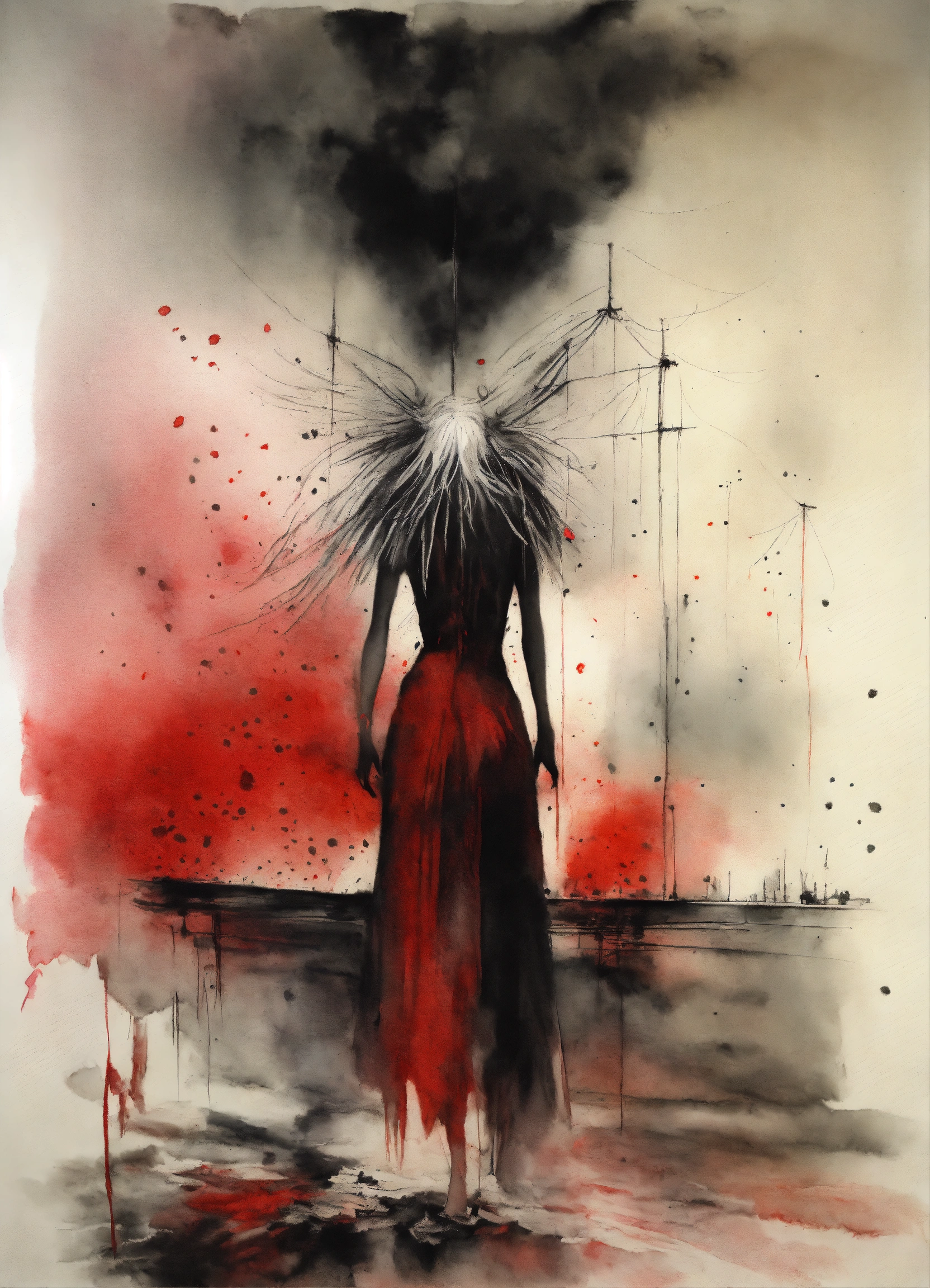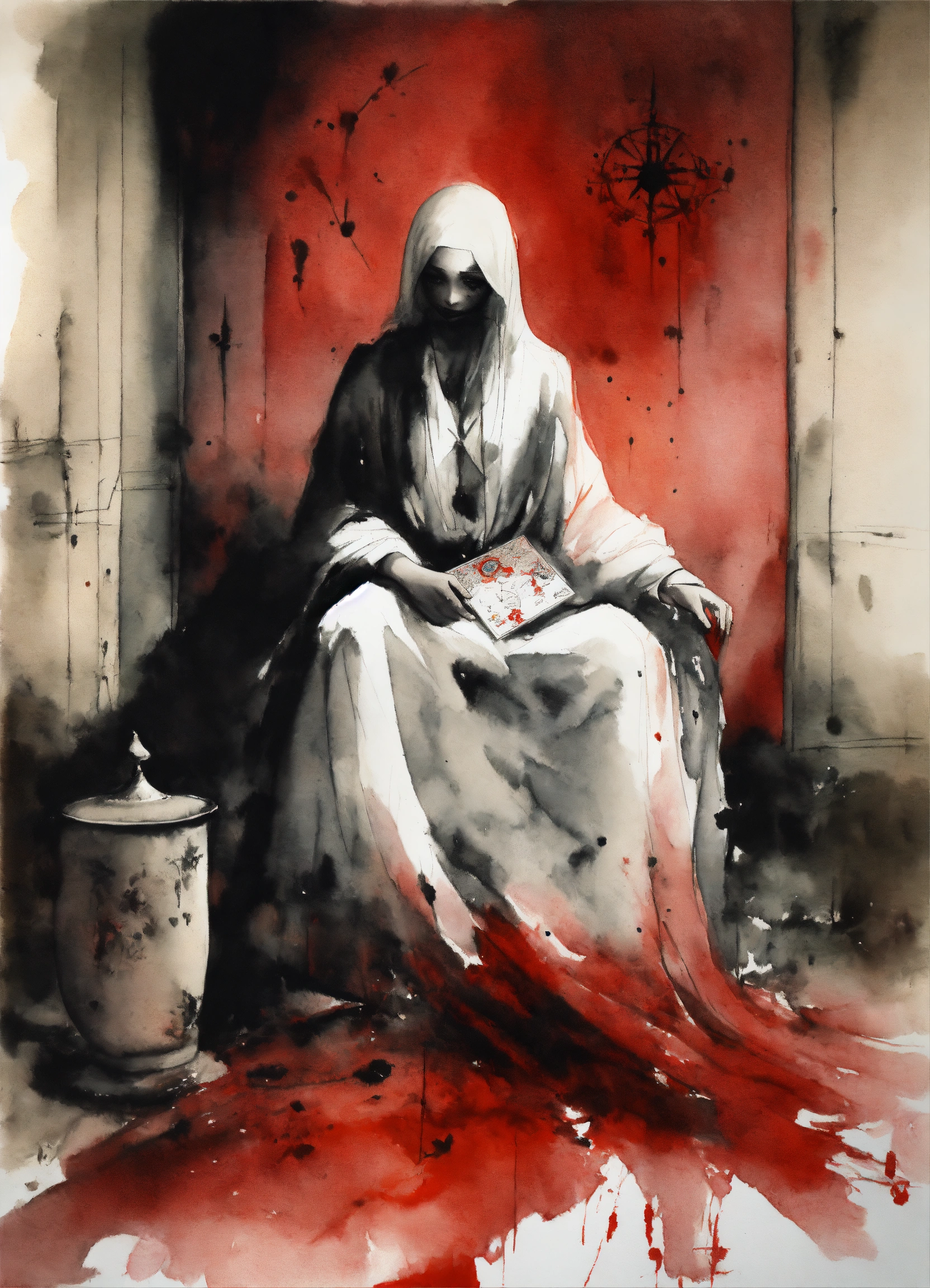 Stephen gammell style, dessin, aquarelle, aquarelles, noir et blanc et rouge, de marais, de sombres créatures, dégoulinant, le pendu de la carte dans le tarot de marseille