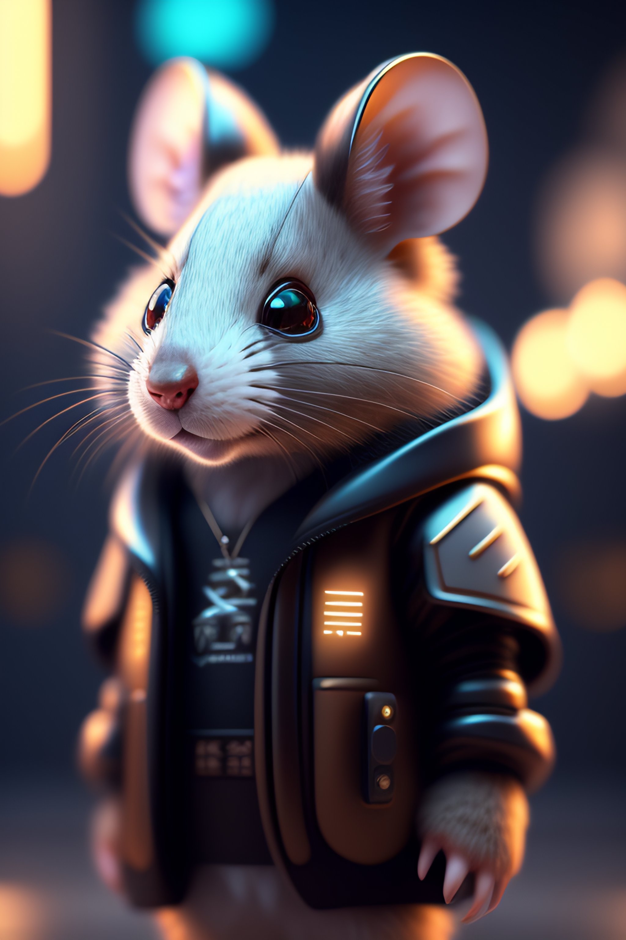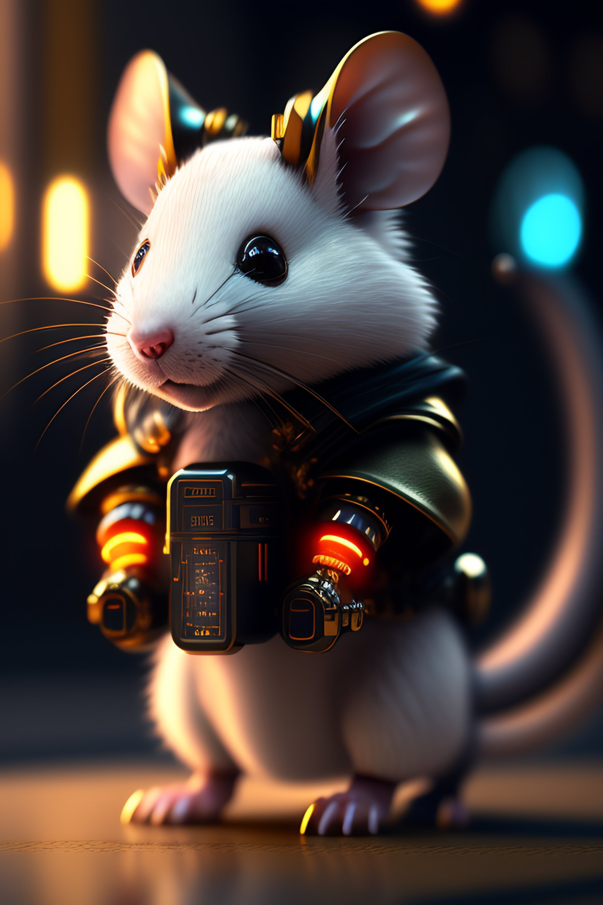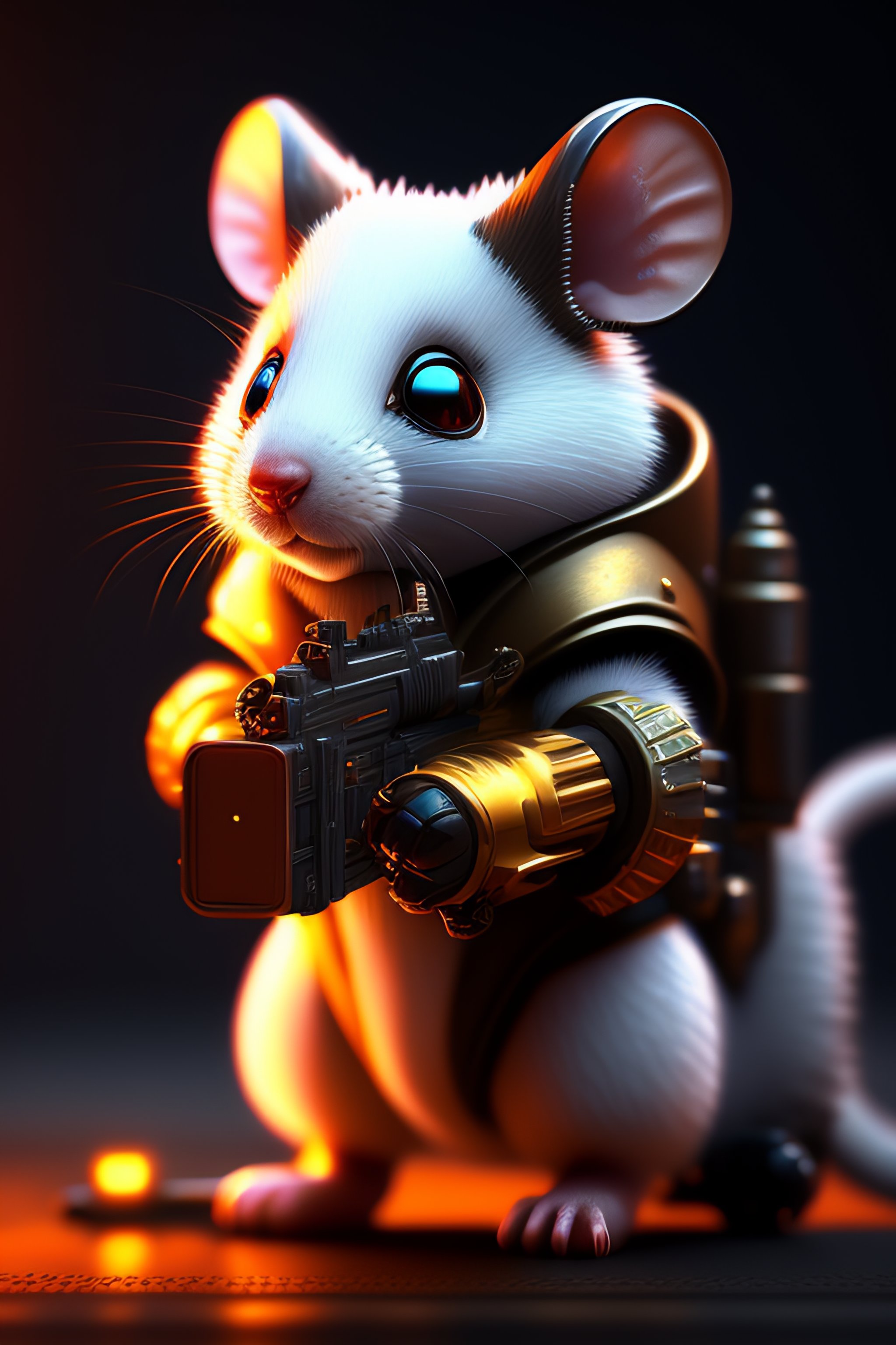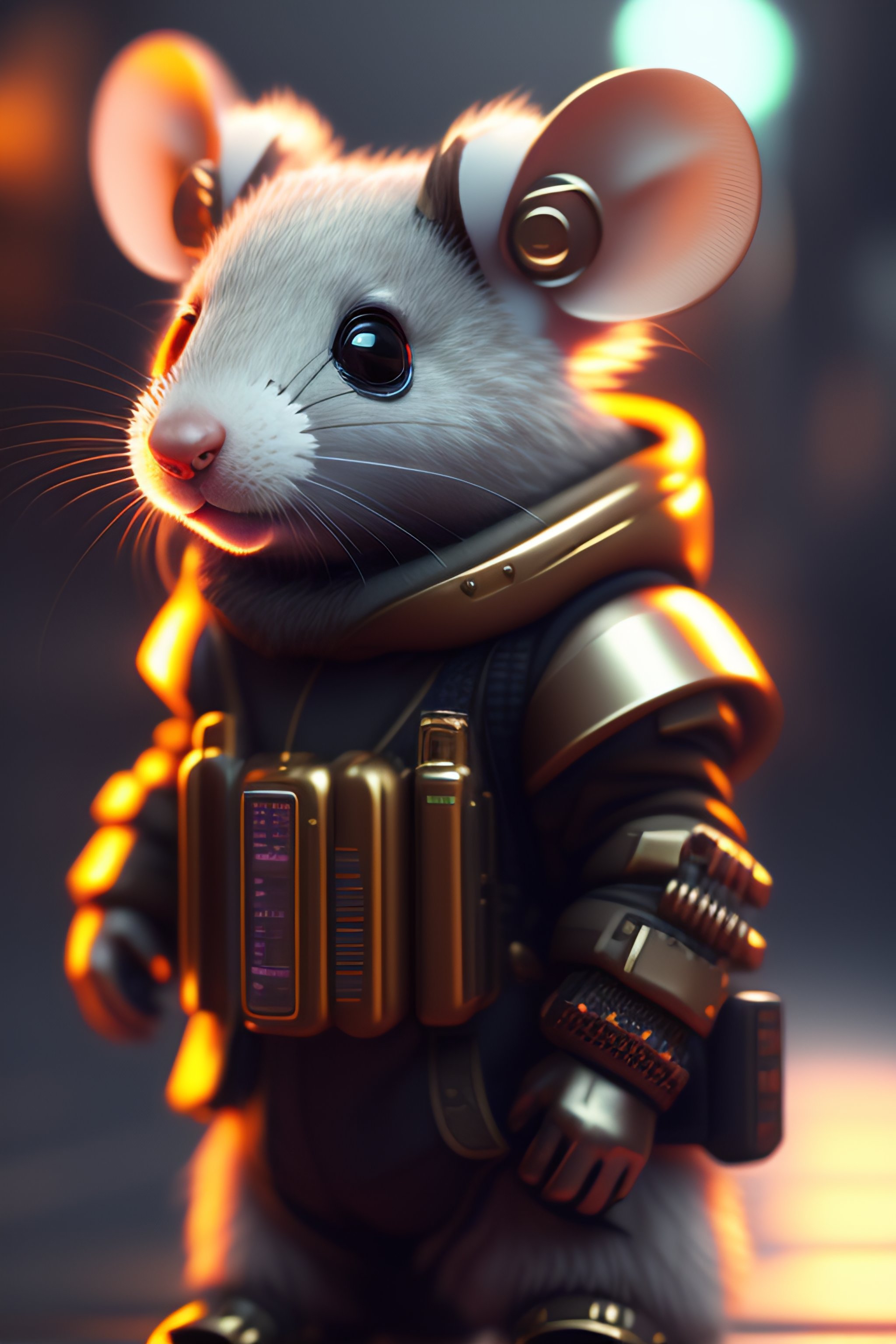 High quality 3 d render very cute fluffy cyborg!! rat with mashinegun, cyberpunk highly detailed, unreal engine cinematic smooth, in the style of terminator, half robot half rat, moody light, dangerouse, uhd 8 k, sharp focus