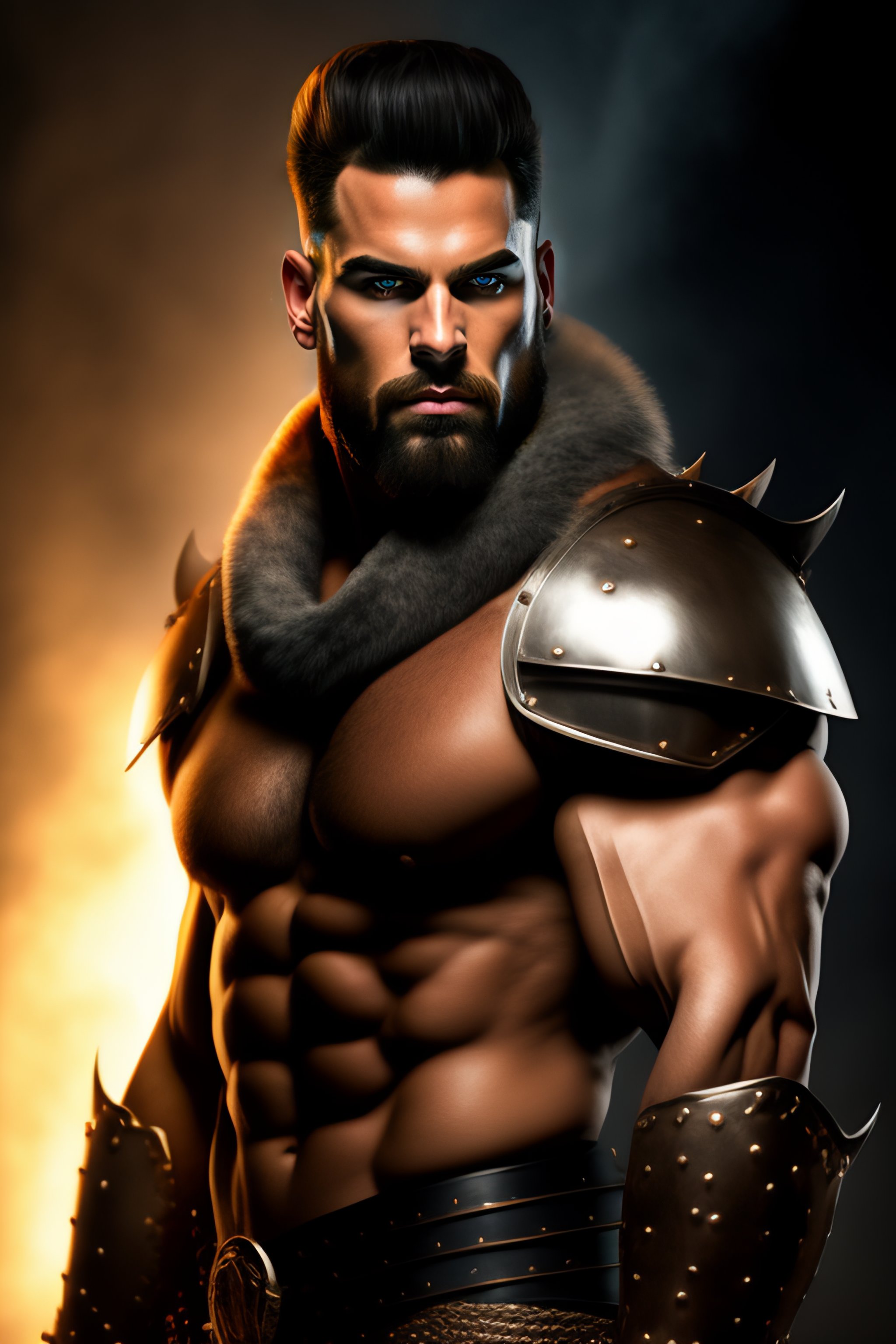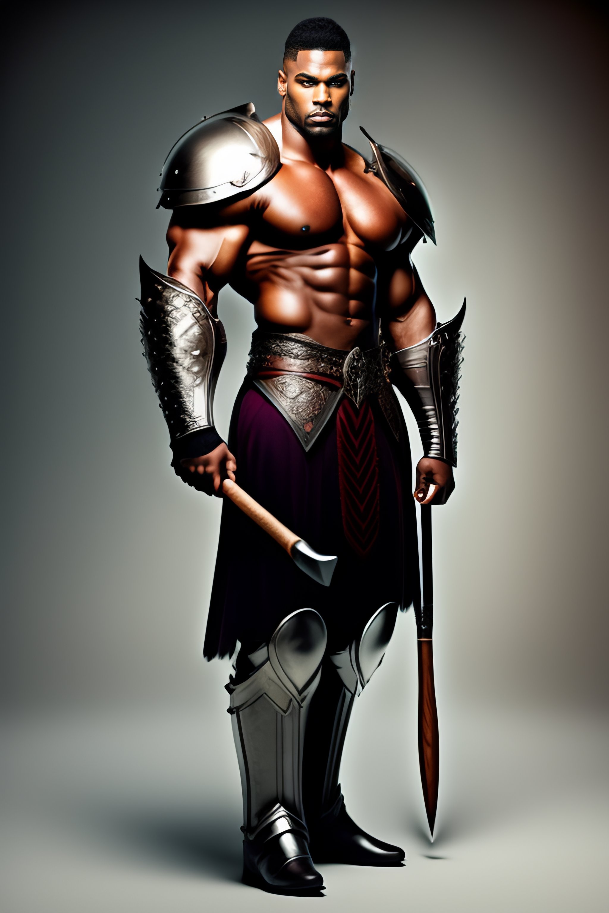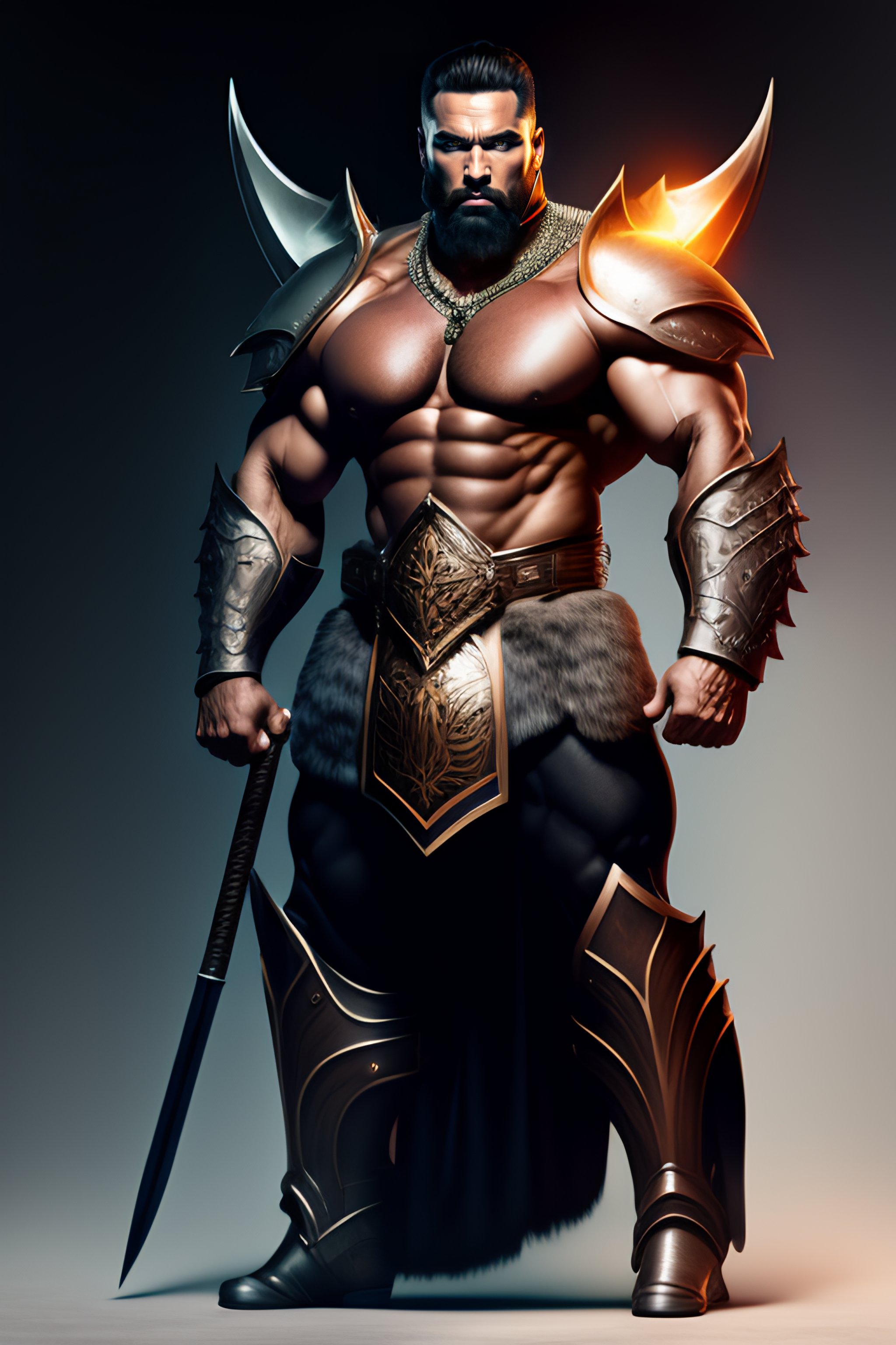 Full body portrait, front facing, man, savage, muscular body, holding a large hammer, heavy leather armor, digital art