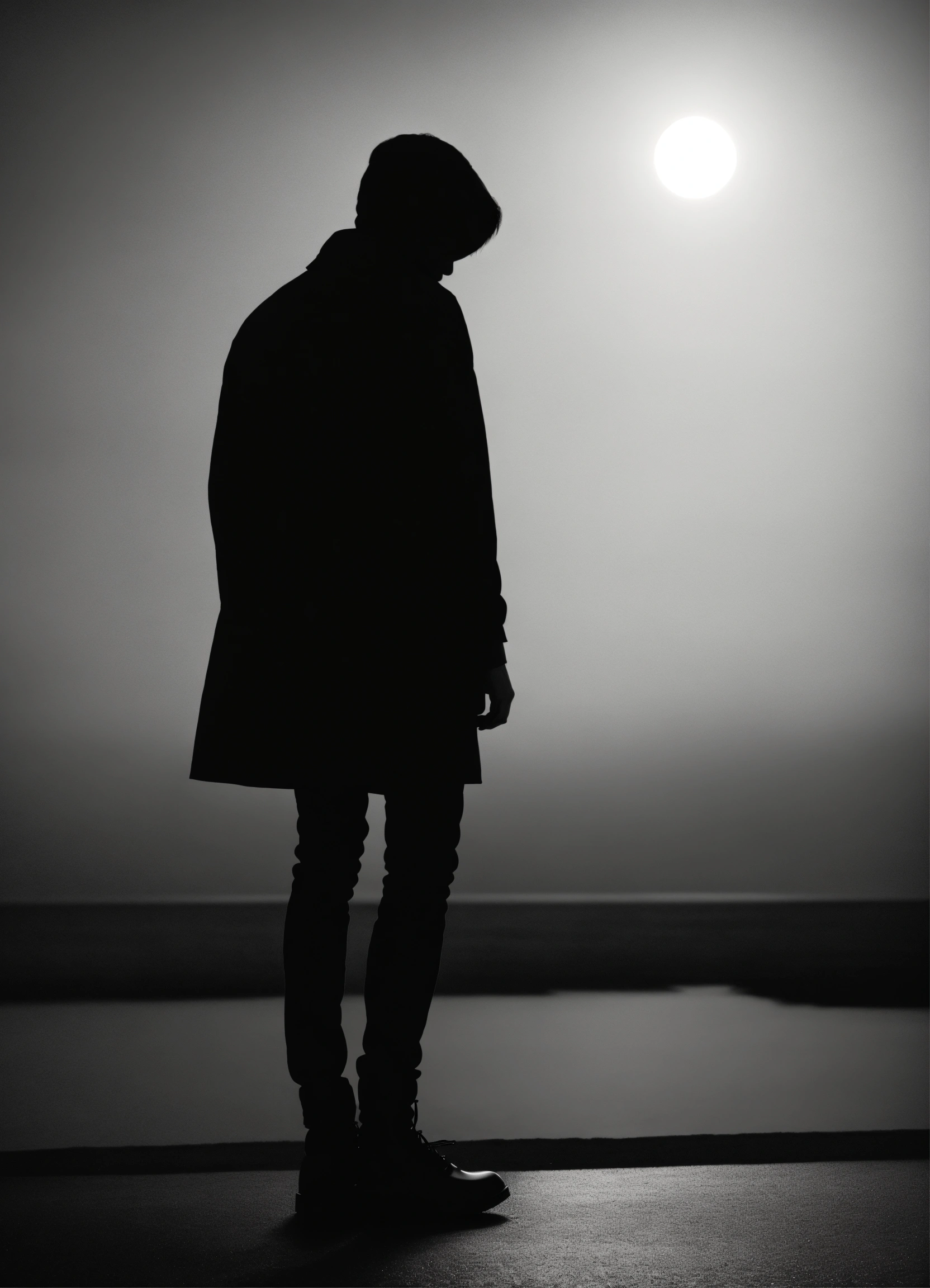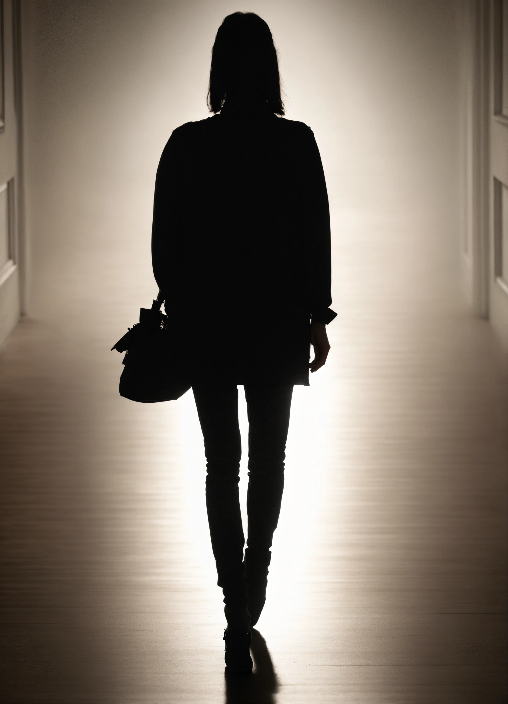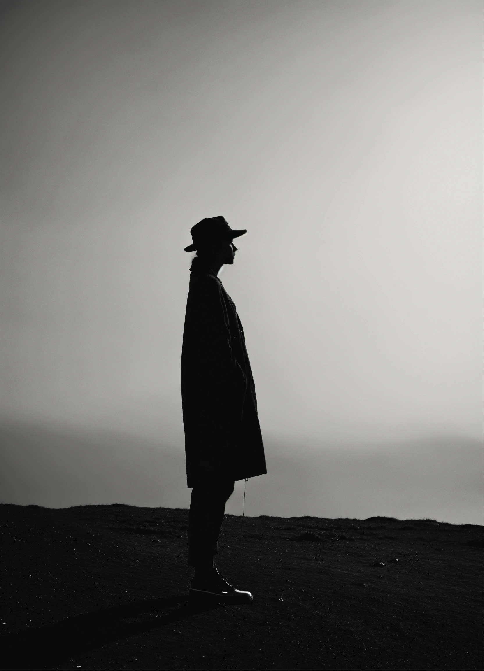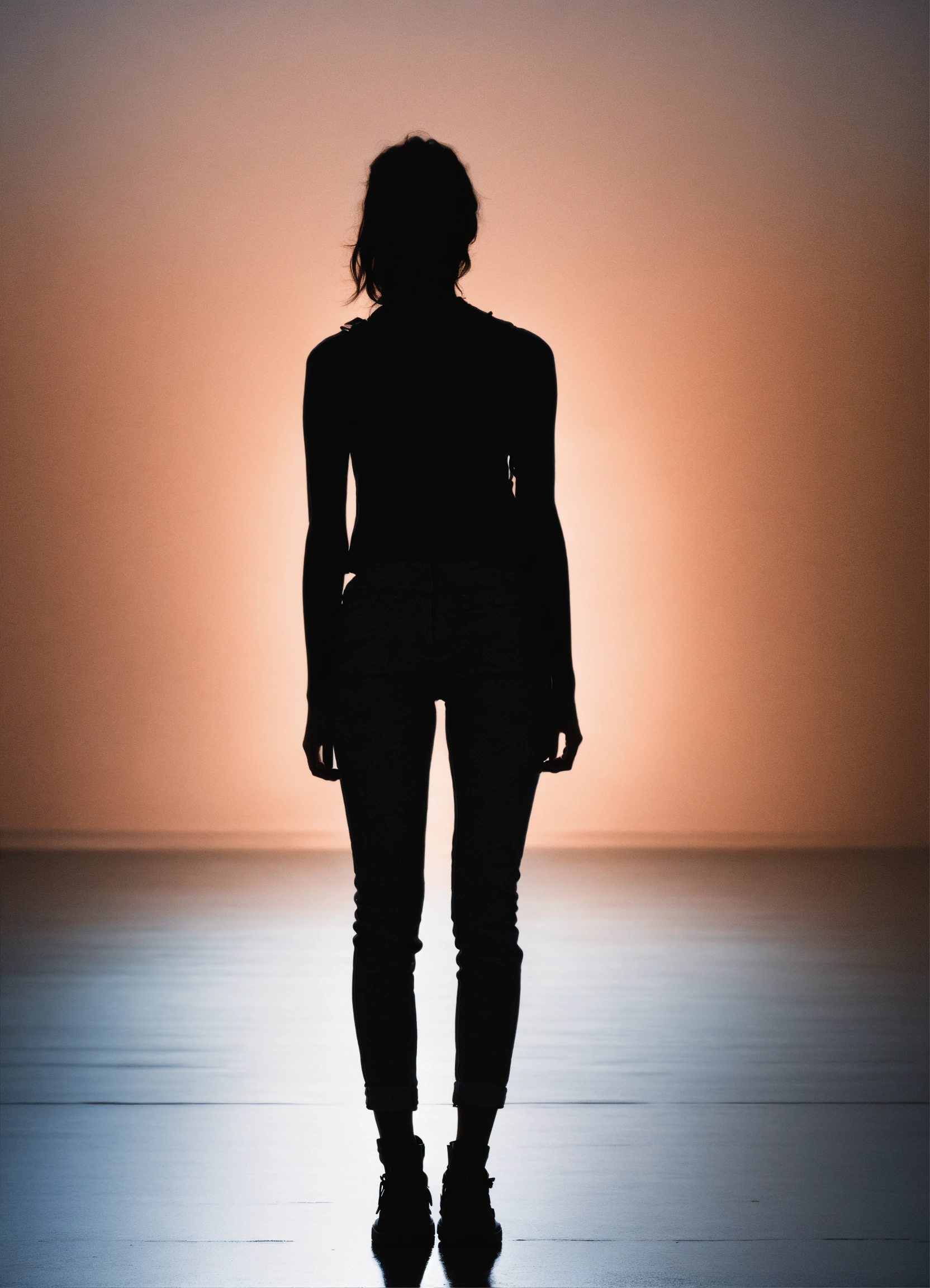 Silhouette noire d'une personne debout de dos sur fond blanc