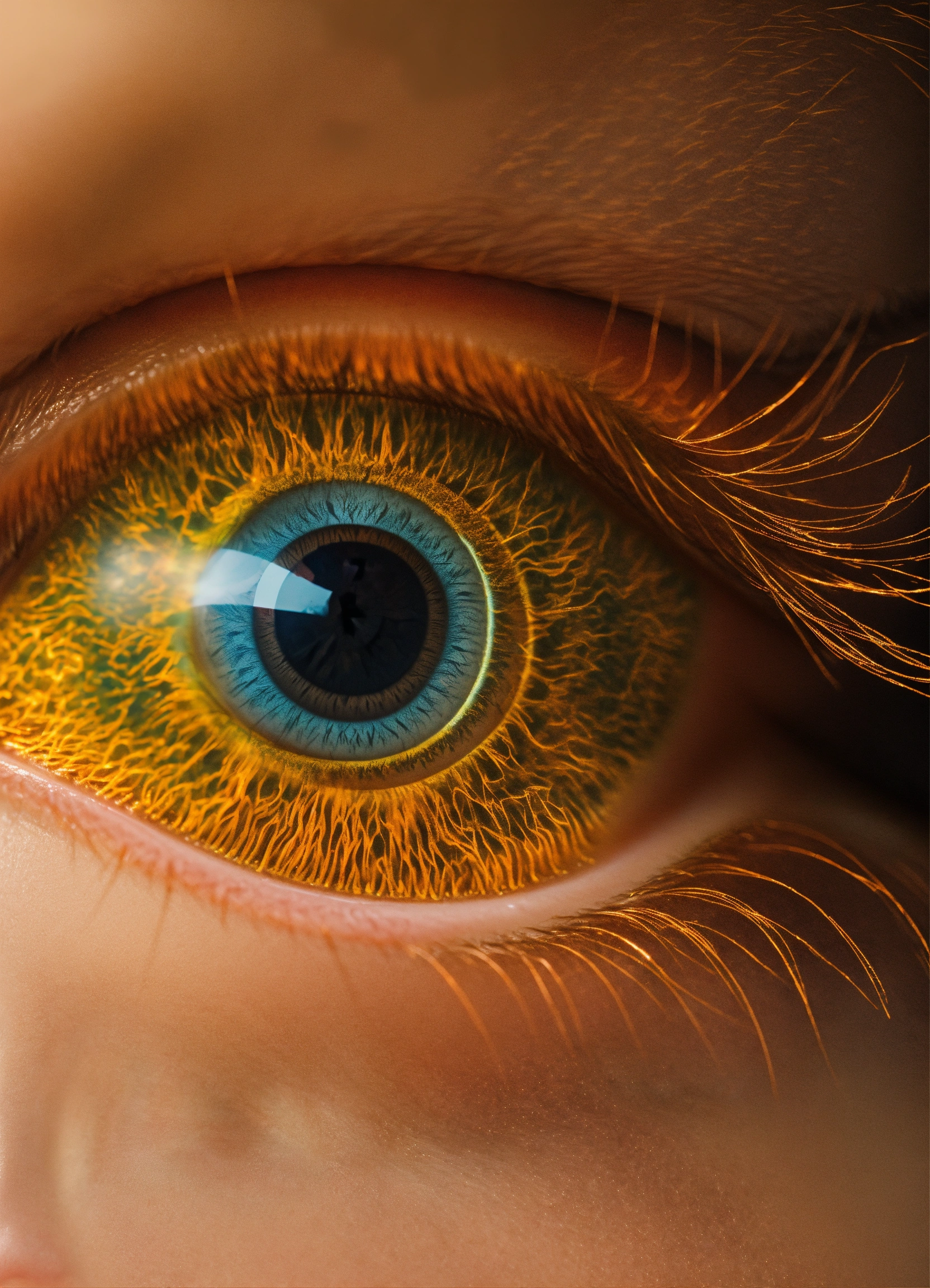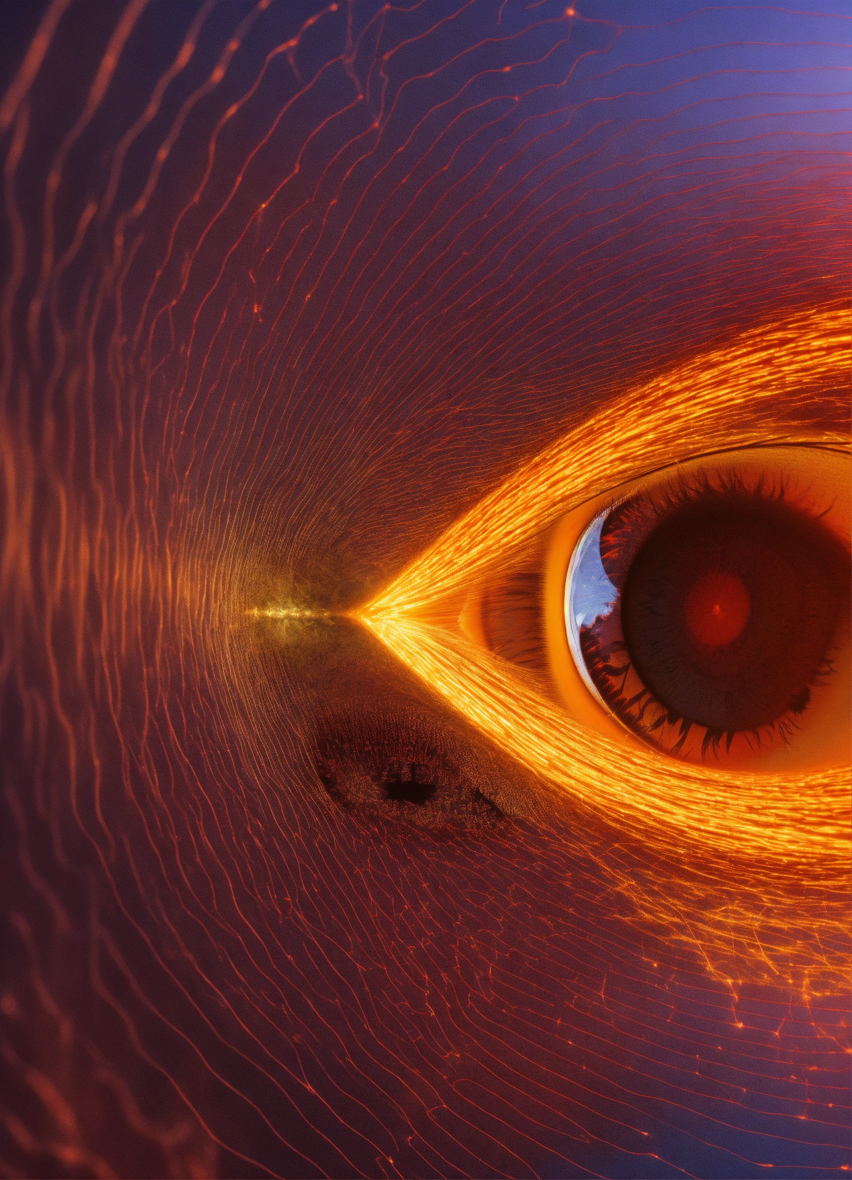 Generate a side-view of an eye with a light wave entering the eye and neural impulse leave the back of the eye