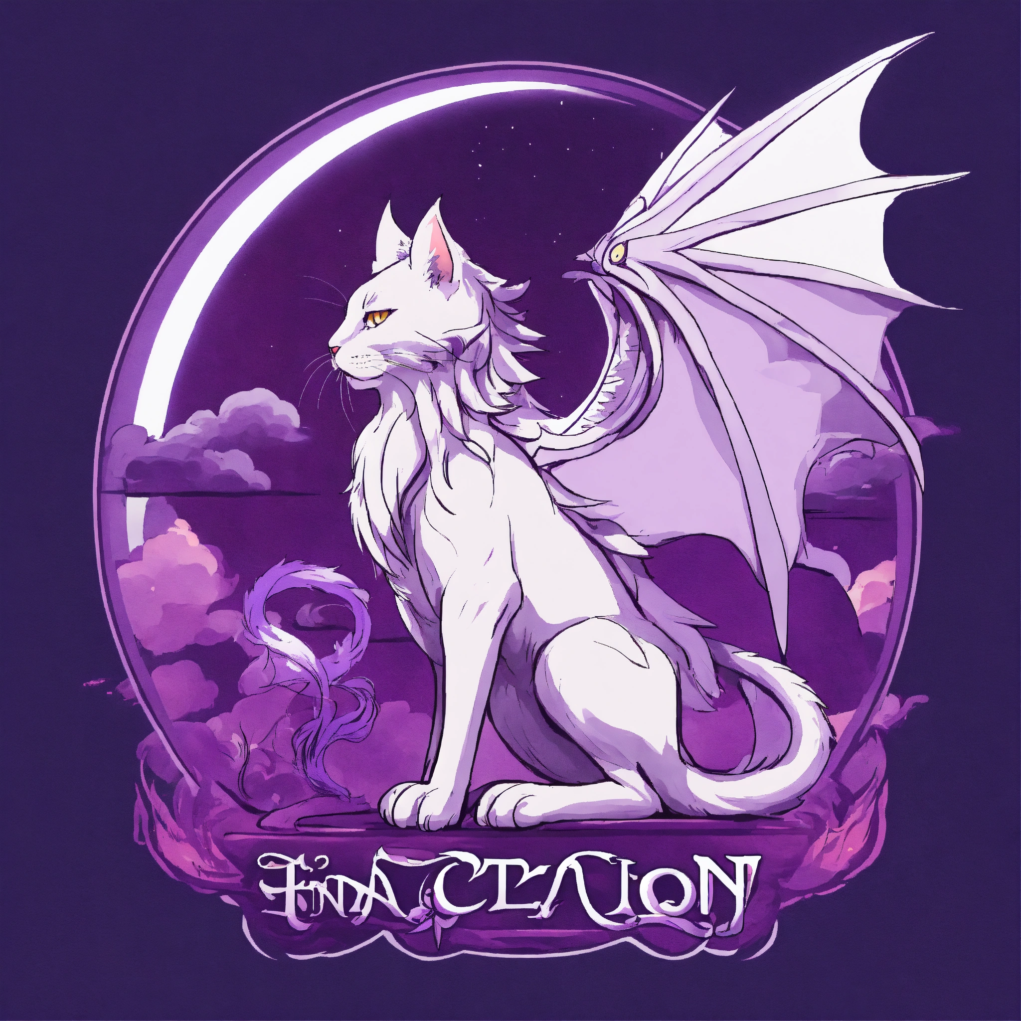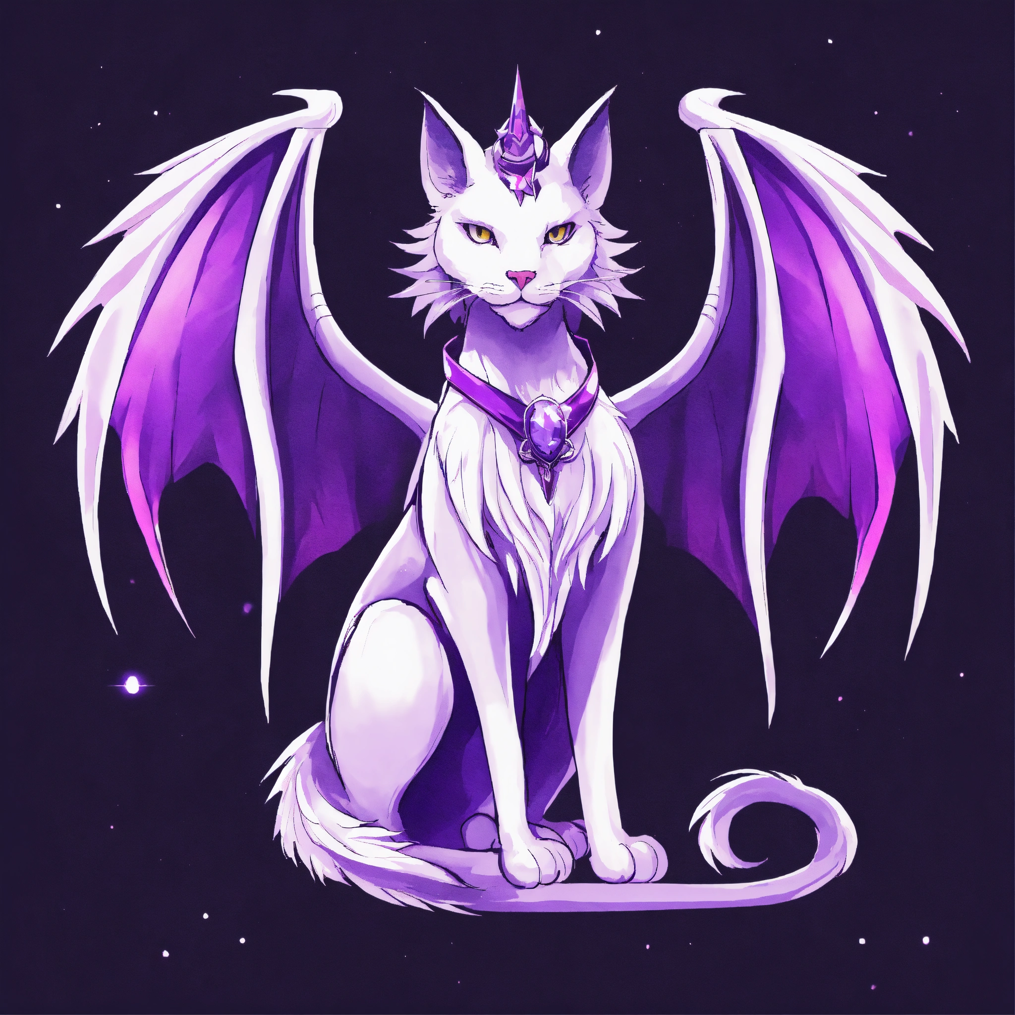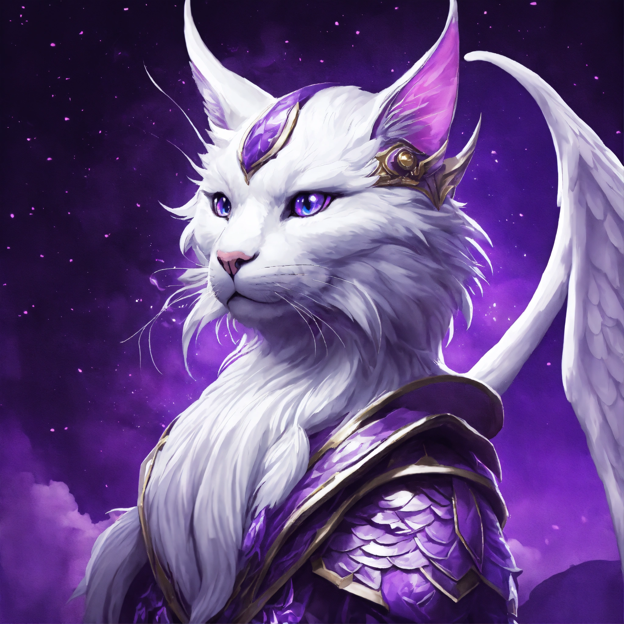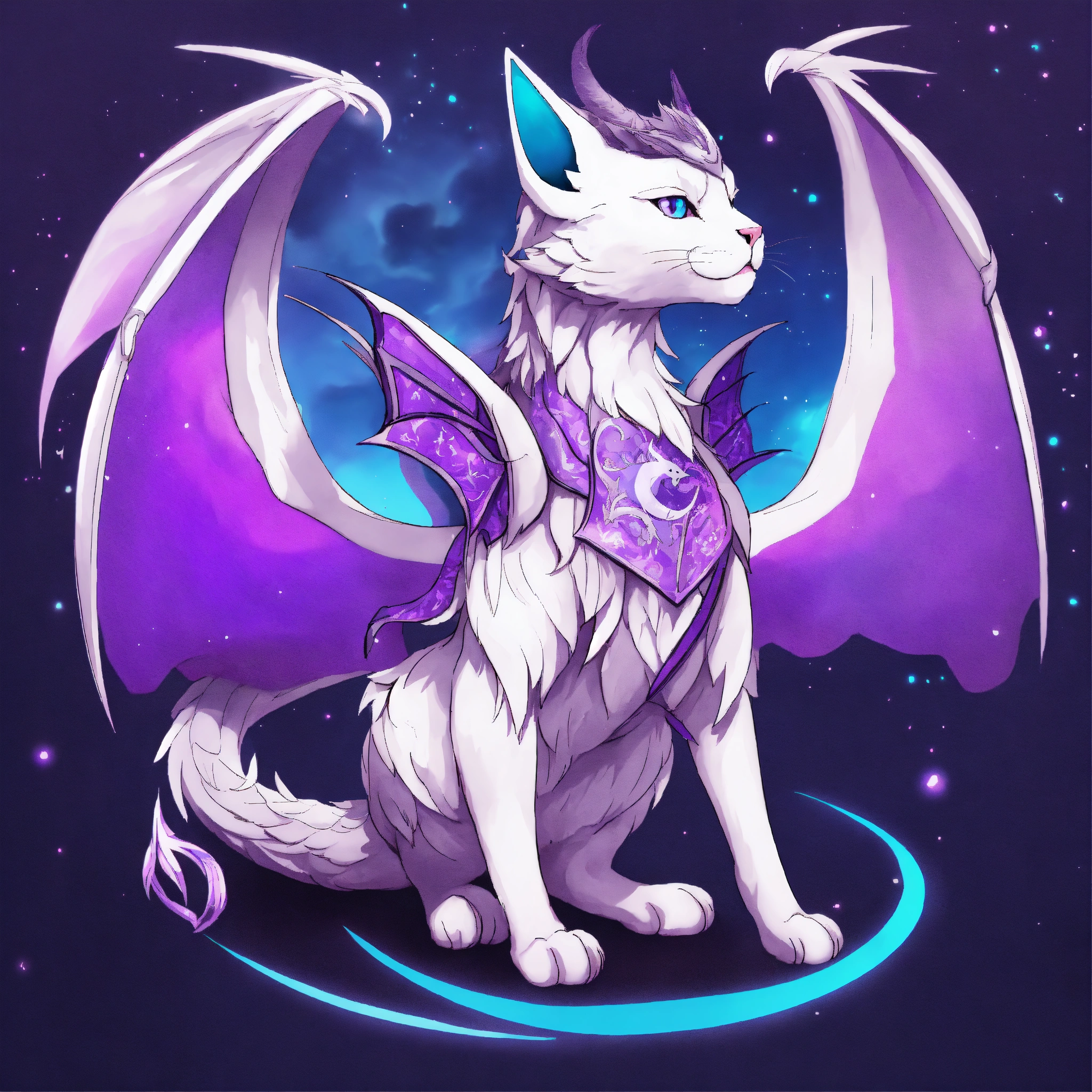 White purple dragon cat with wings the wizard