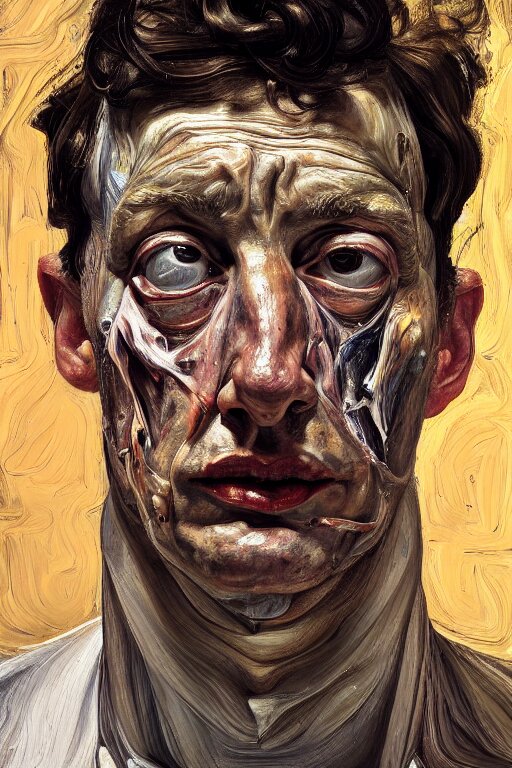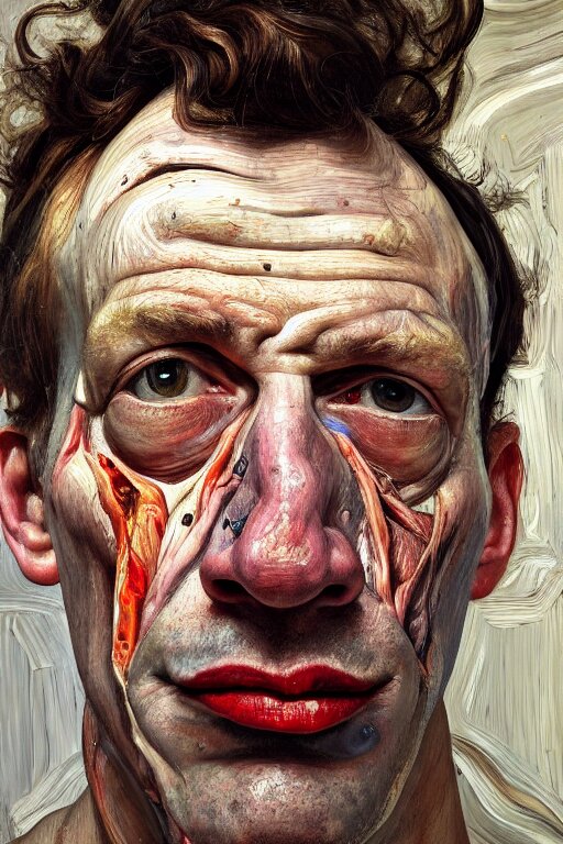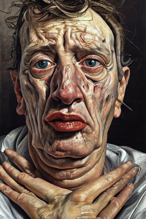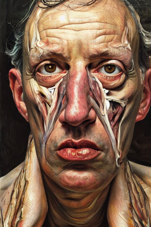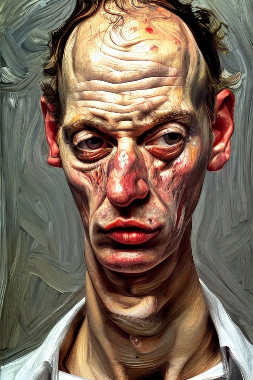 A high-angle close up portrait a very ordinary person, facing front, by lucian freud and jenny saville, oil painting, anatomically correct, beautiful perfect face, sharp focus, highly detailed, cinematic lighting, 8k, hd