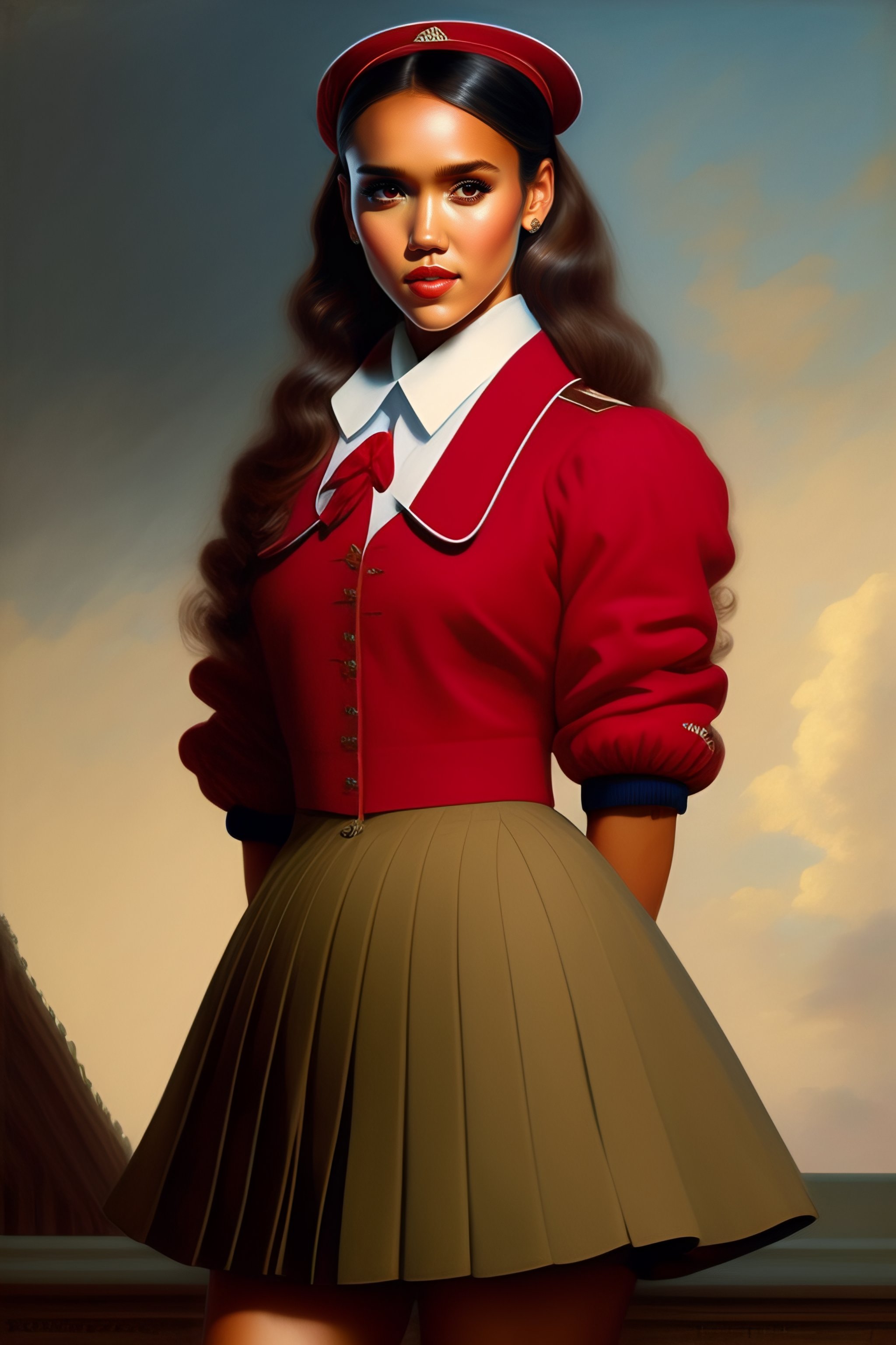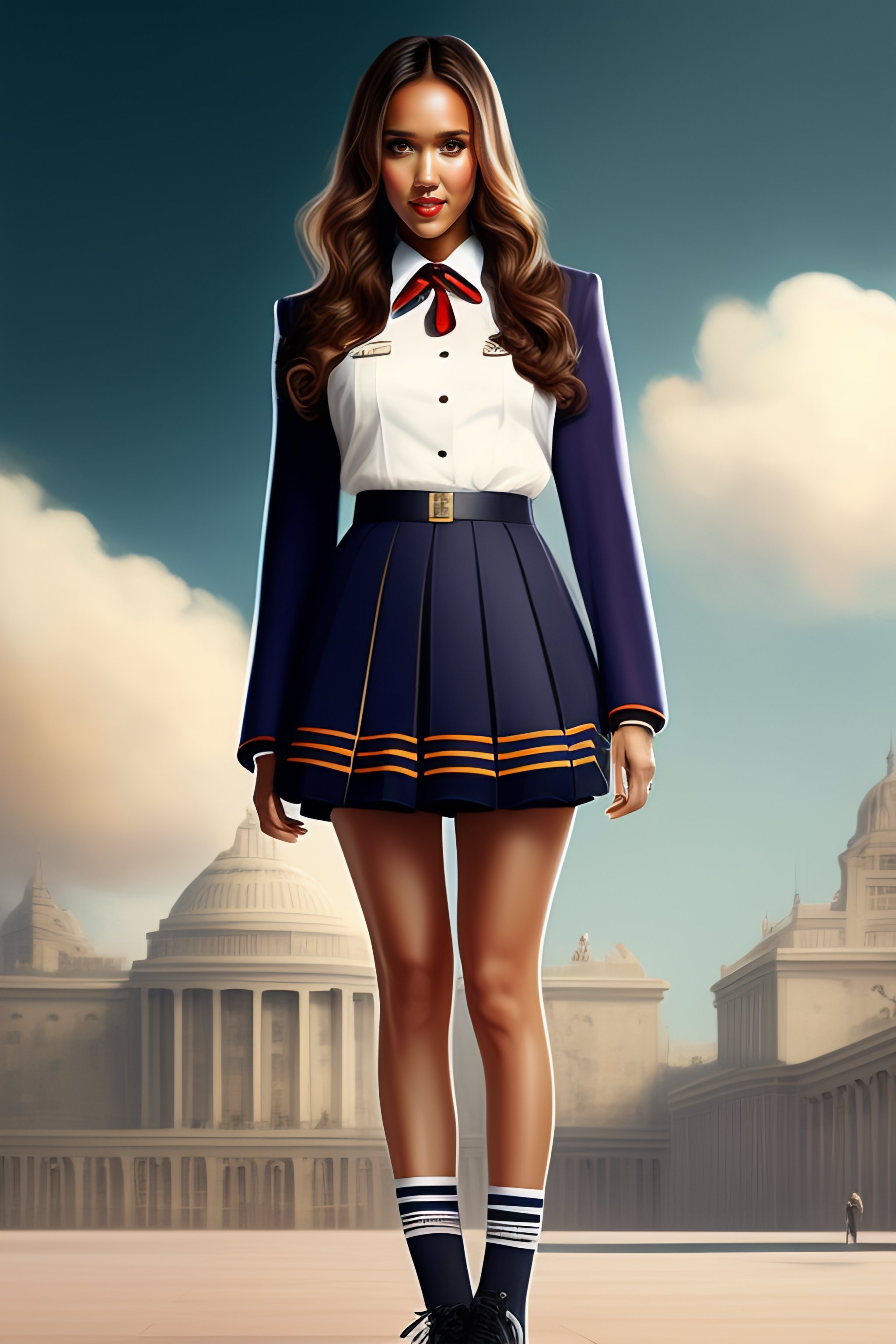 Jessica alba - un, school uniform, seifuku, pleated miniskirt, overknee socks. by rembrandt 1 6 6 7, illustration
