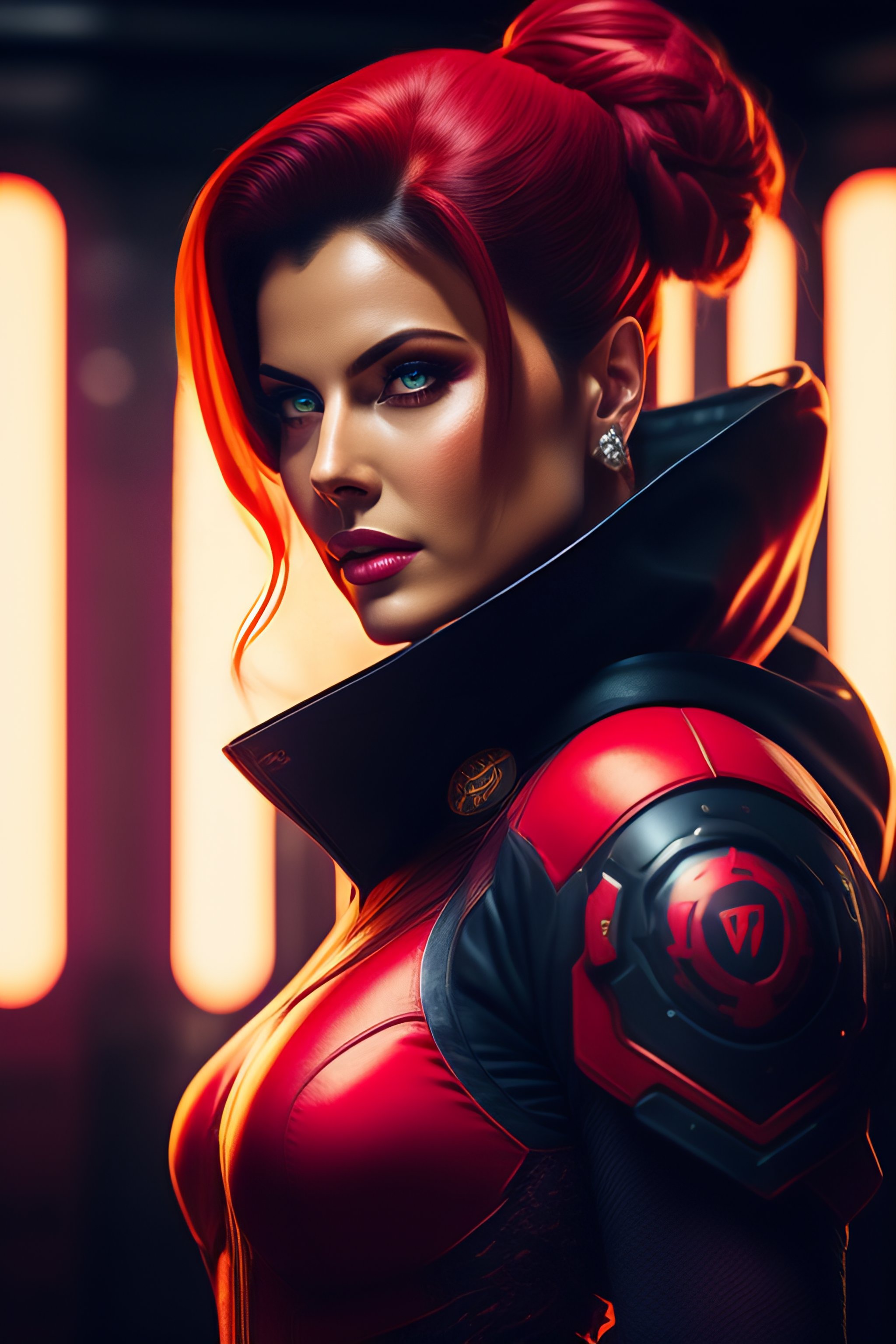 {julia voth as overwatch character} likea old film 1980 vsco vhs photofiltre, old cyberpunk, red, bladerunner, ghost in the shell, medium shot, concept character art, intricate details, extremely detailed, (by greg rutkowski), (by michael whelan), (by gustave dore)