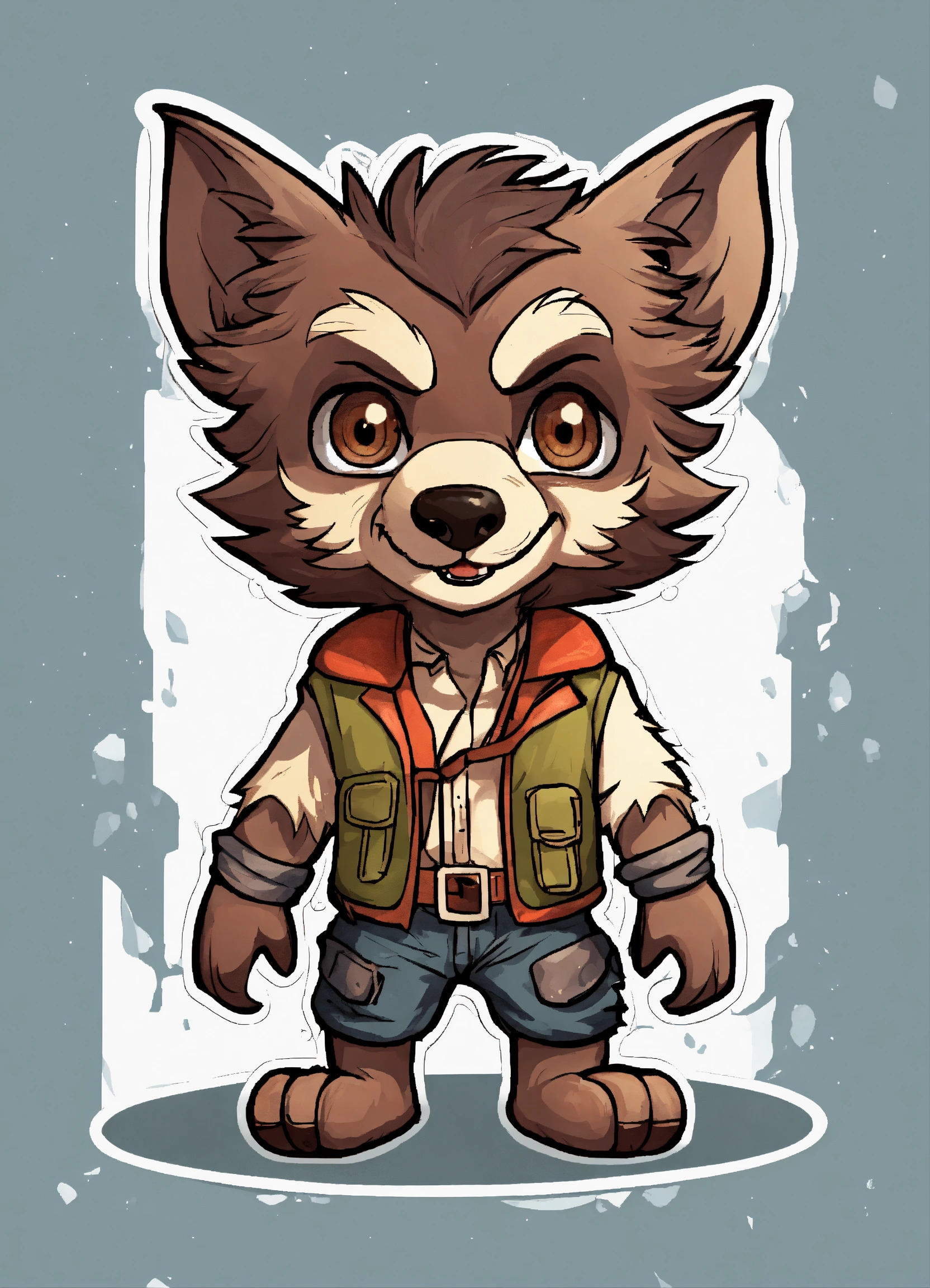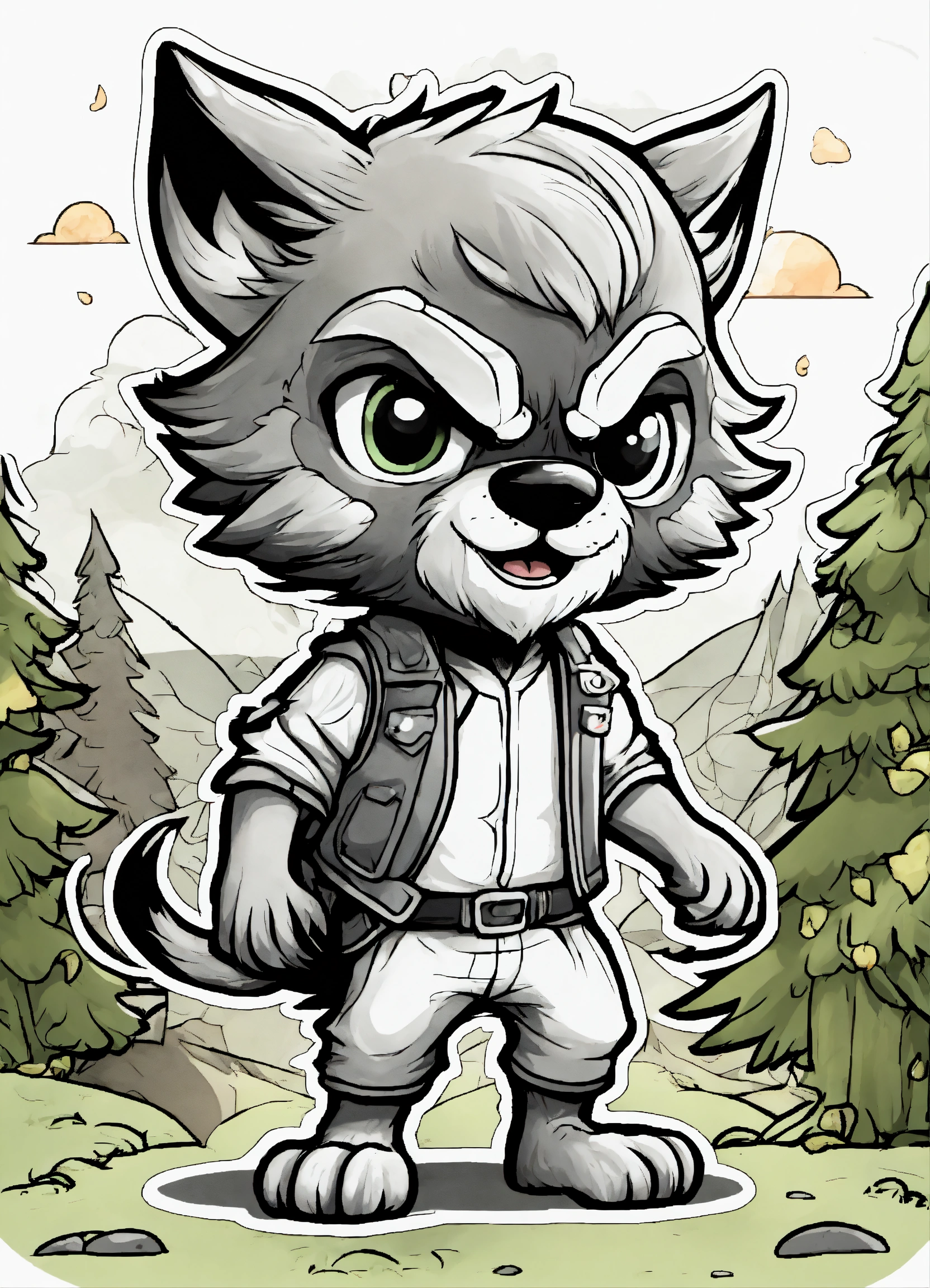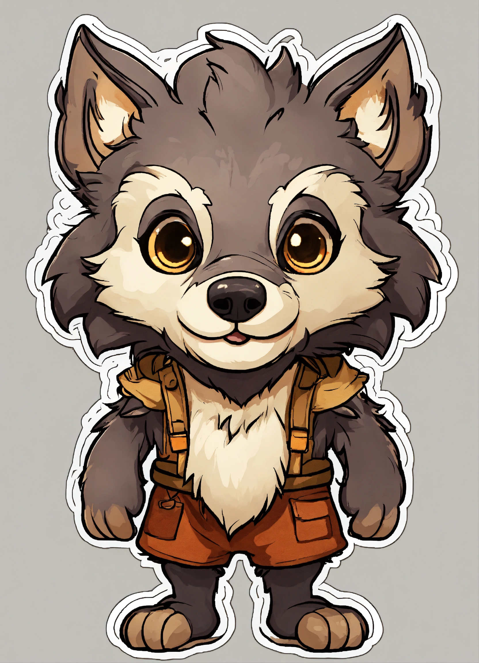 Generate a cute little werewolf illustration, 4k resolution, cartoon-sticker style with clear lines on a pure white background suitable for a children's coloring book.