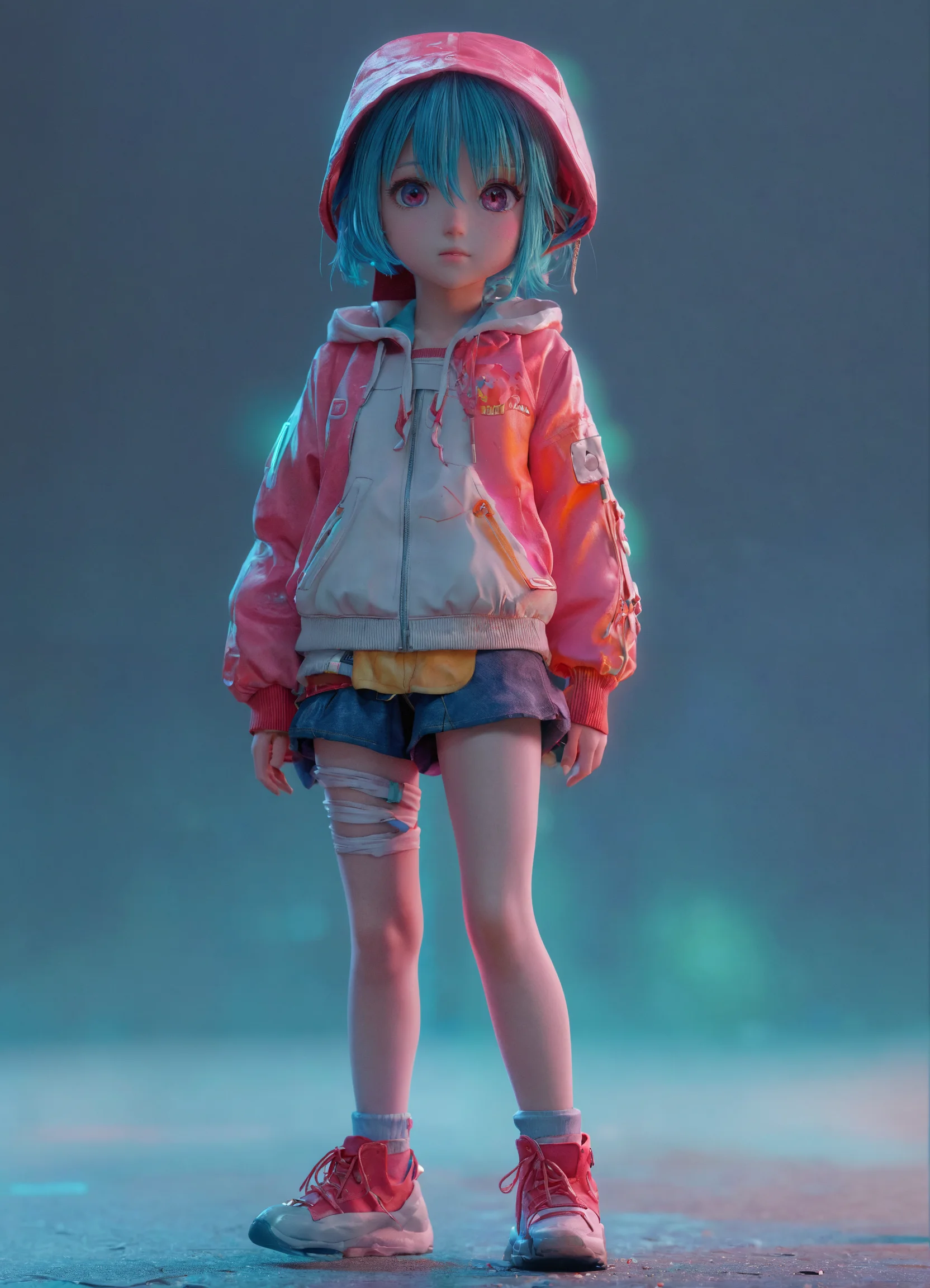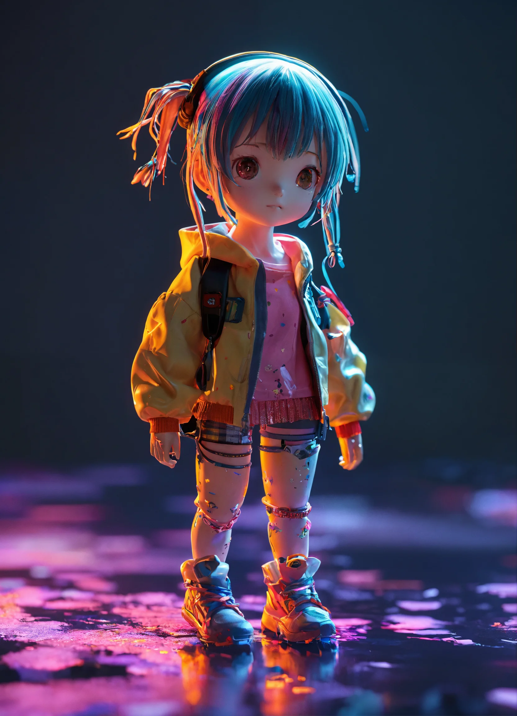4d photographic image of a full-body image of a sweet tiny anime character with realistic, vivid colors. rendered in octane and trending on artstation. it features artistic photography, photorealistic concept art, harsh artificial strobe lighting, uhd resolution, and no background.