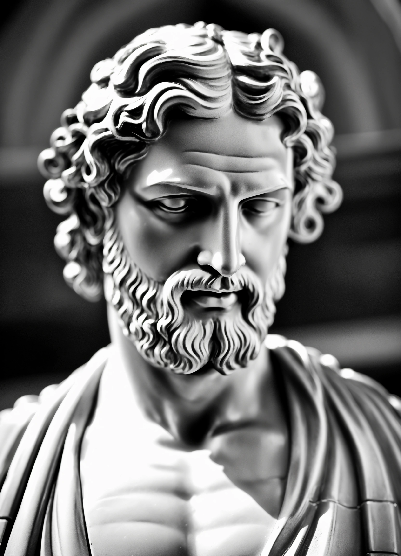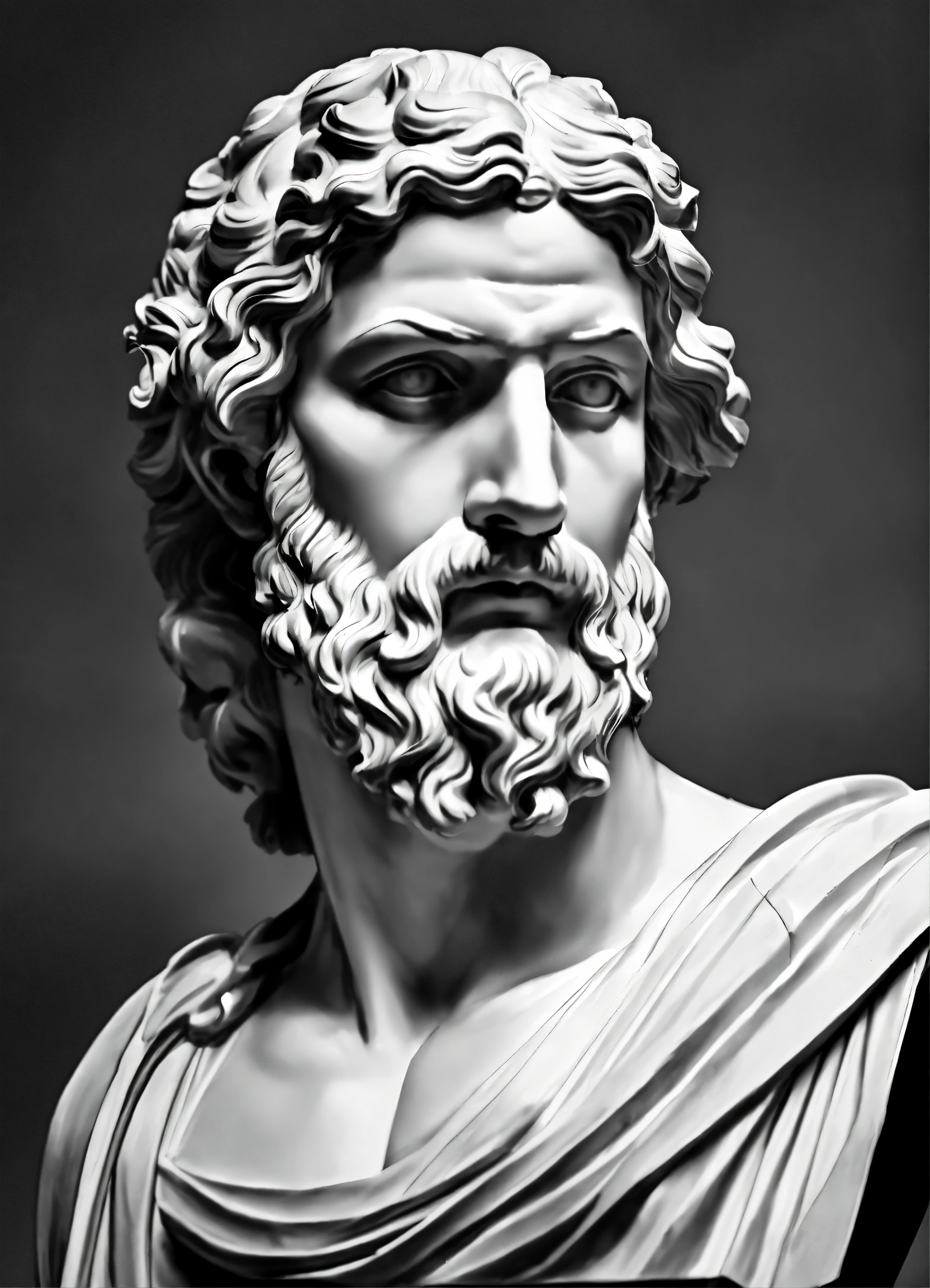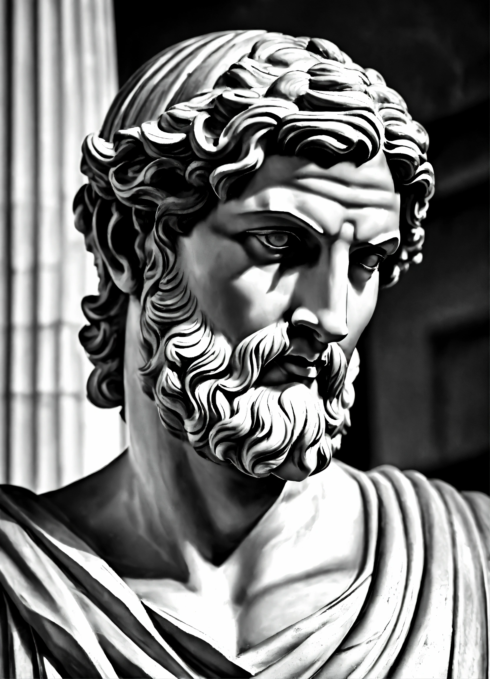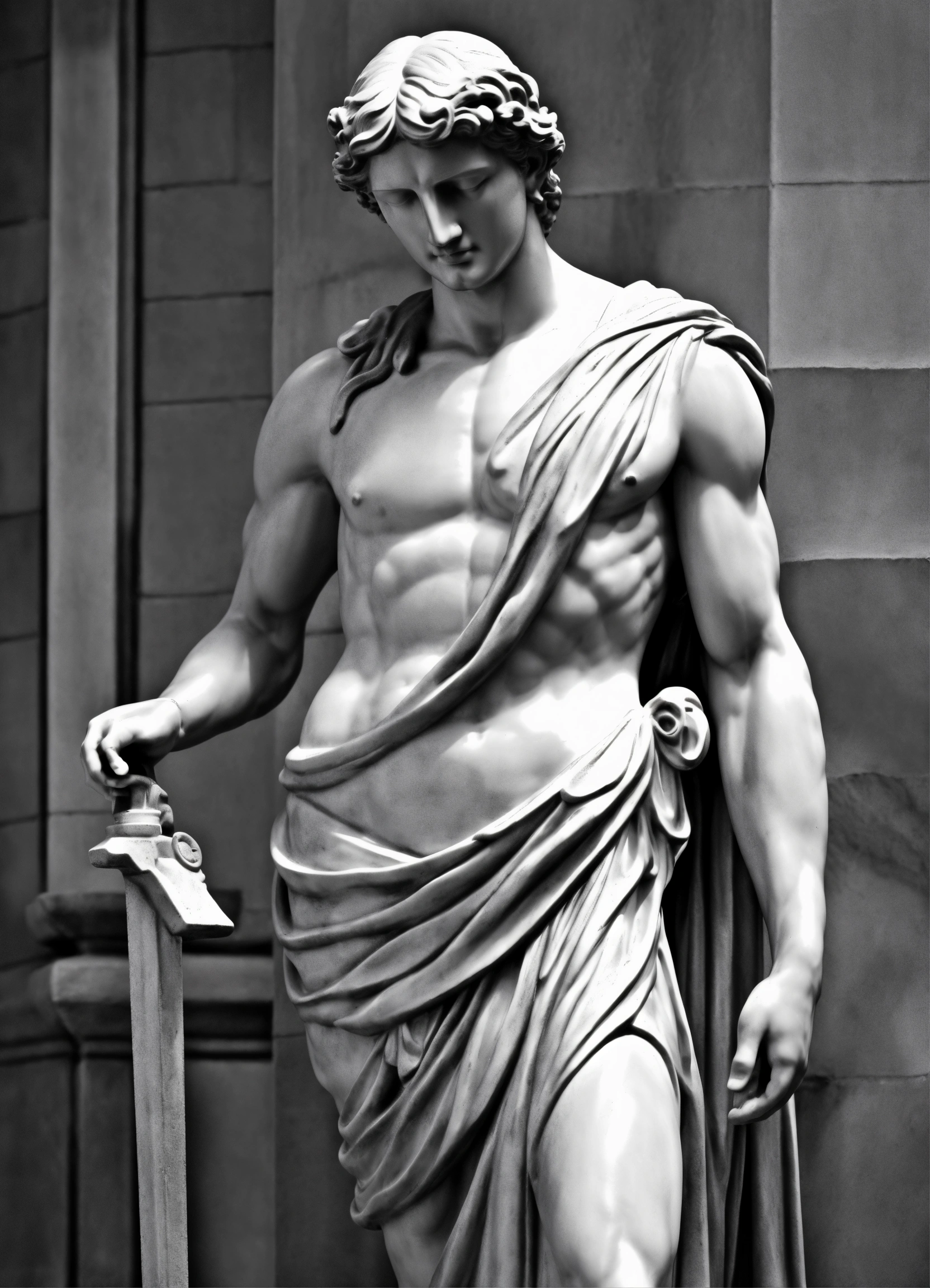 Simple greek uscular greek god statue with middelparting hair black and white