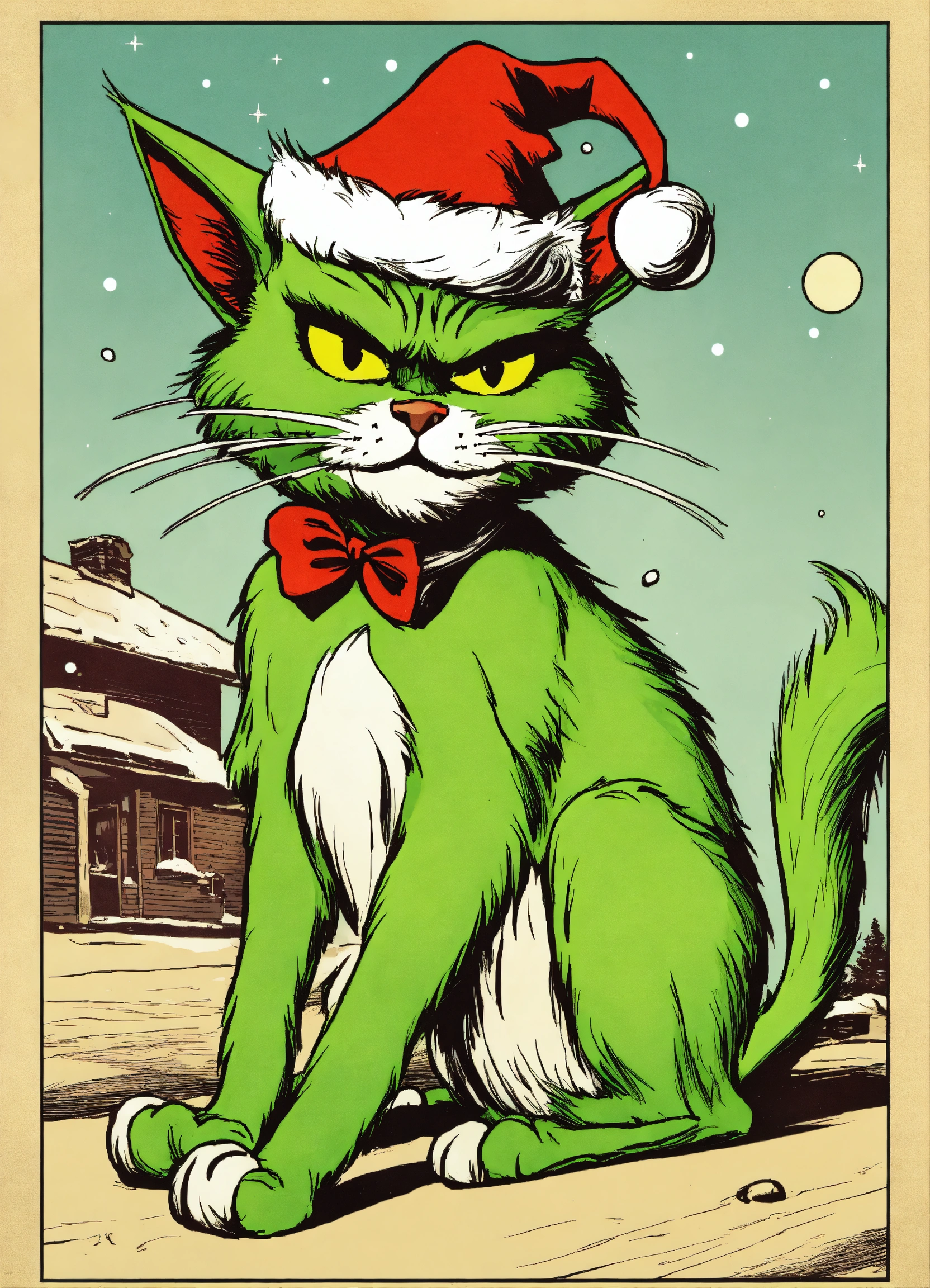 Grinch cat vintage comics style