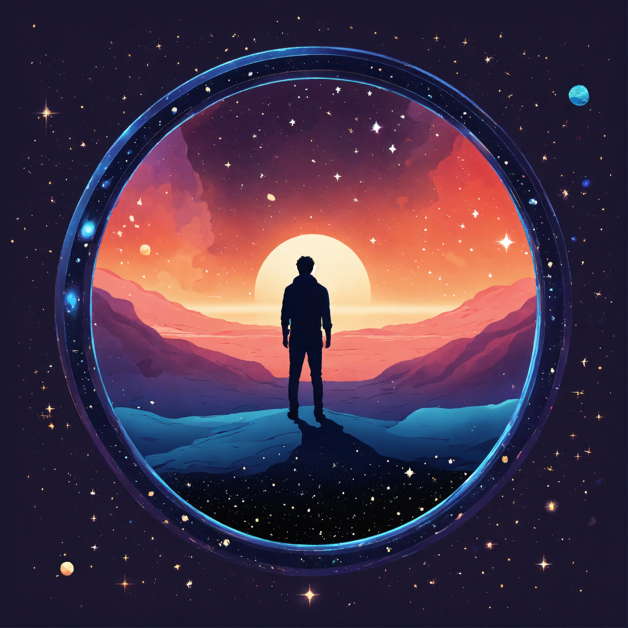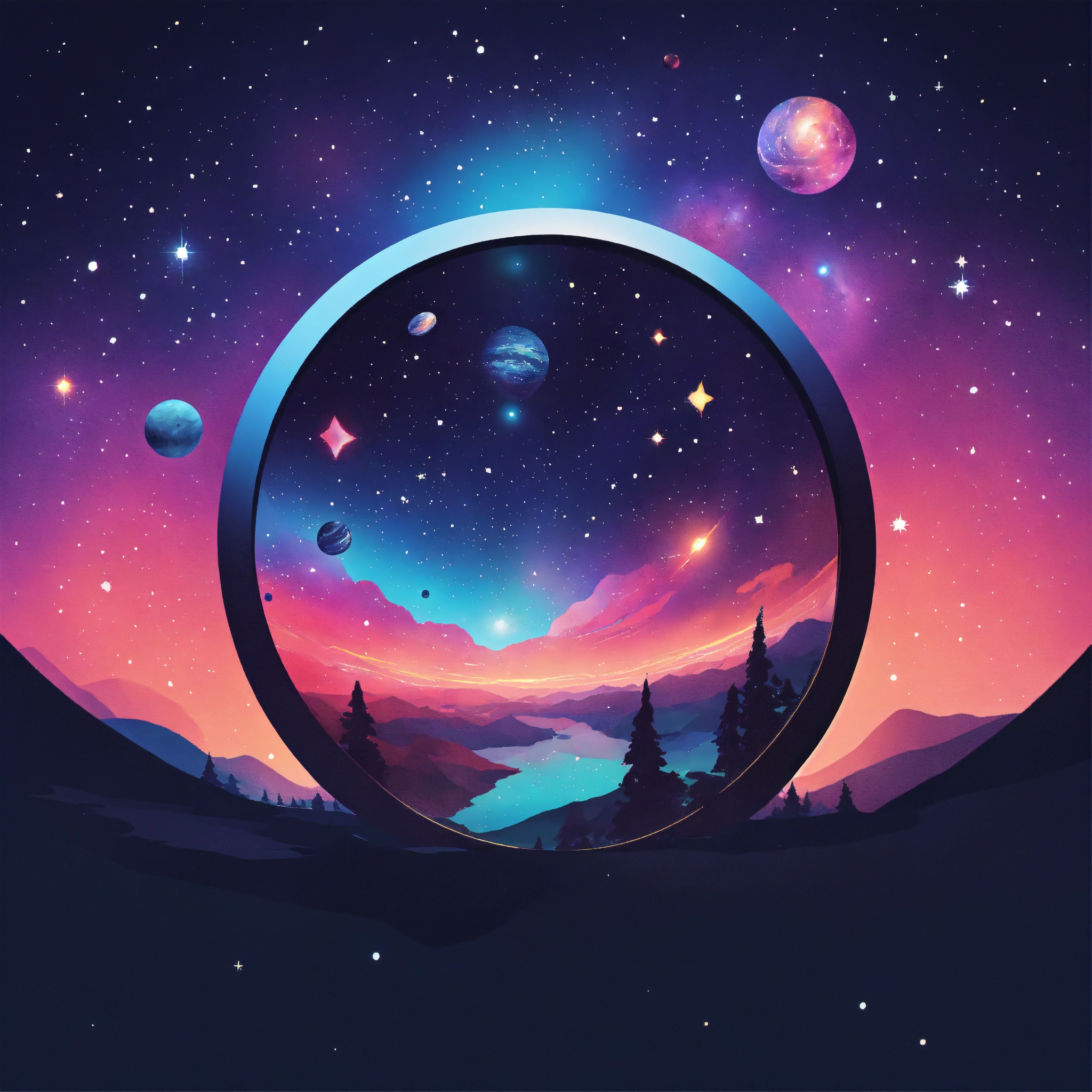 T-shirt vector illustration, centered design of a minimalist mirror, reflecting a universe of galaxies and stars, set against a cosmic backdrop, exploring inner vastness. minimalist, centered, solid background.