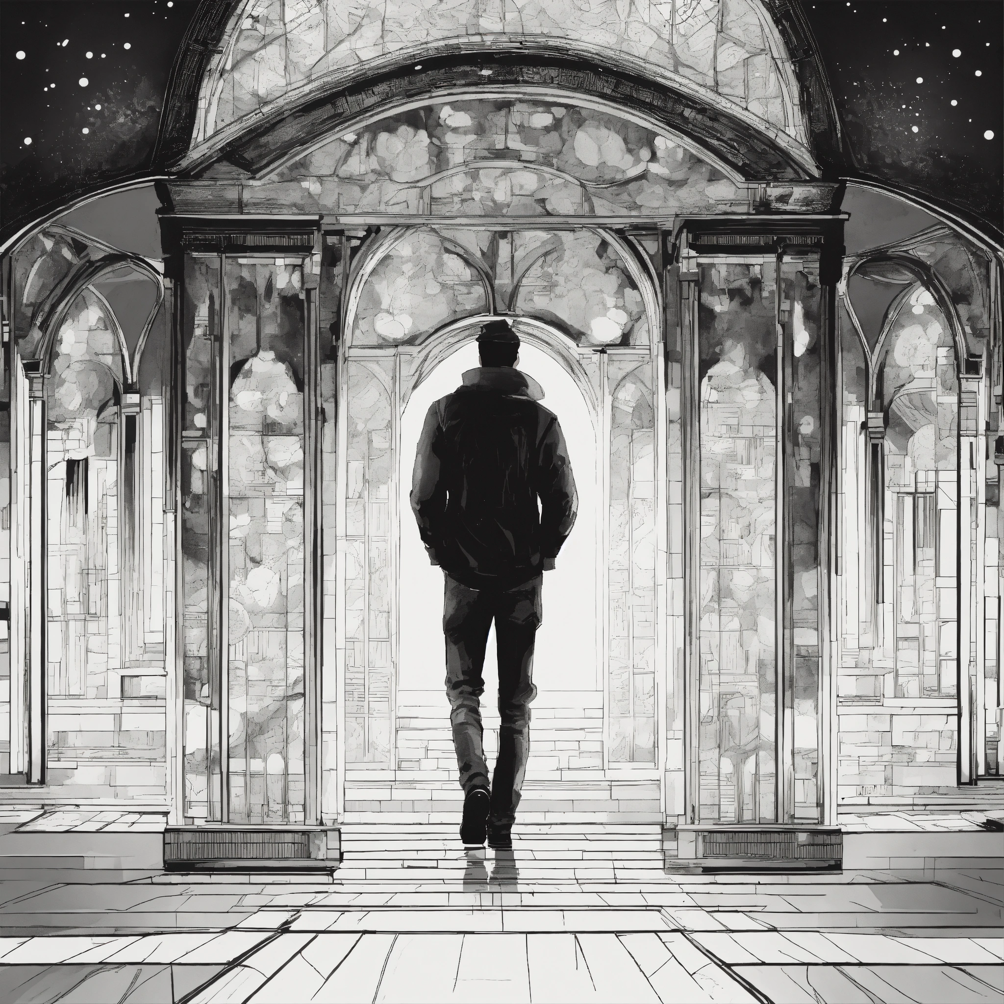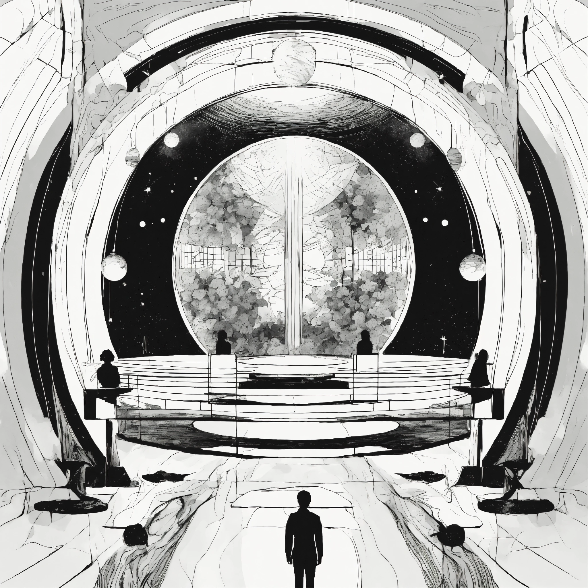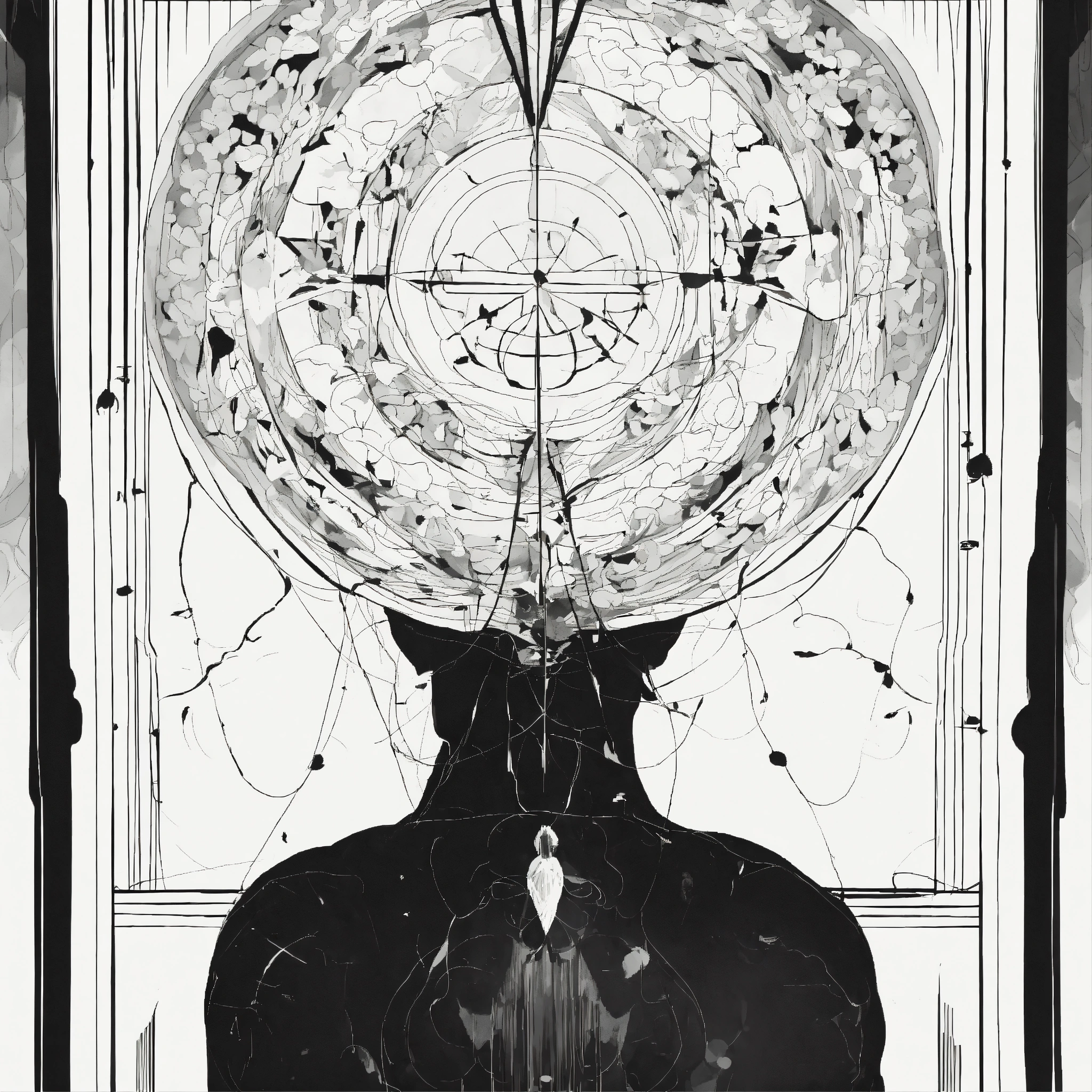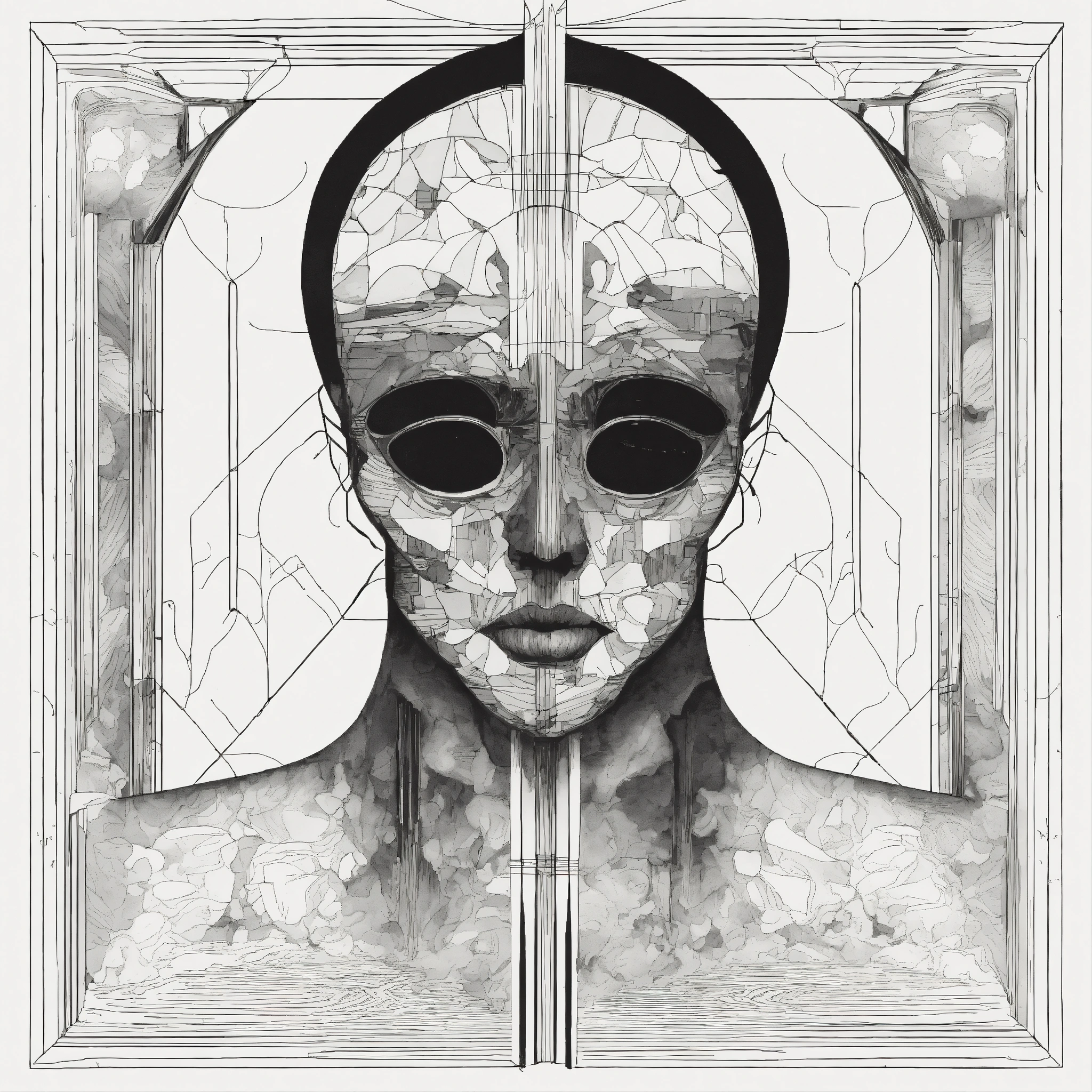 Symmetry, loneliness and regret, black and white, white background, no background, ink fine line art stylized, vector