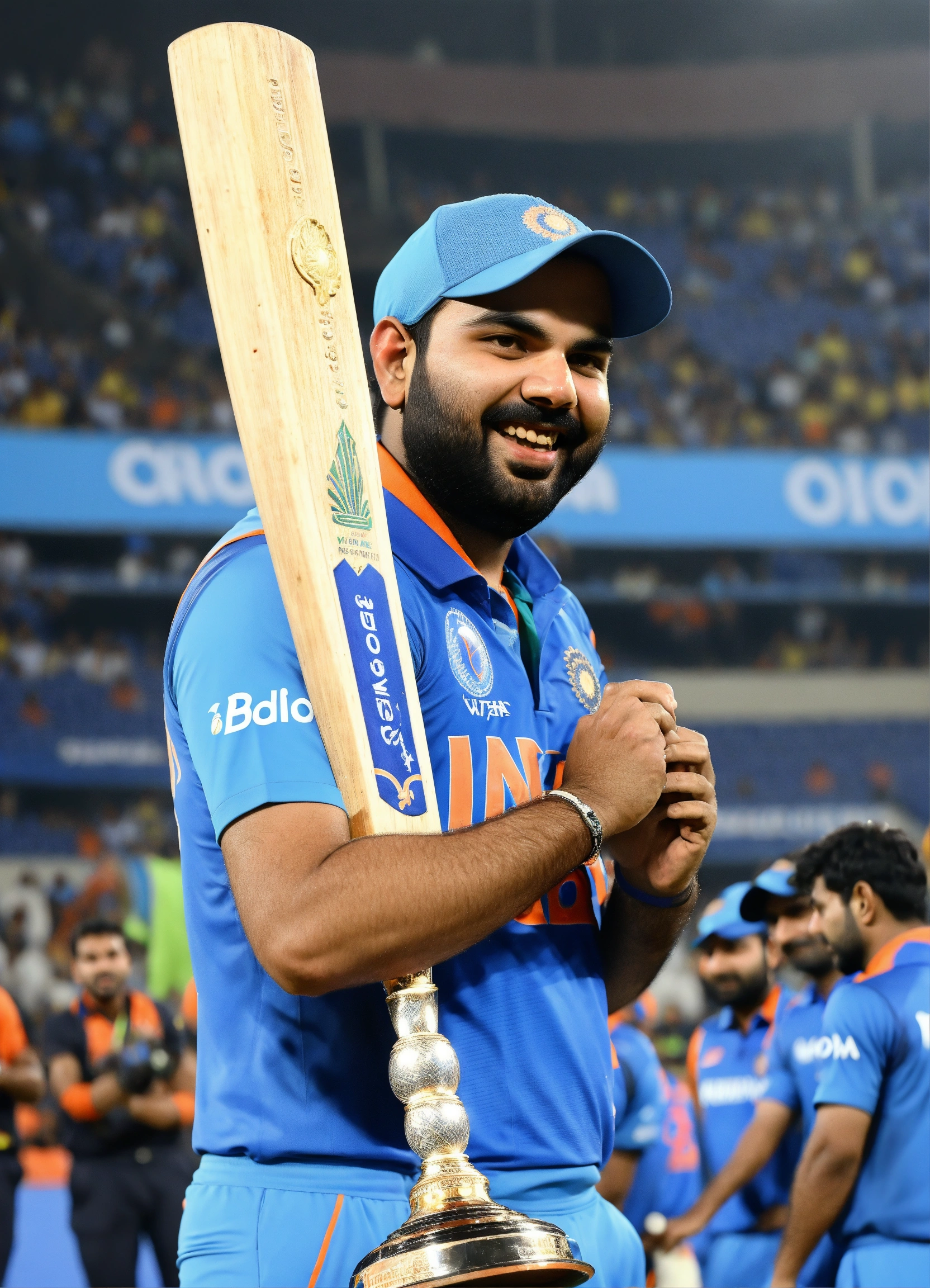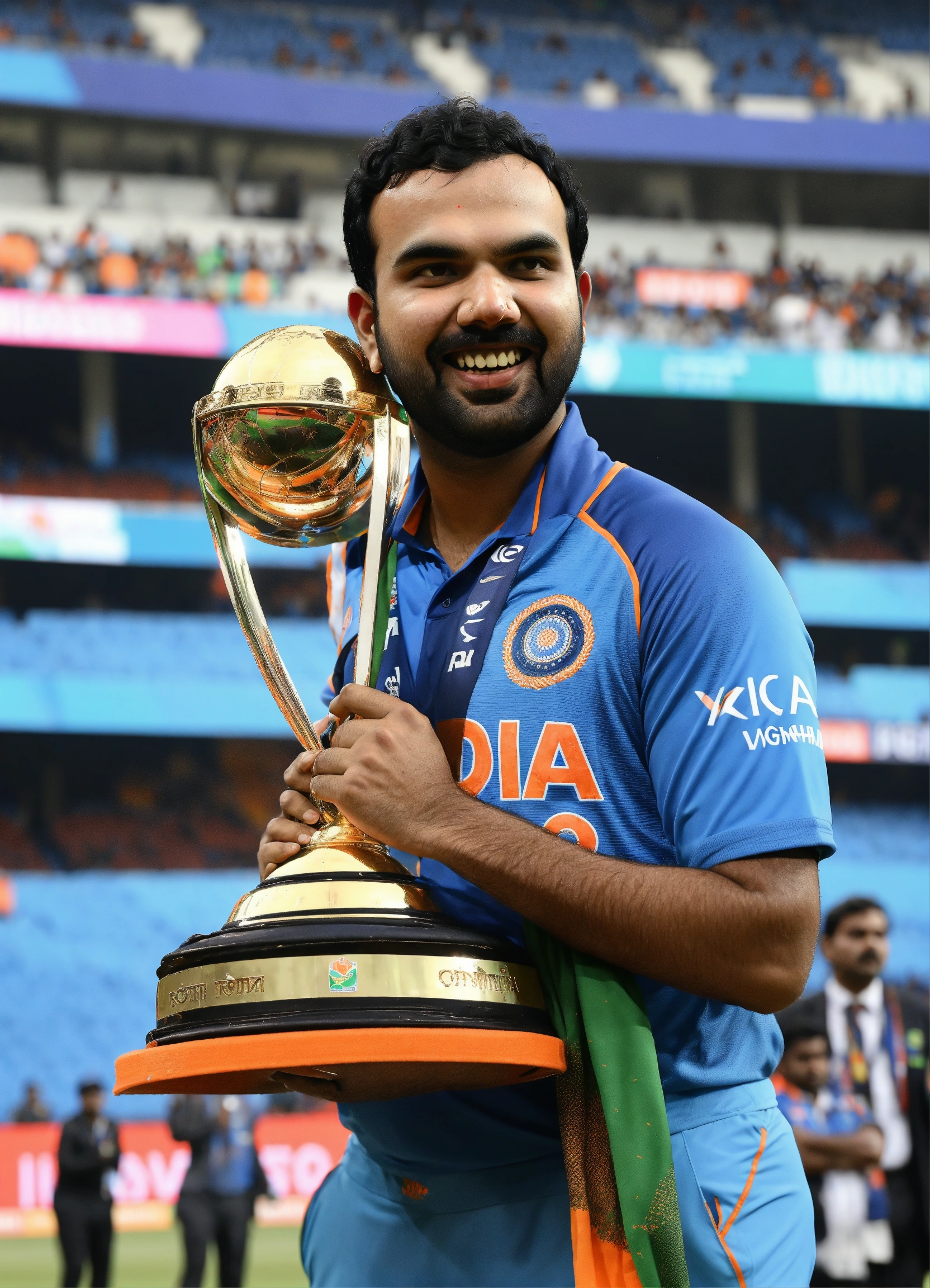 At the narendra modi stadium in ahmedabad, rohit sharma etched his name in history by securing the icc cricket world cup. his unparalleled determination and exceptional teamwork were evident as he delightedly lifted the trophy, leaving an indelible mark on cricketing history and resonating with fans worldwide.
