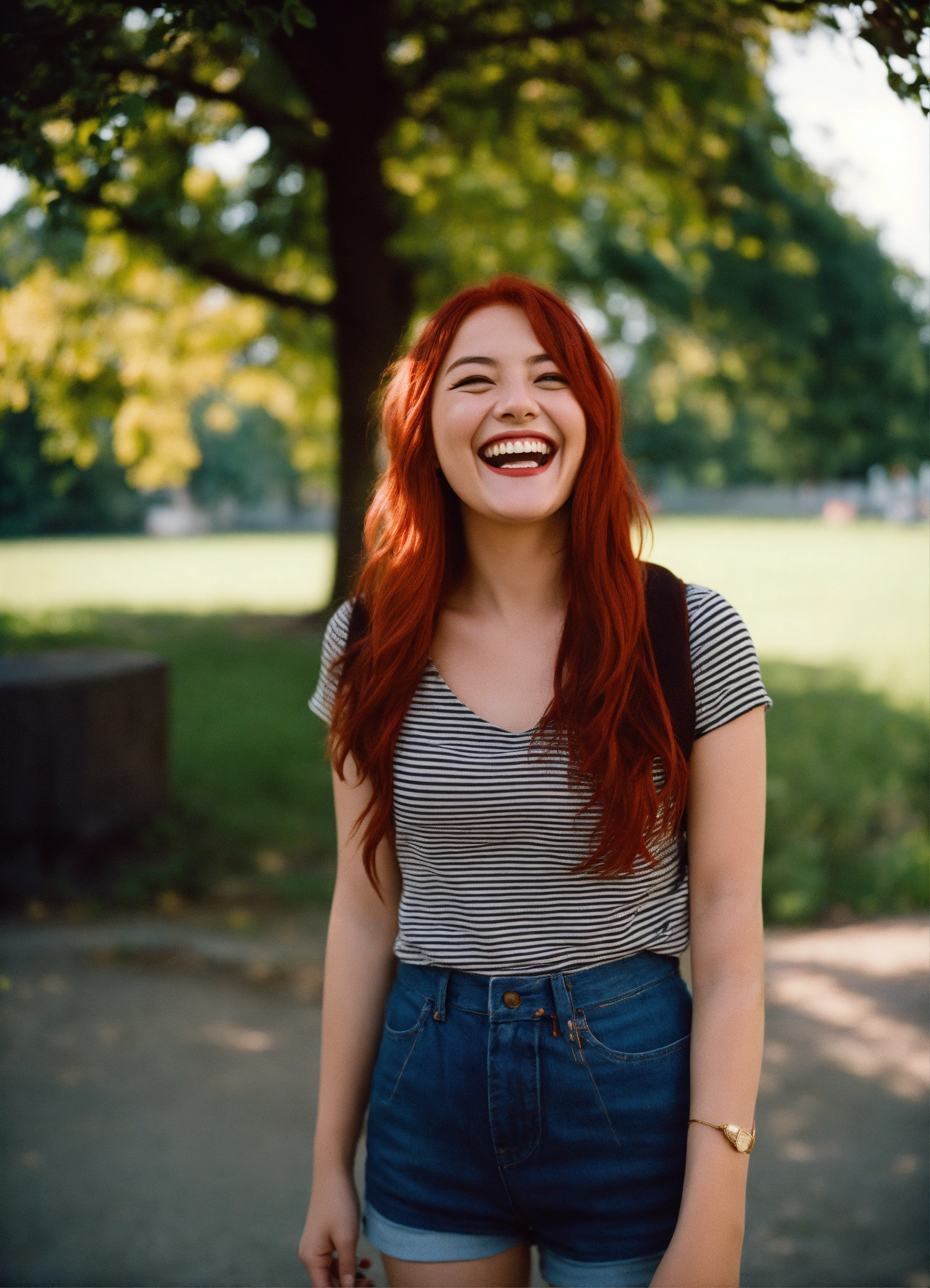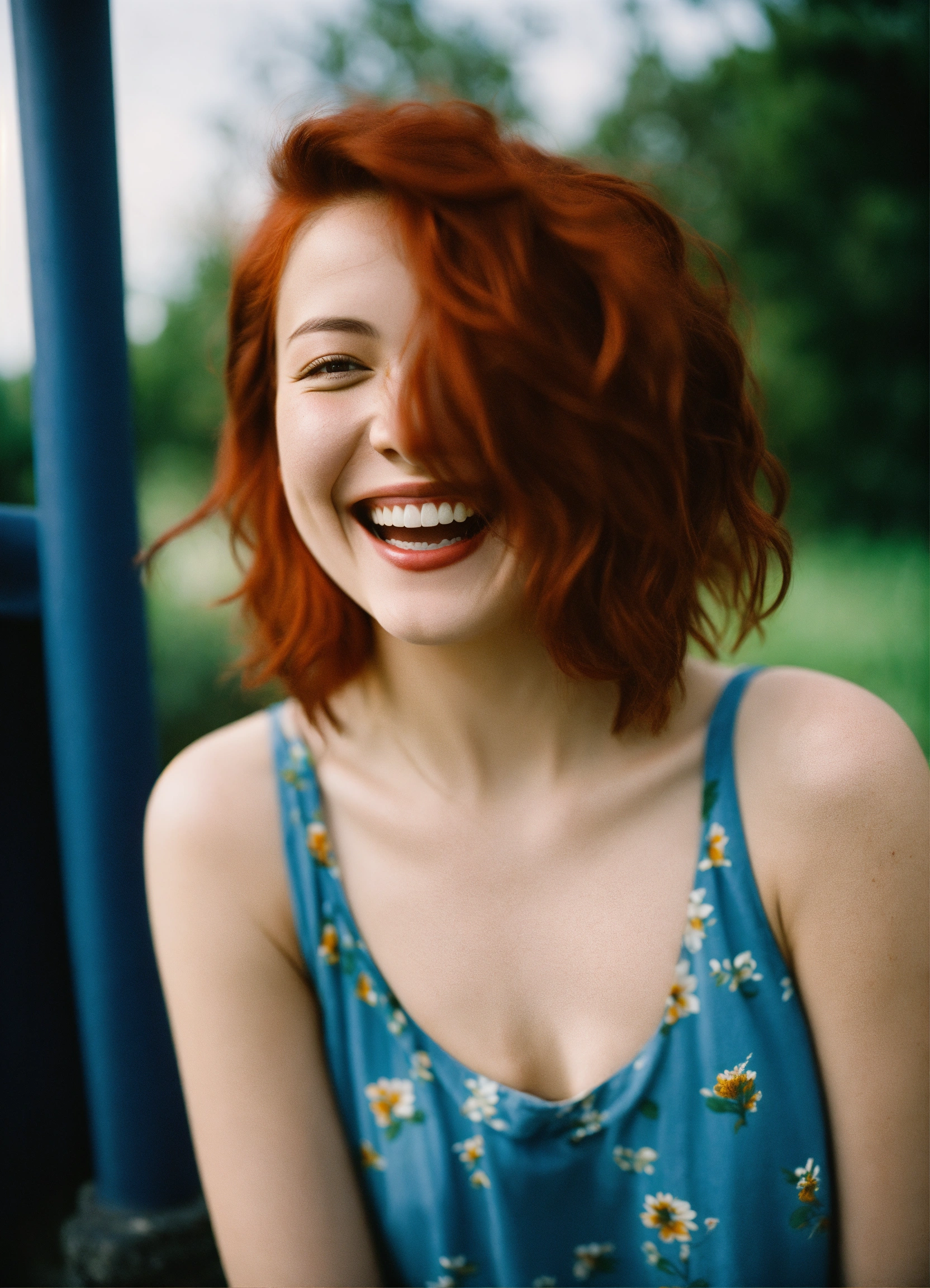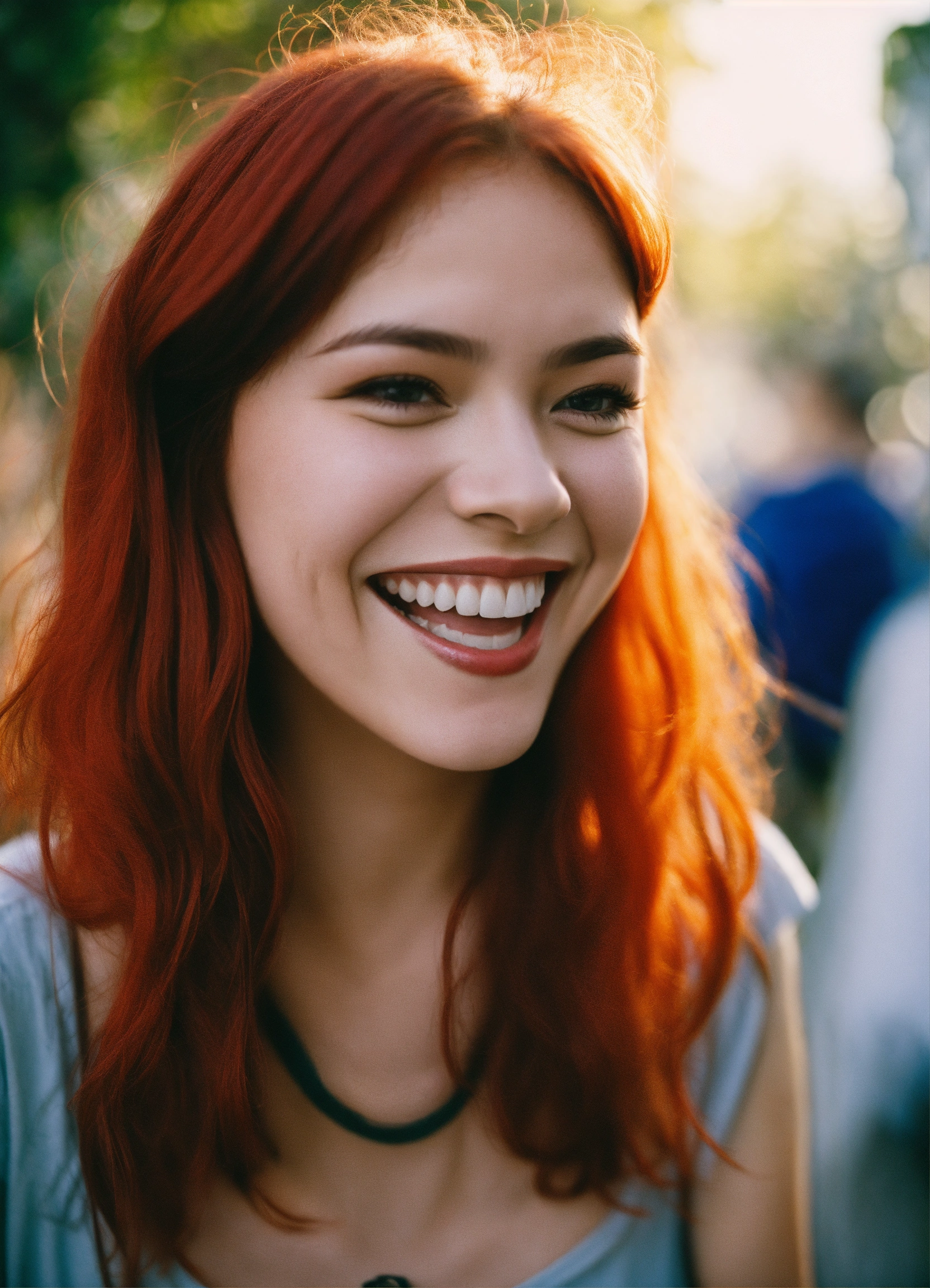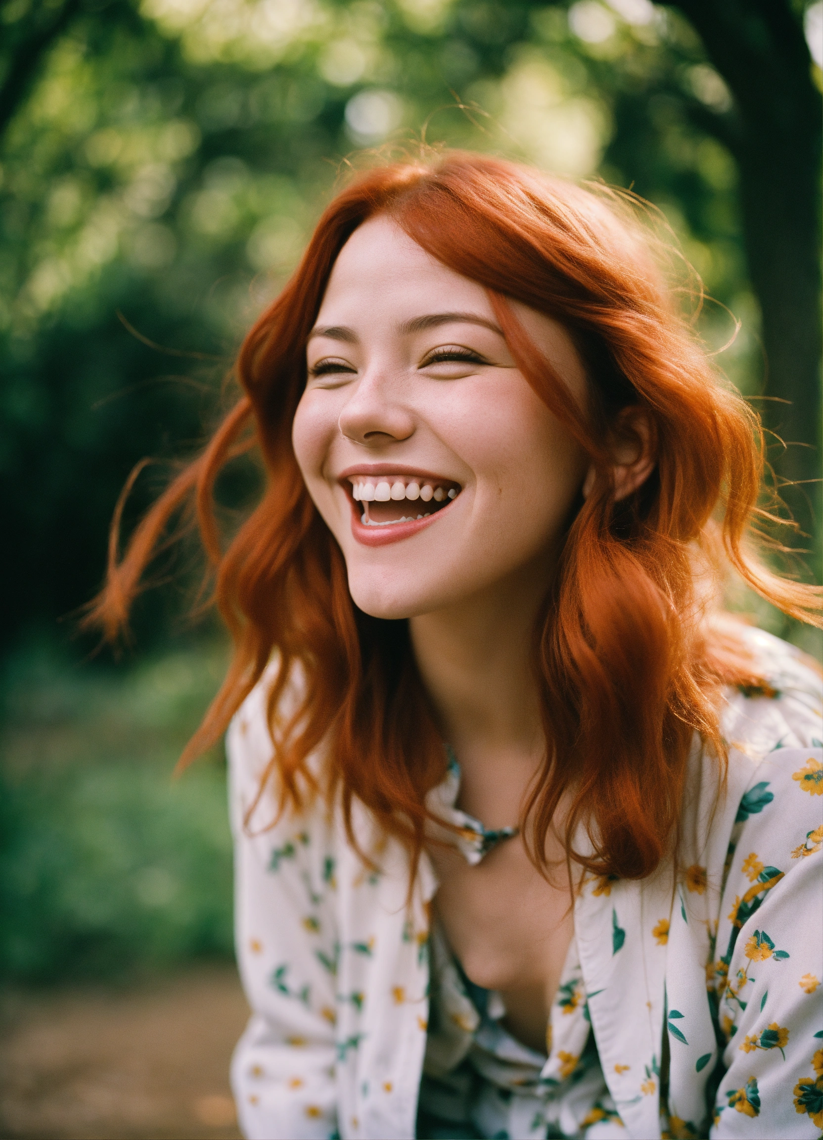 A girl laughing with red hair