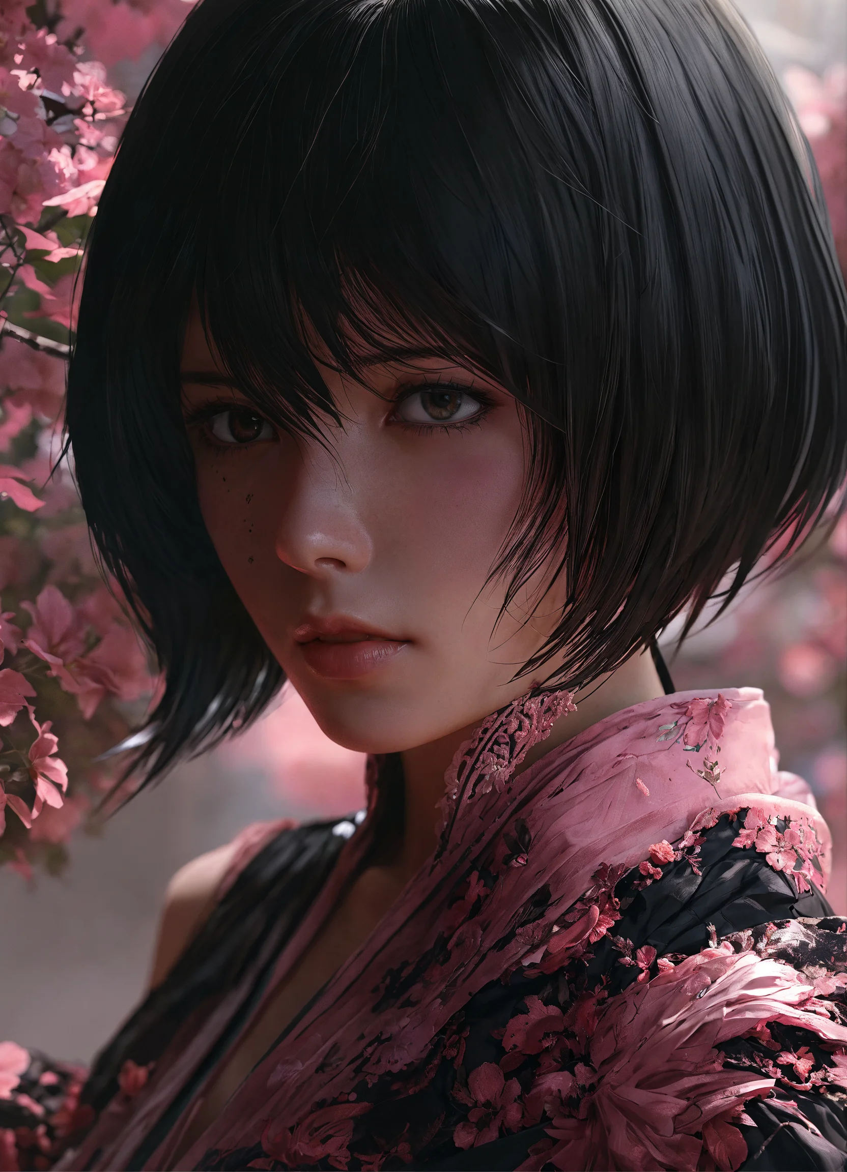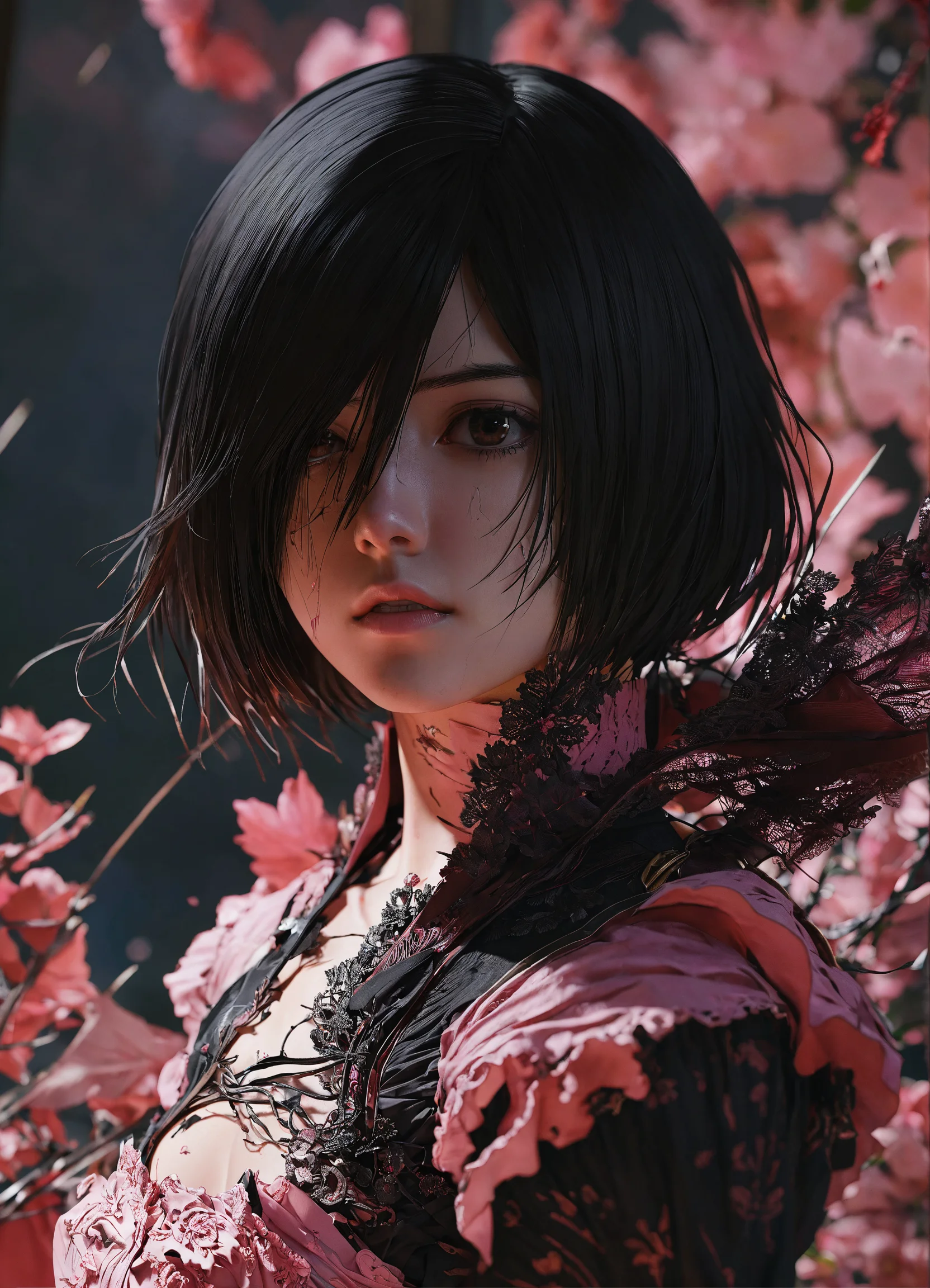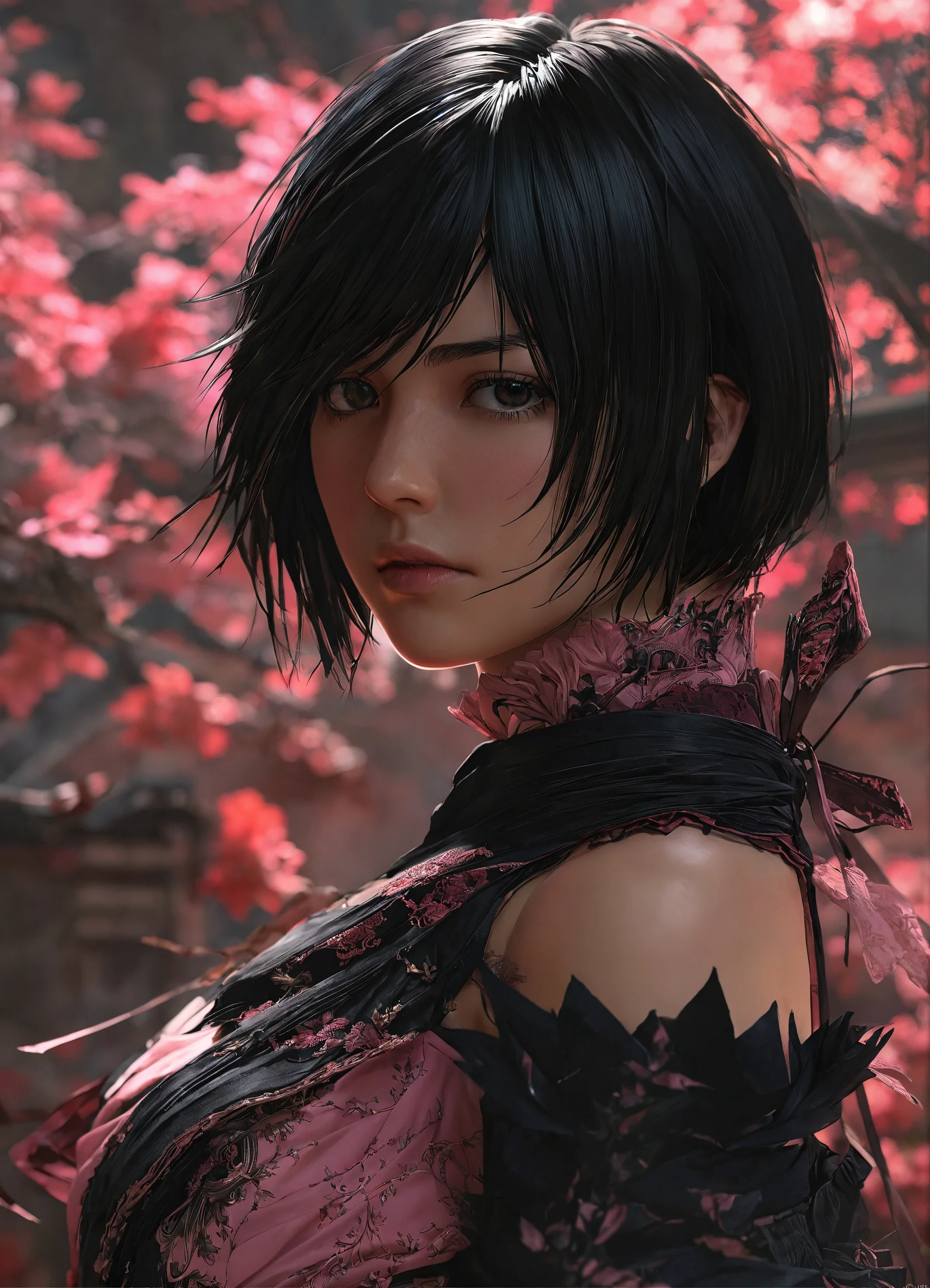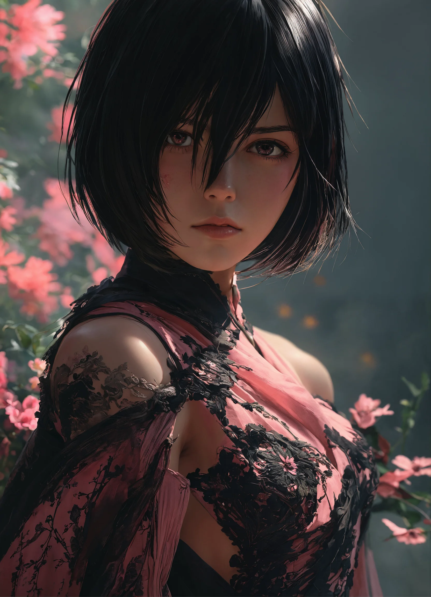 Anime artwork of mikasa ackerman in a detailed intricate pink and black dress, by wlop, 8k, beautiful details