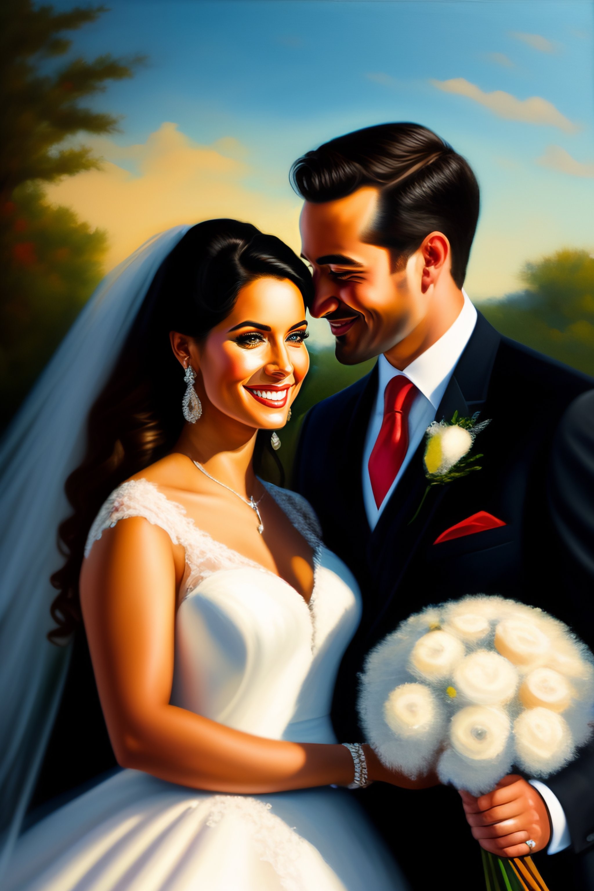 Oil painting of couple at their wedding