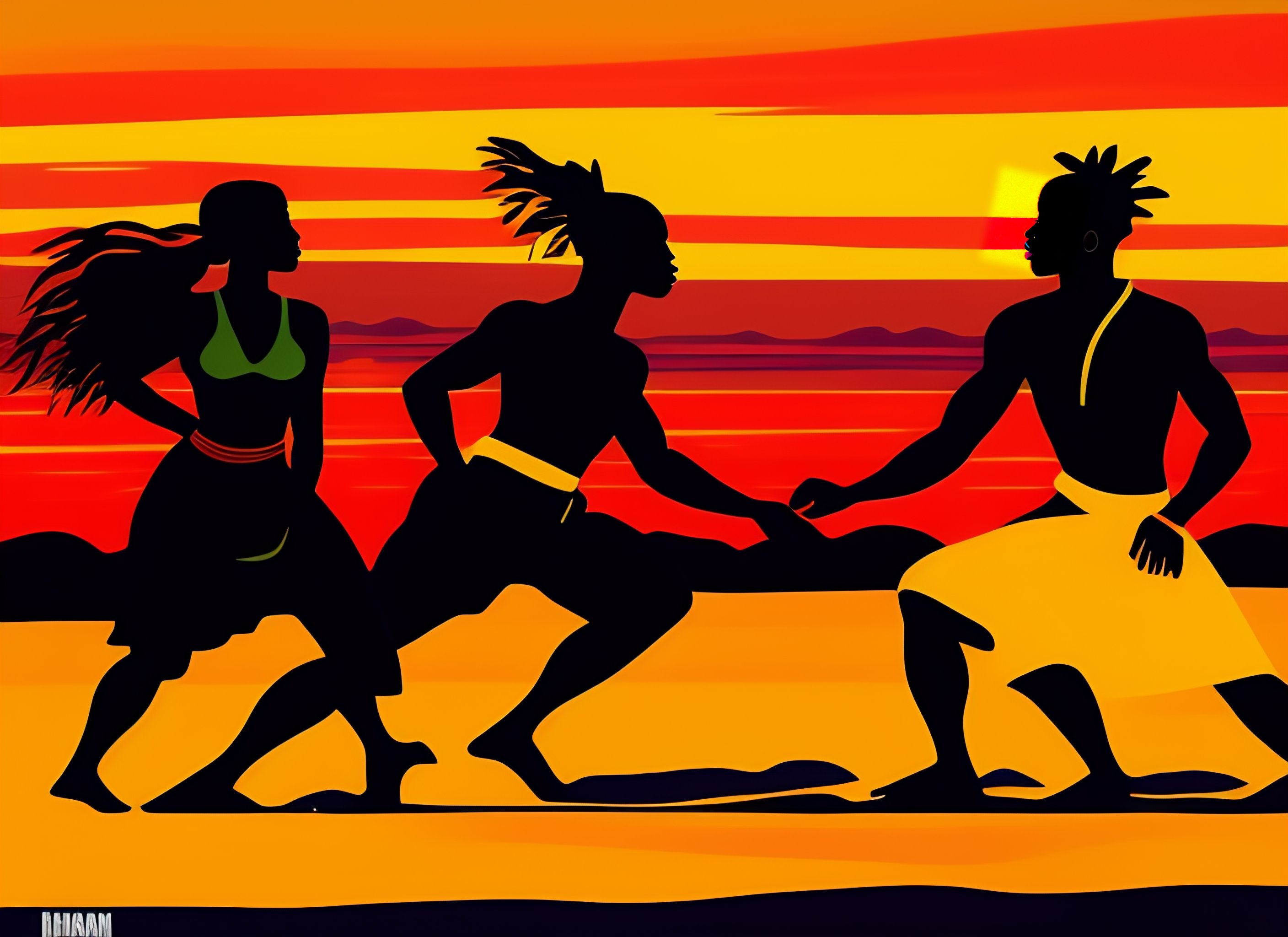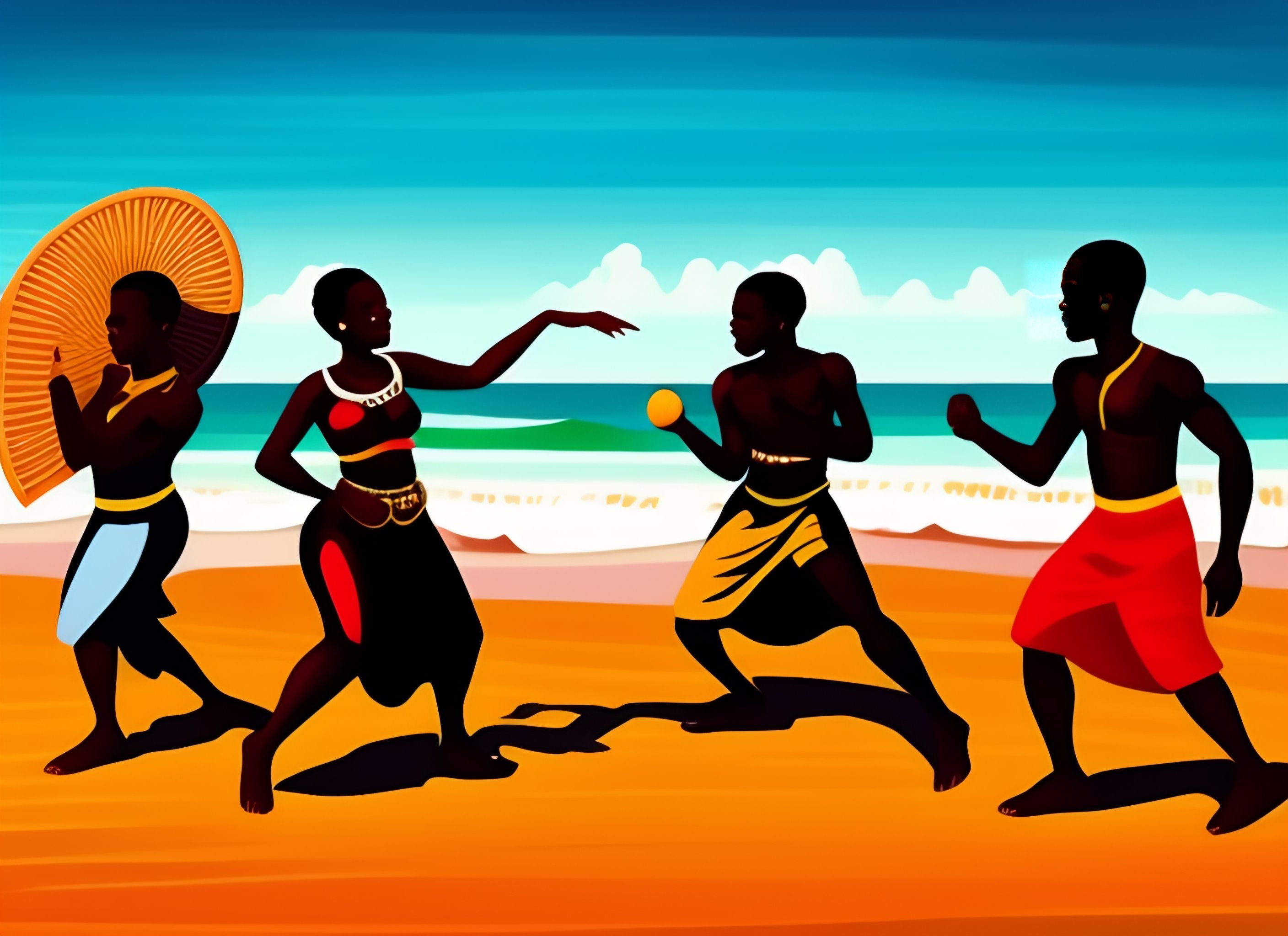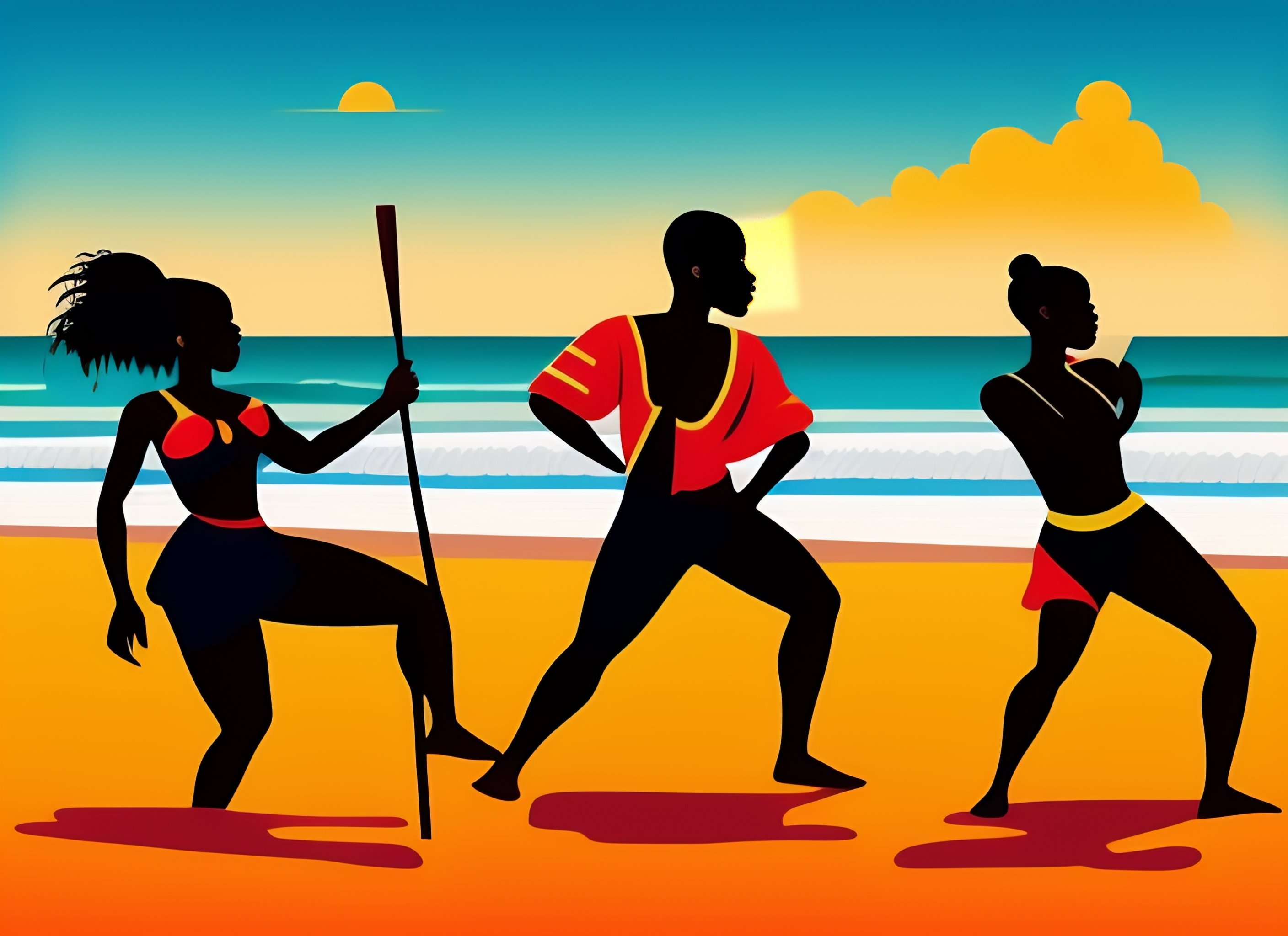 3 african dancing at a beach and play africain music