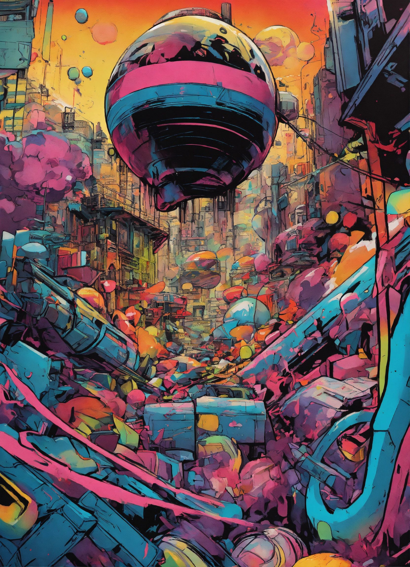 Abstract graffiti tag brush comic art, comic book cover art, photorealistic ink art, techno sci fi, maximalist surrealism