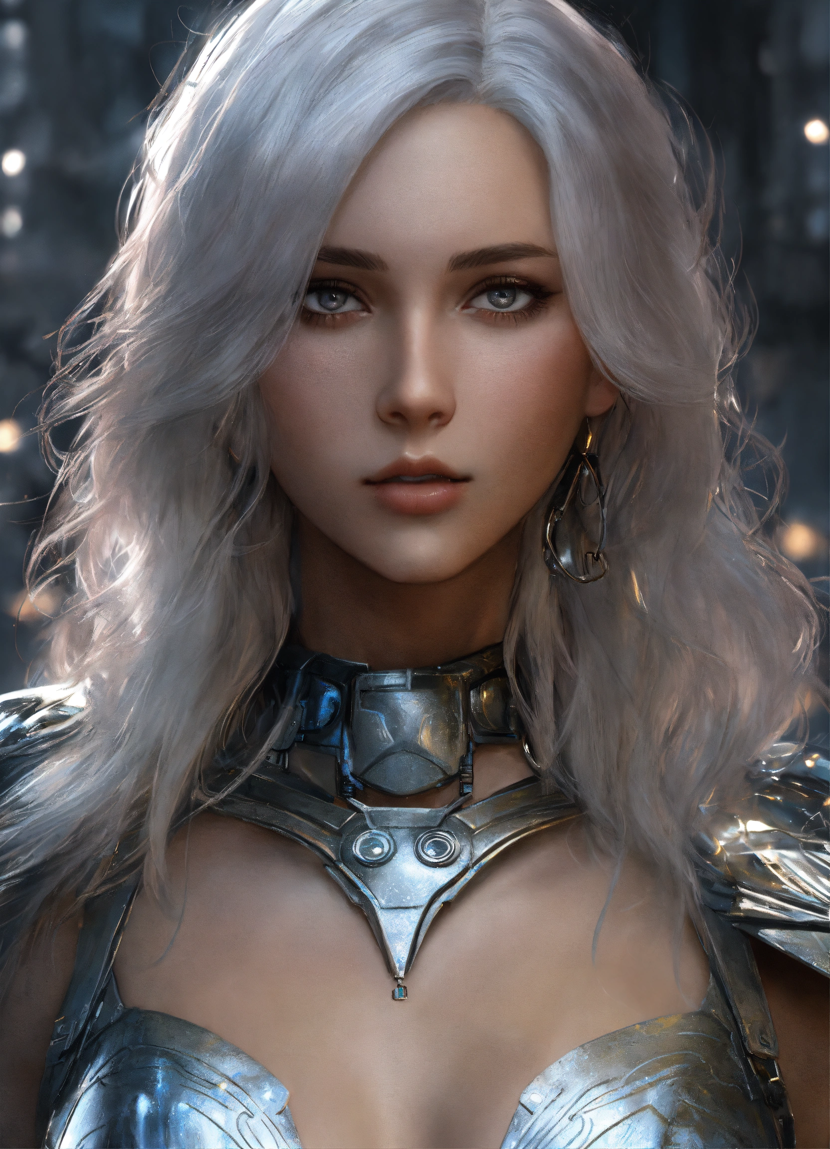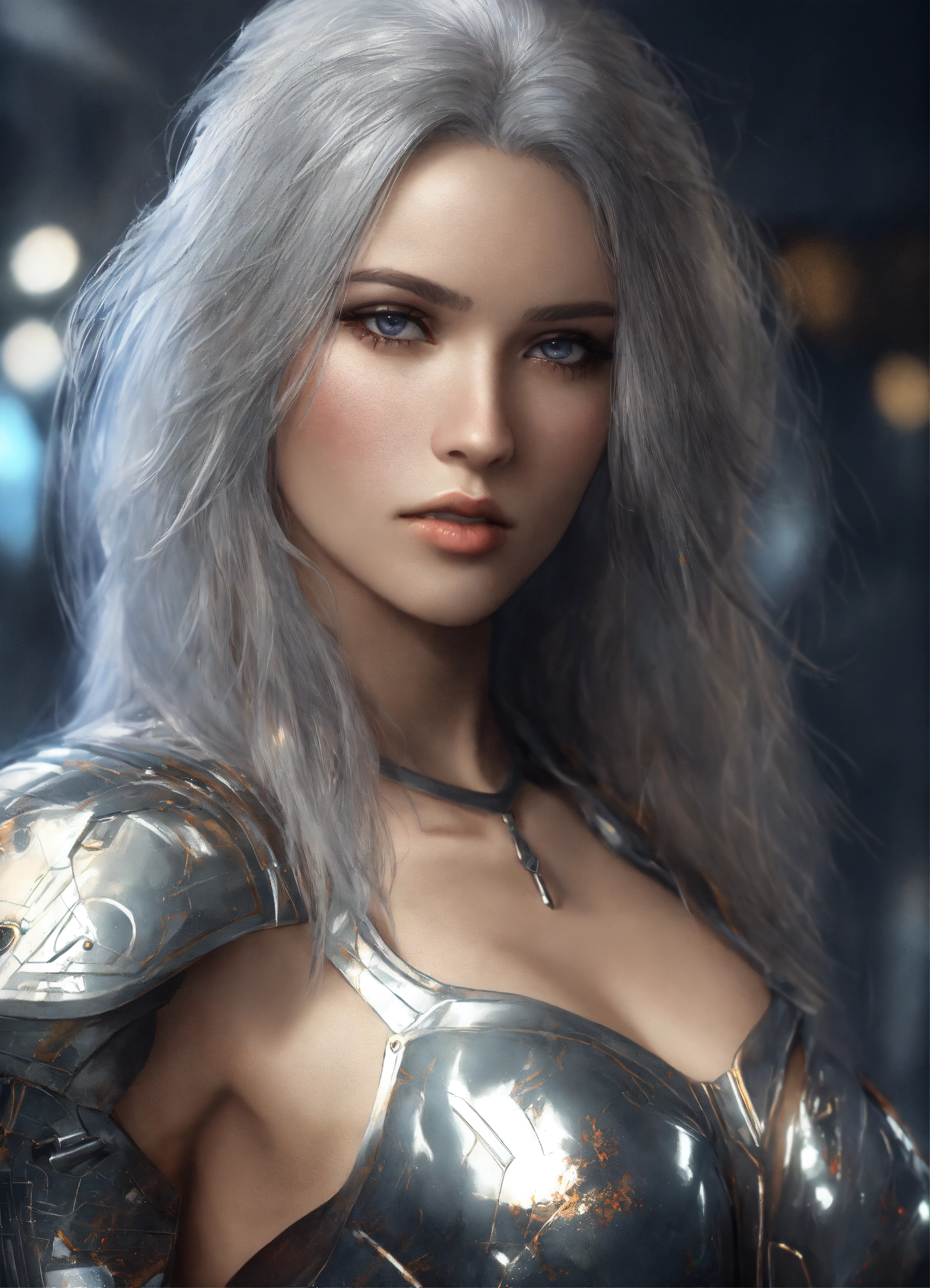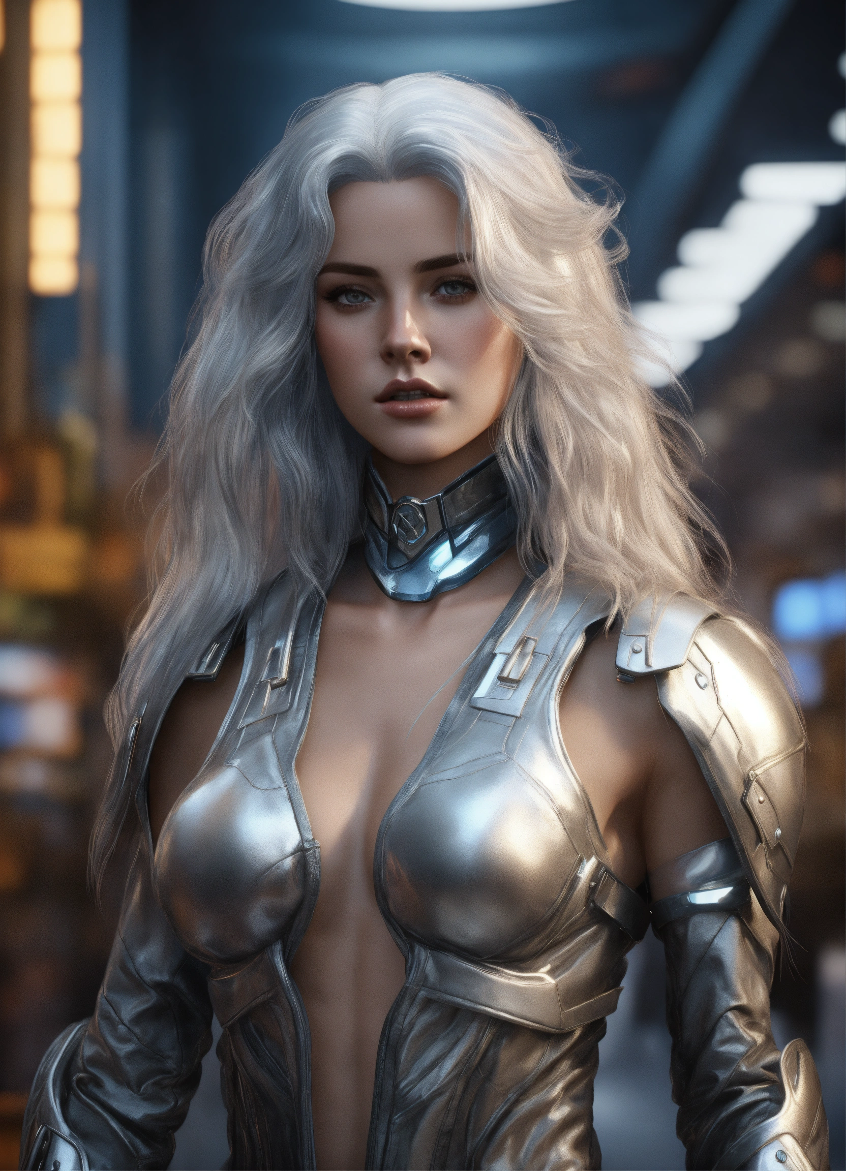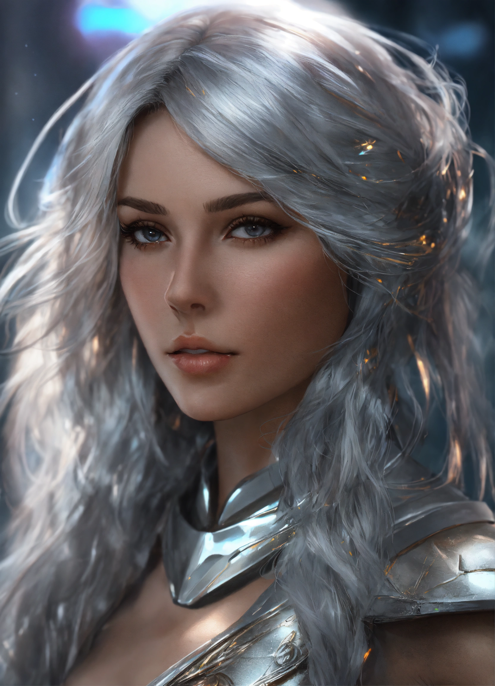 Silver-haired, long hair, female, futuristic, hermaphrodite, rutkowski, rackham, detailed, illustration, hyperrealism, unreal engine, rosetti, waterhouse, volumetric lighting