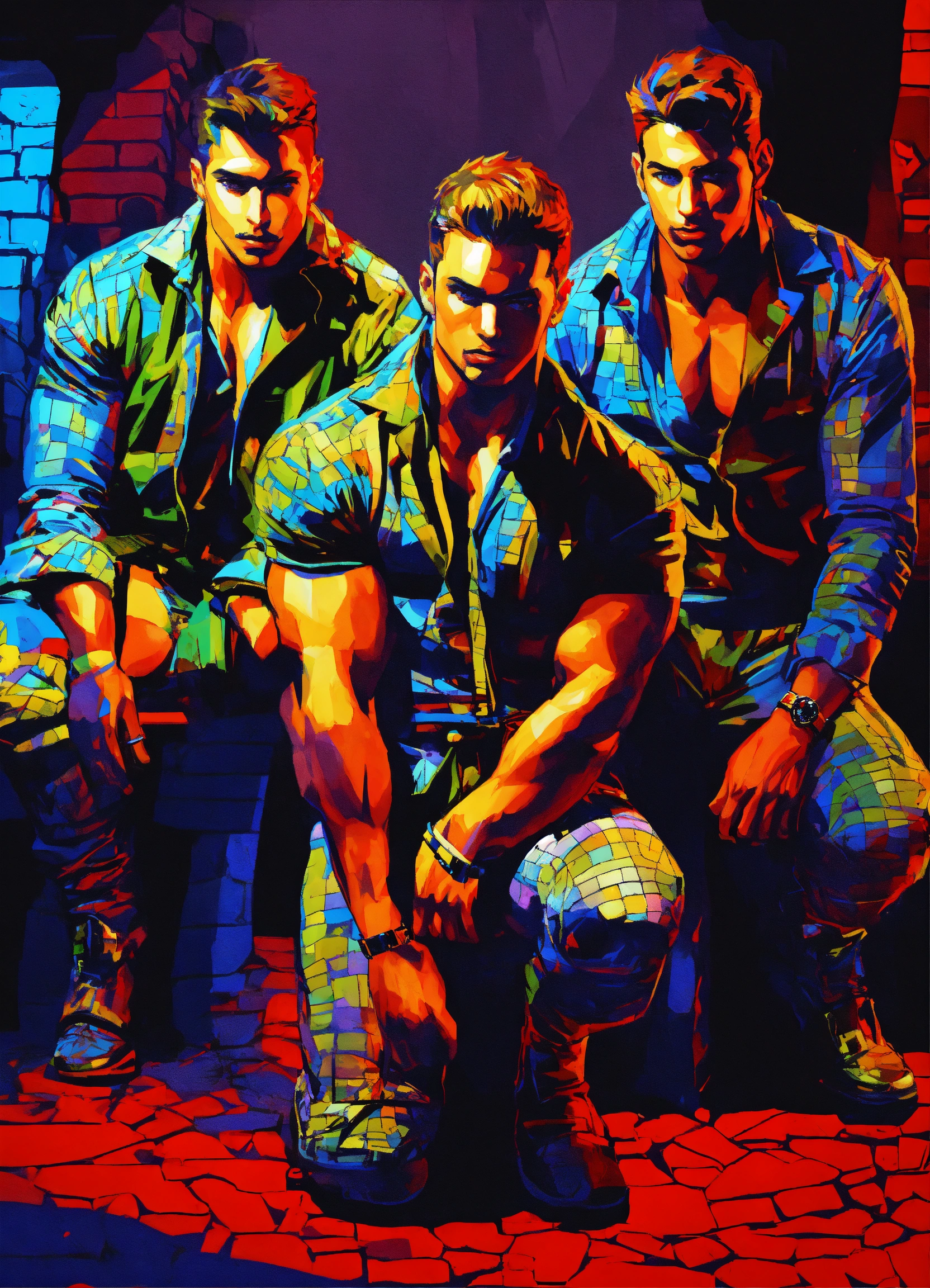 3 hot male hunks on knees