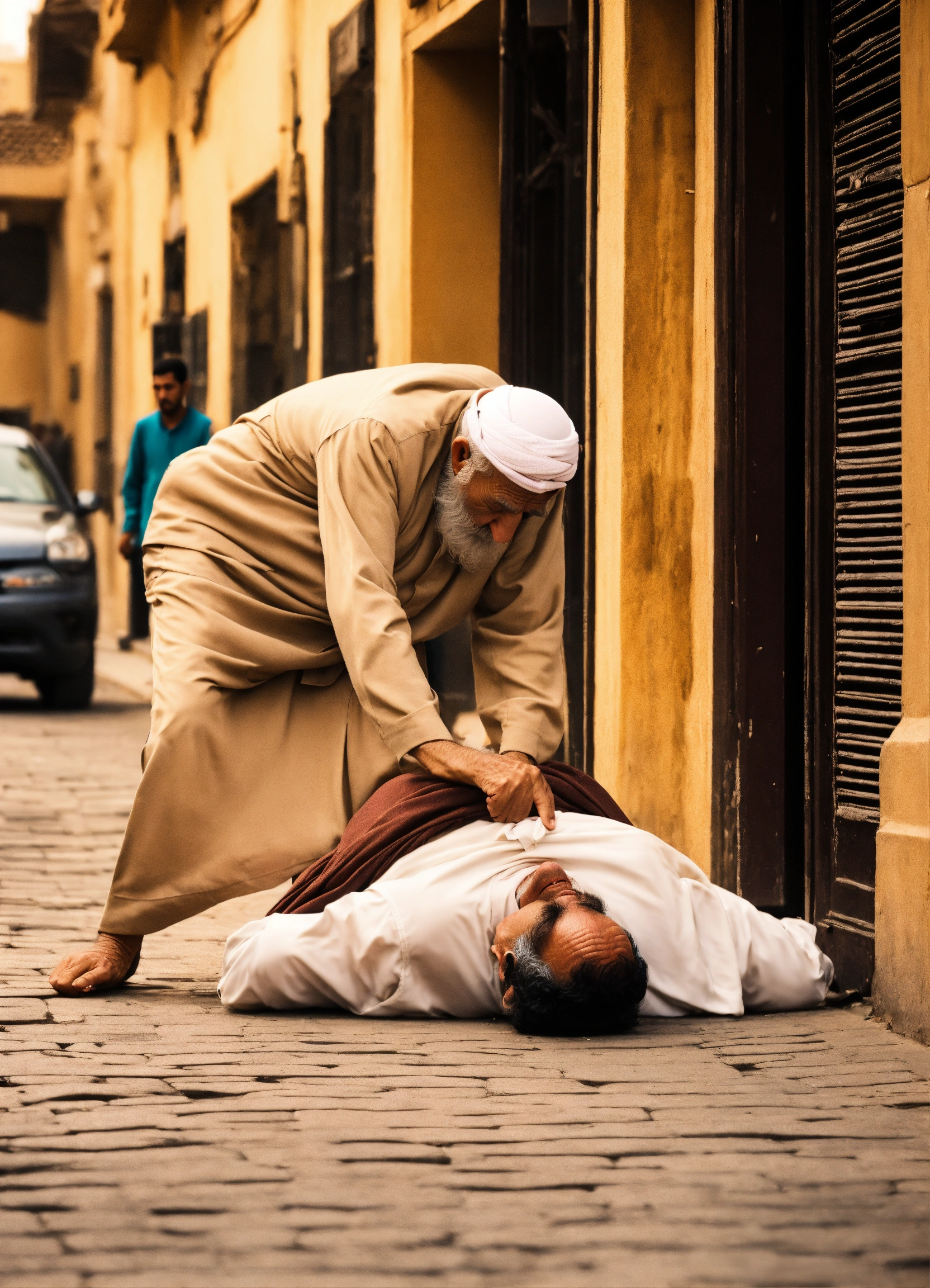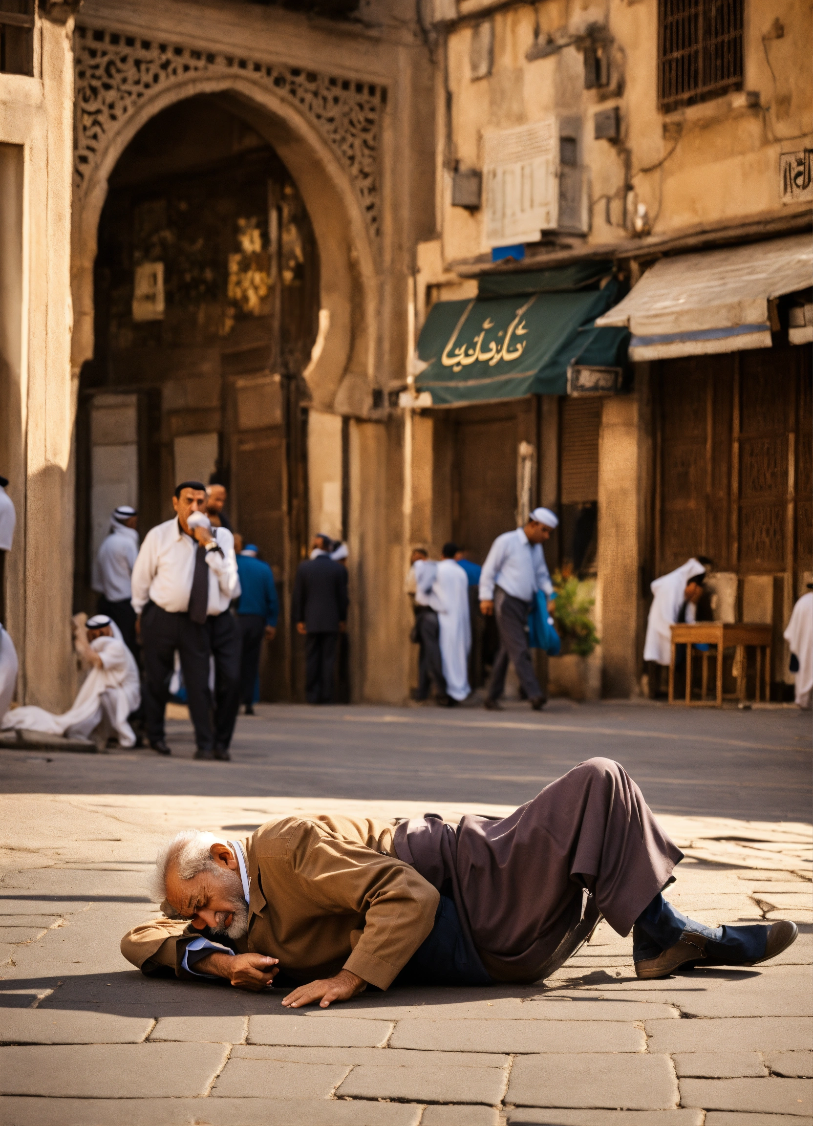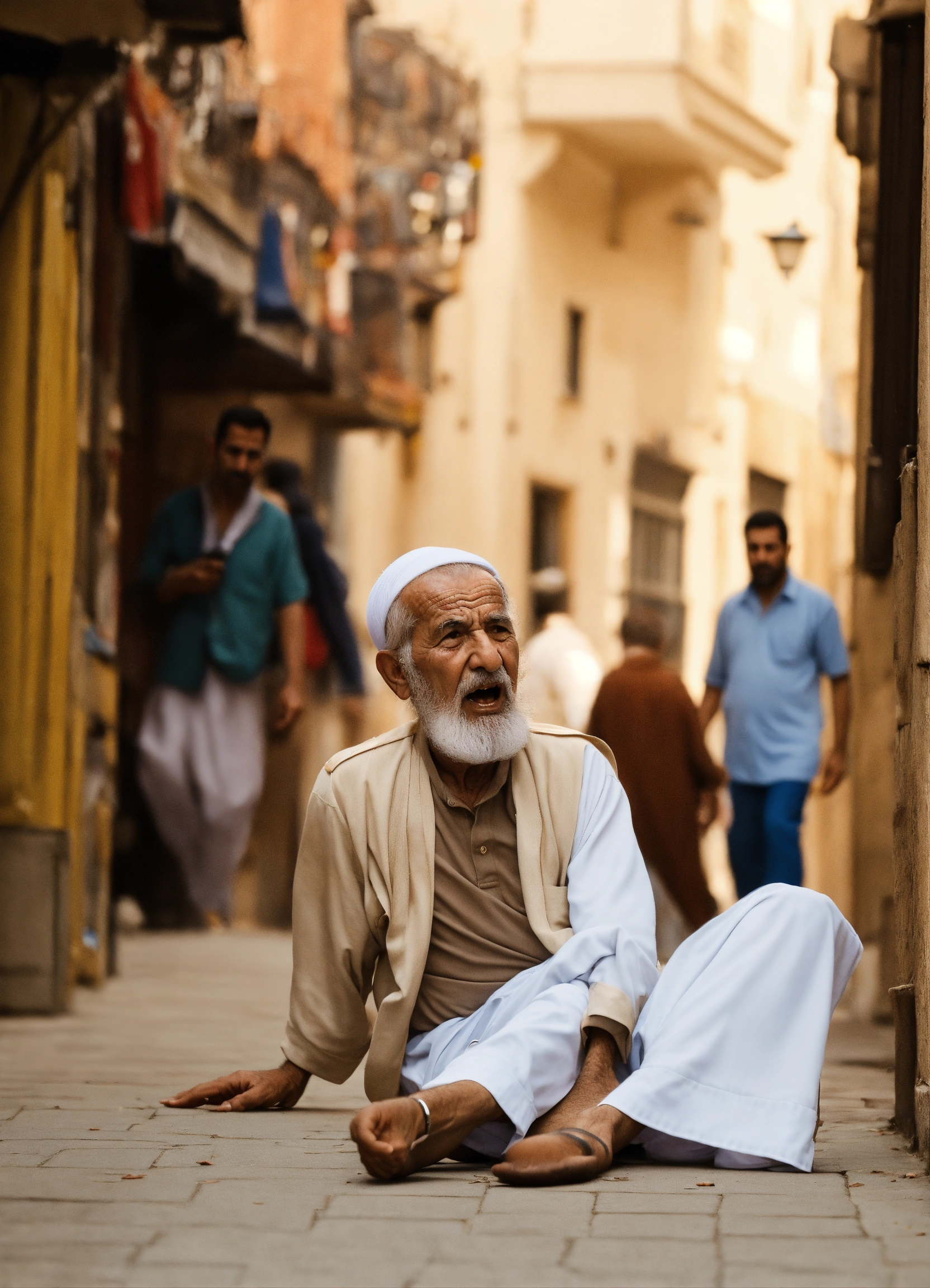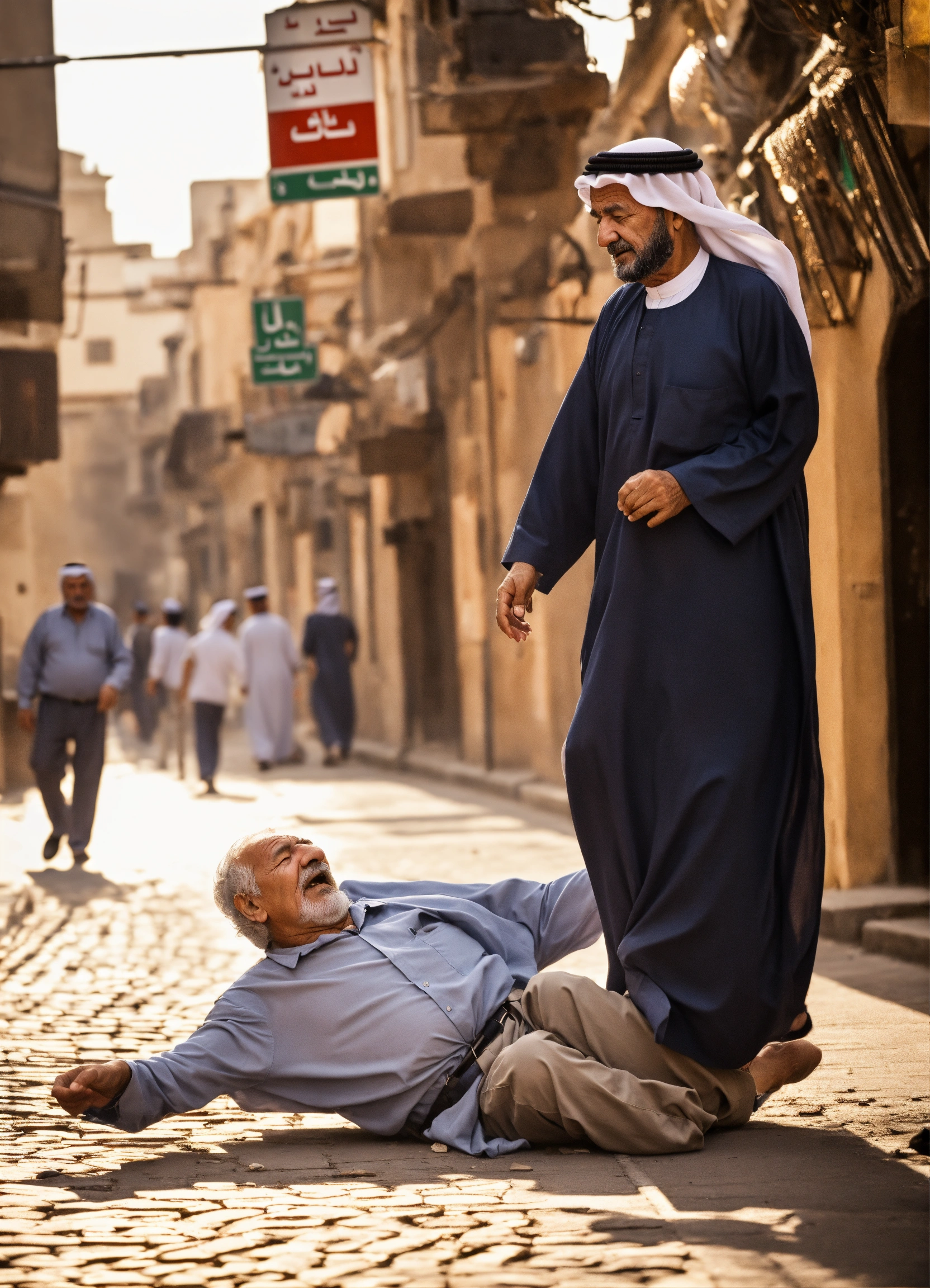 Arabic old man falls on his face in street