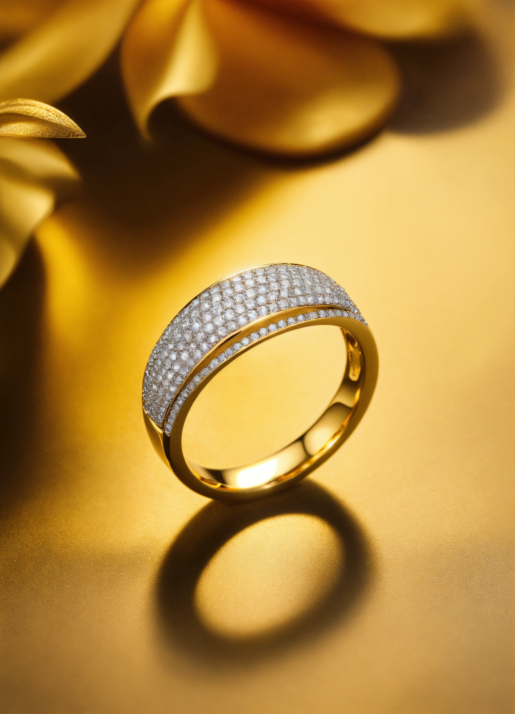 Jewellery design, modern style, create diamond gold ring with matte finish in pave setting, no diamond, a gift to my beloved, light, thin band, designed for woman, default-theme, --product-view --ultra-quality