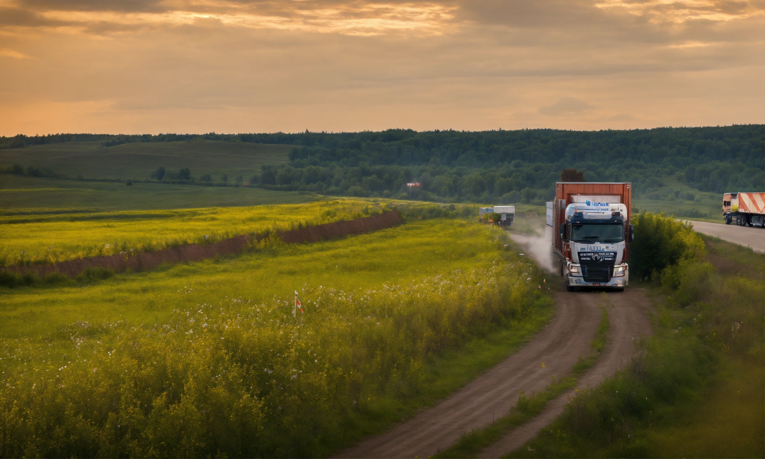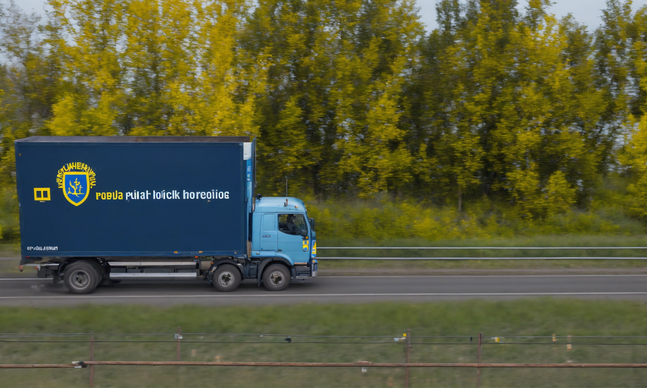 Gain truck from ukraine is running to the border check point, please put border check point on the left side of the image, horizontal image