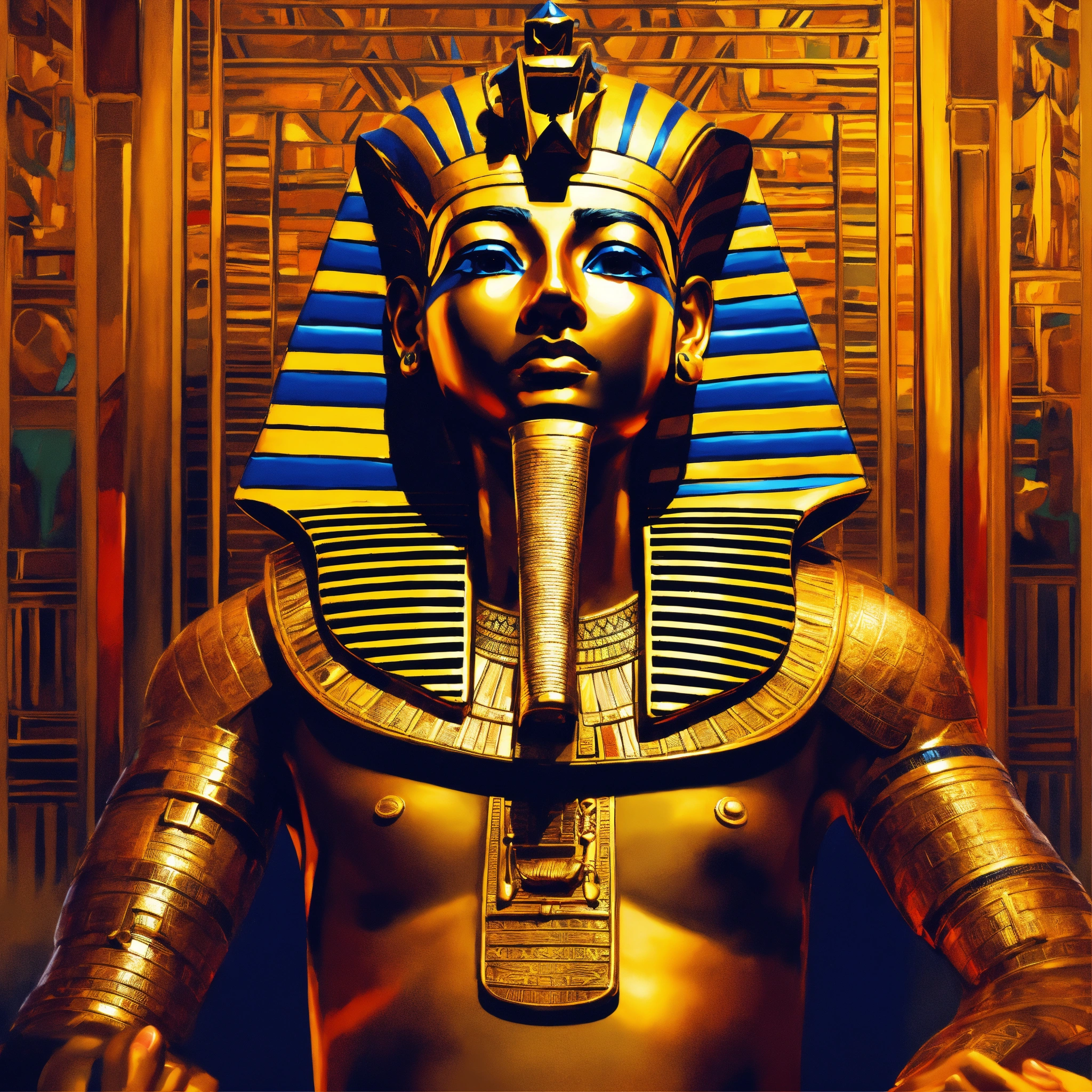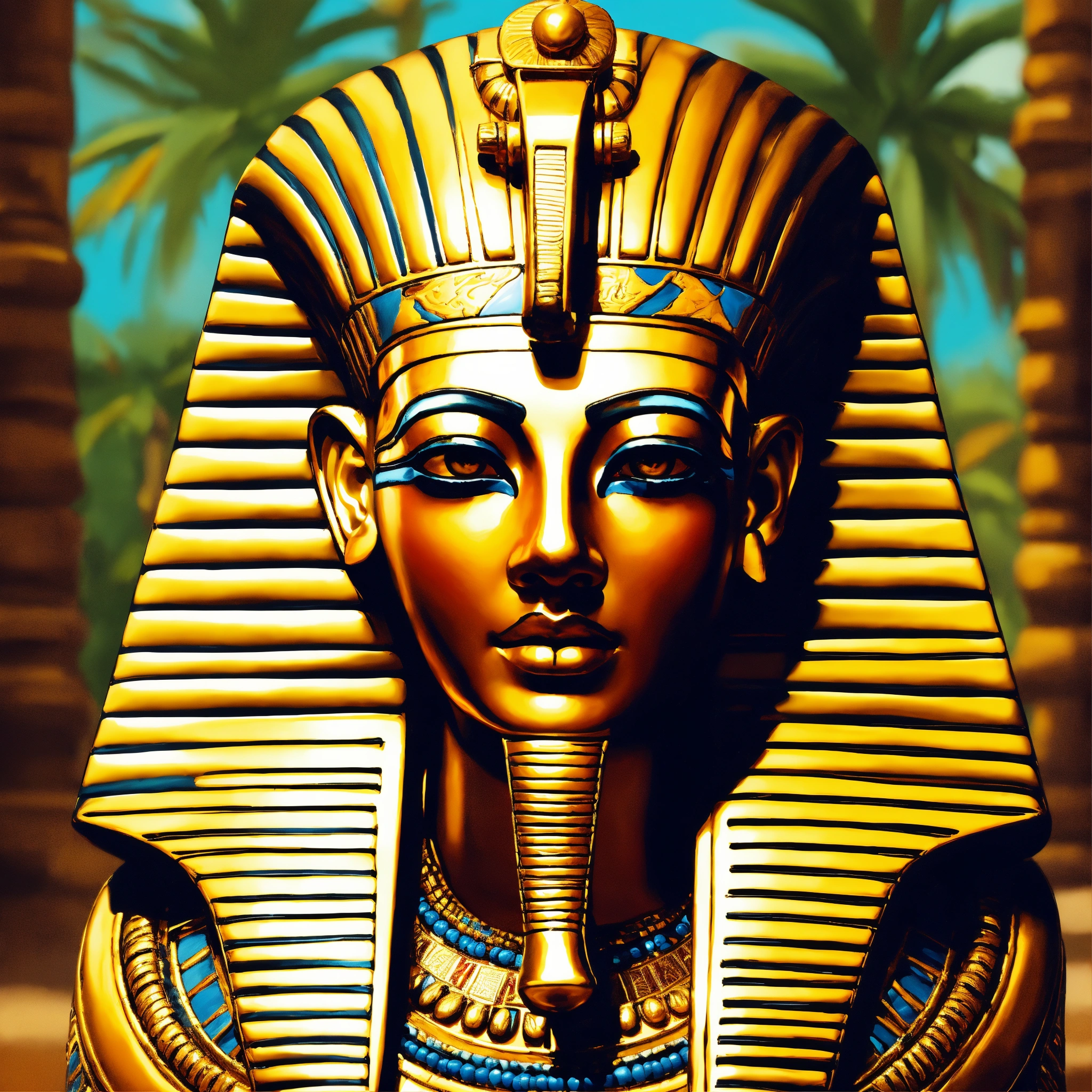 King tutankhamun, cartoon oil paint, 2d illustration style, sharp focus, bright color, digital paint character design, trending on artstation, high details, simple lines, art by greg rutkowski, josé luis ágreda, camilla d'errico and artgem