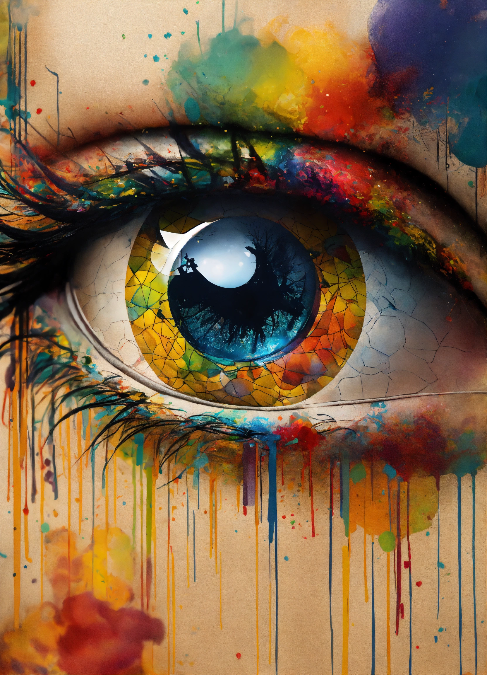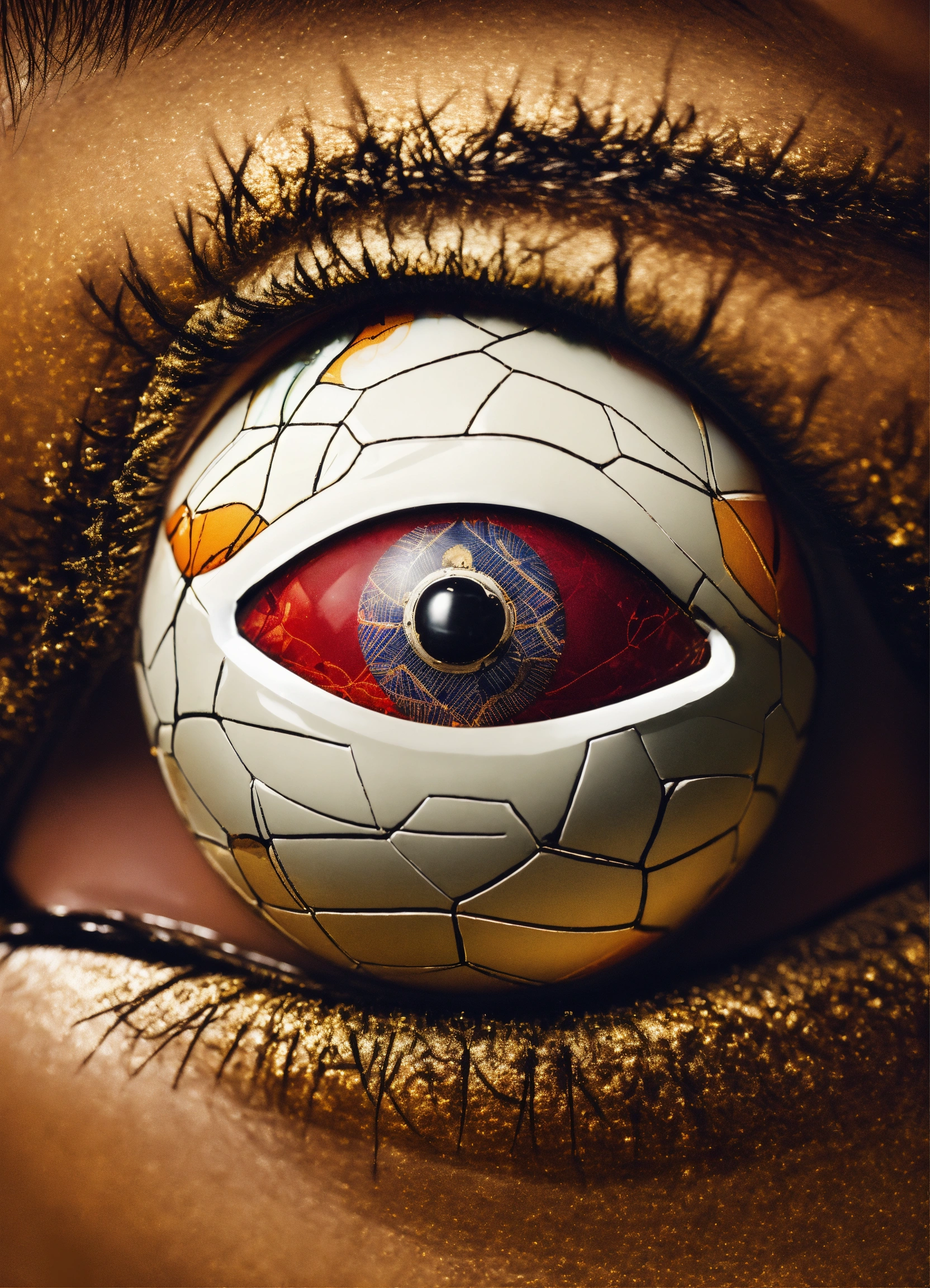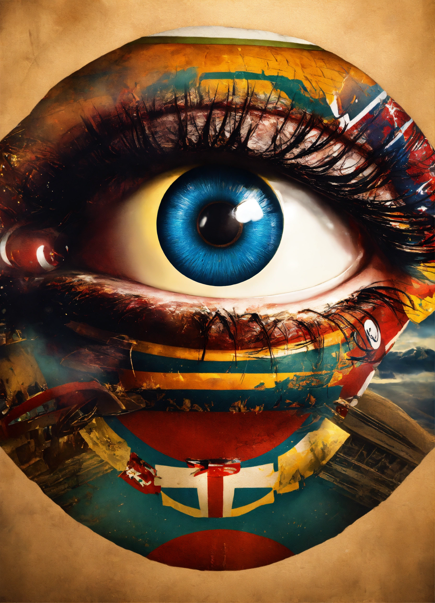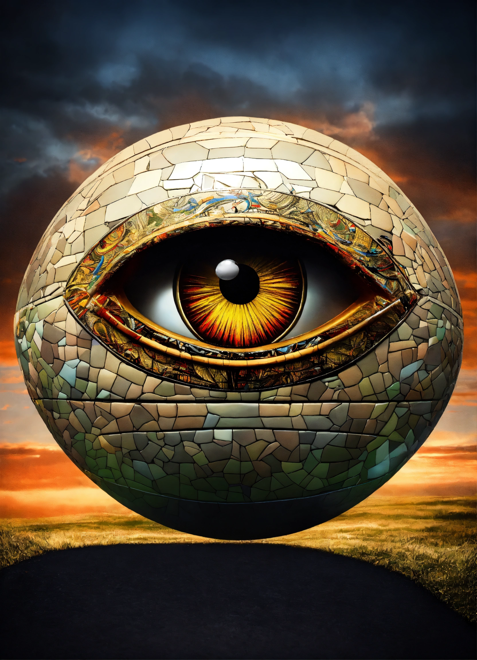 Grand oeil avec ballon de rugby dedans sur fond étoilé art numérique