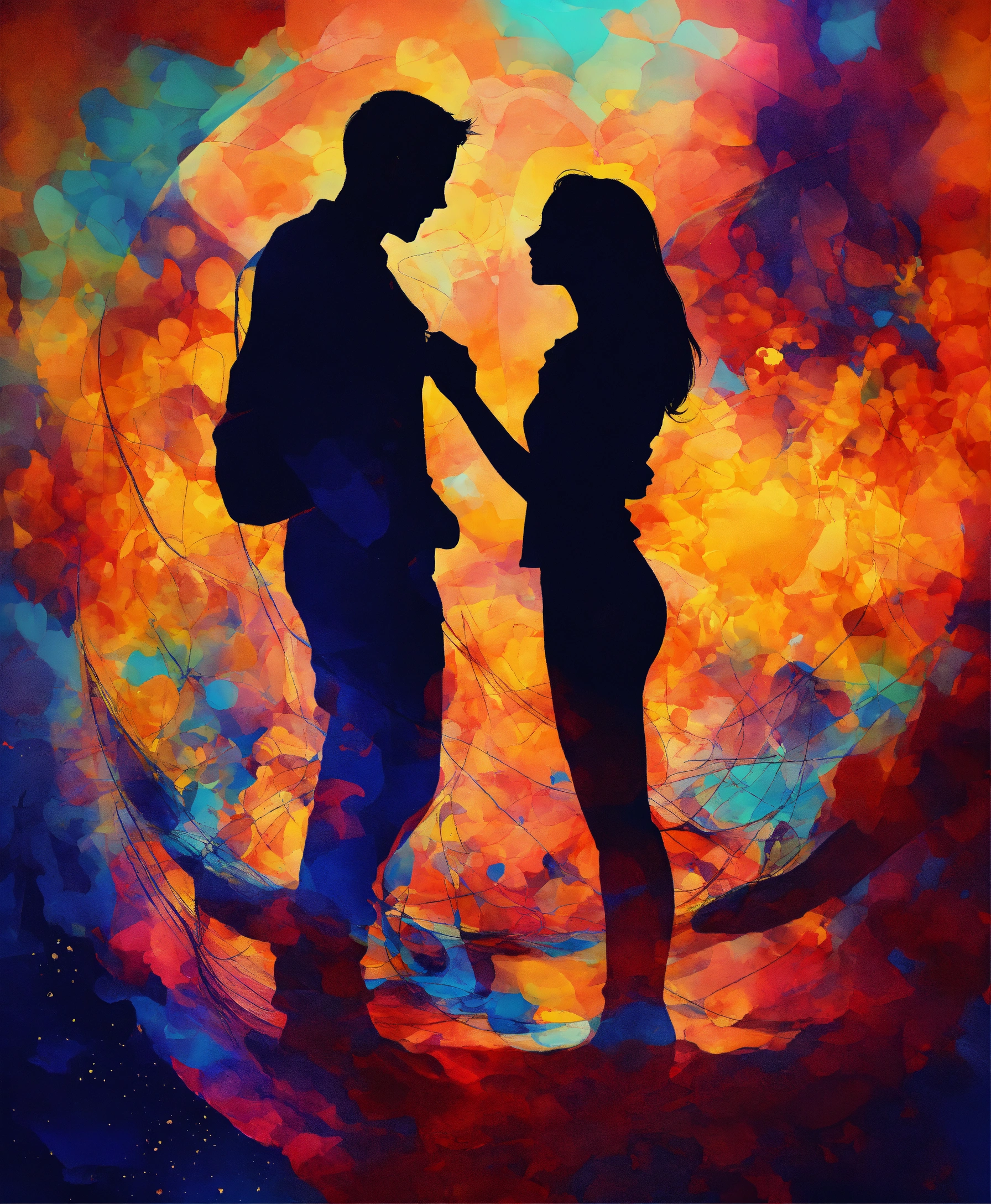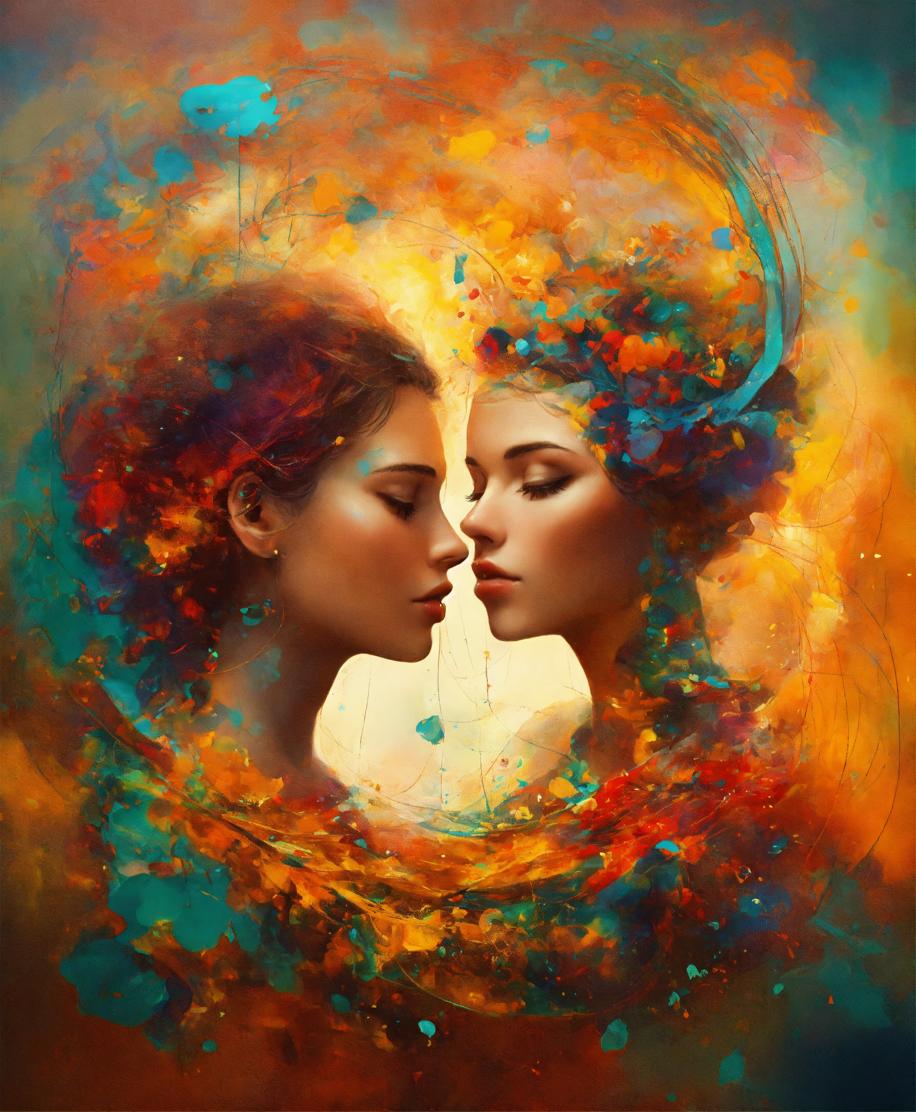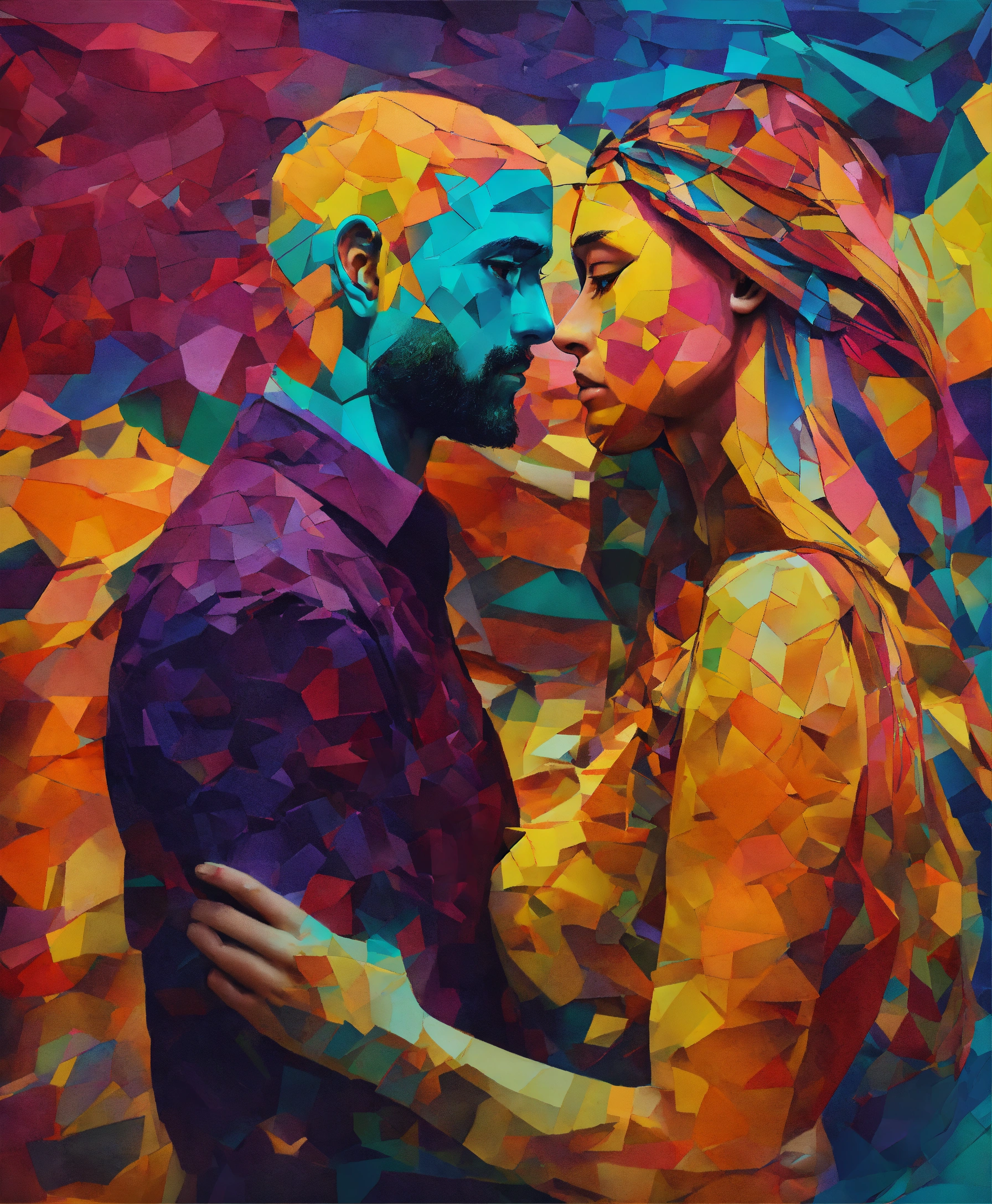 Crea una imagen abstracta de una pareja besandose