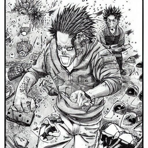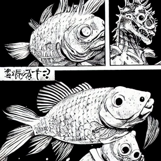 Goldfish manga drawn in the style of dorohedoro by q hayashida