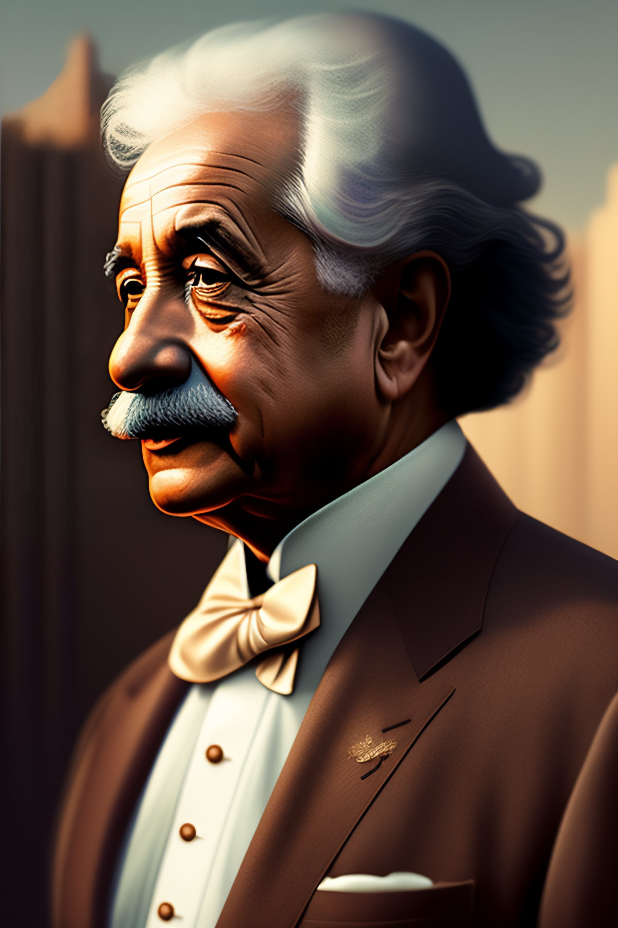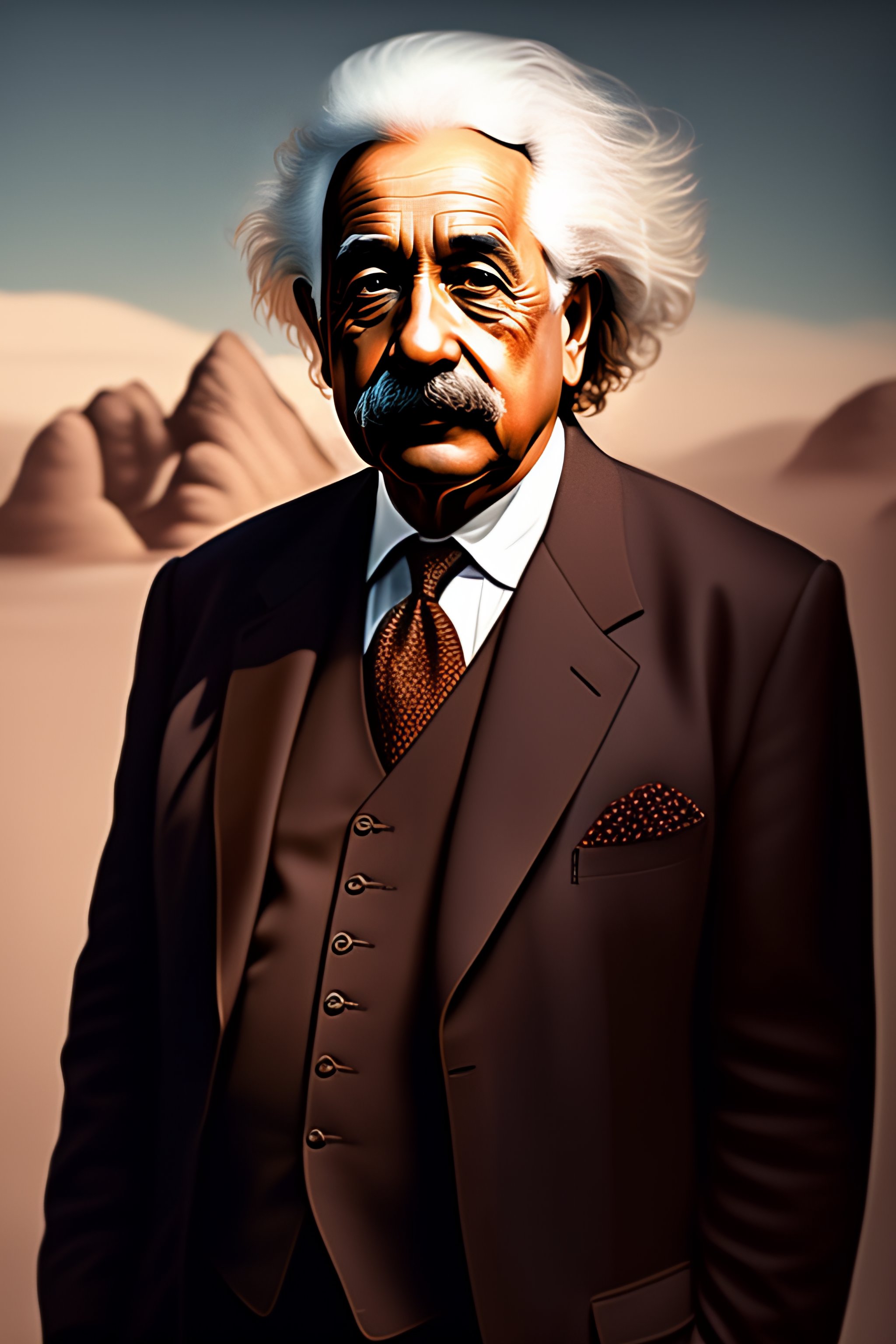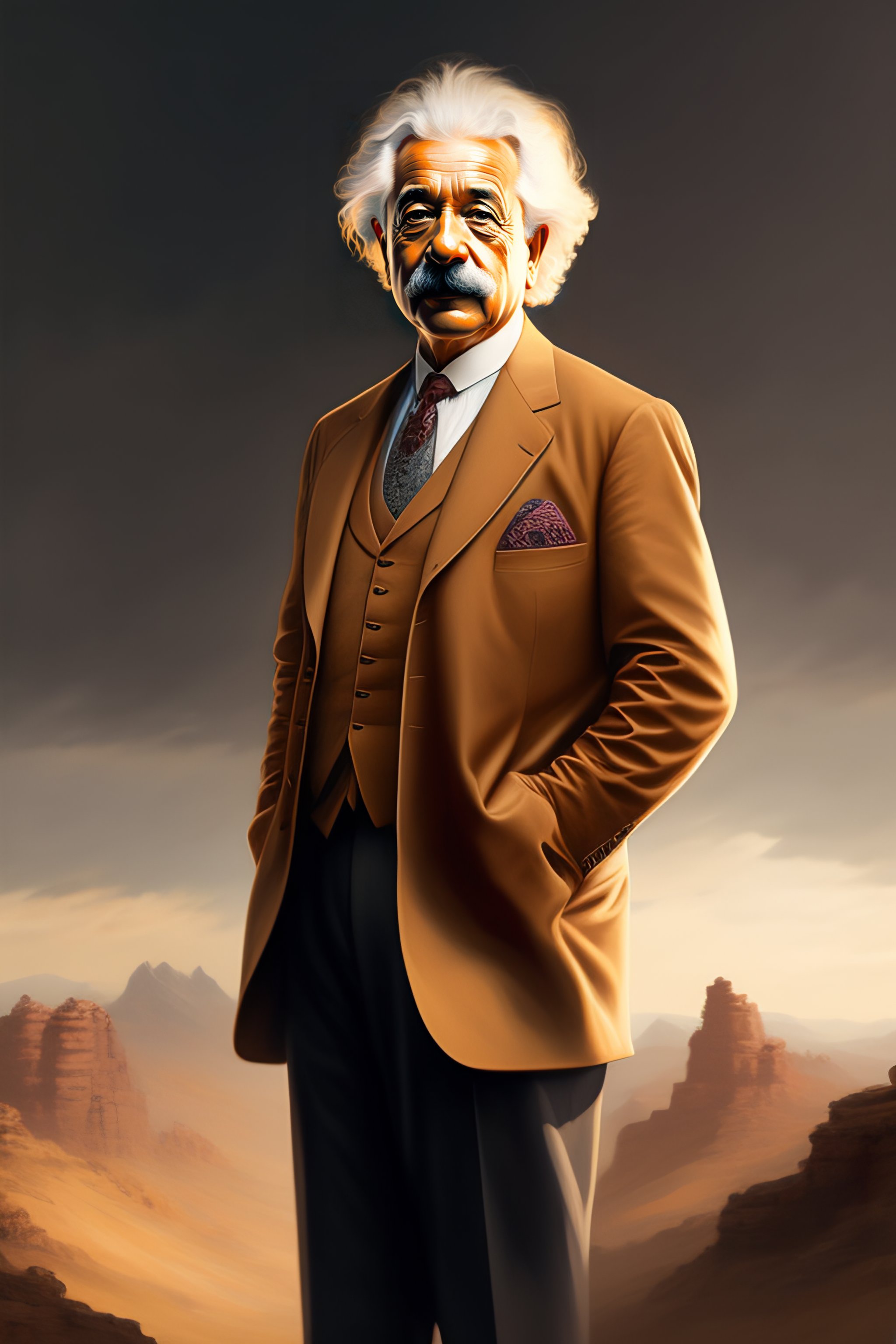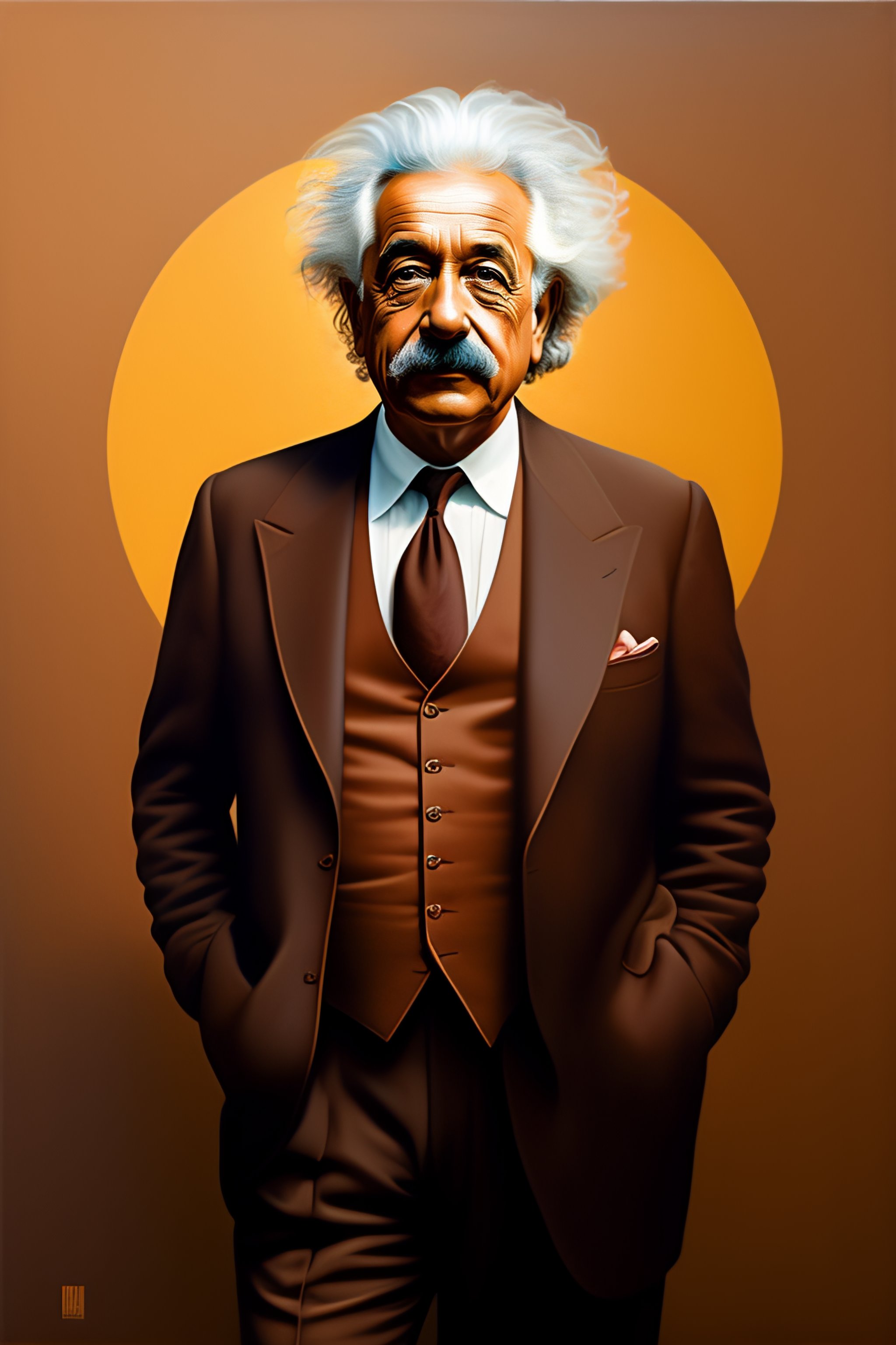 Albert einstein in a brown suit, medium shot, asymmetrical, profile picture, organic painting, sunny day, matte painting, bold shapes, hard edges, street art, trending on artstation, by huang guangjian and gil elvgren and sachin teng, high quality, 8k
