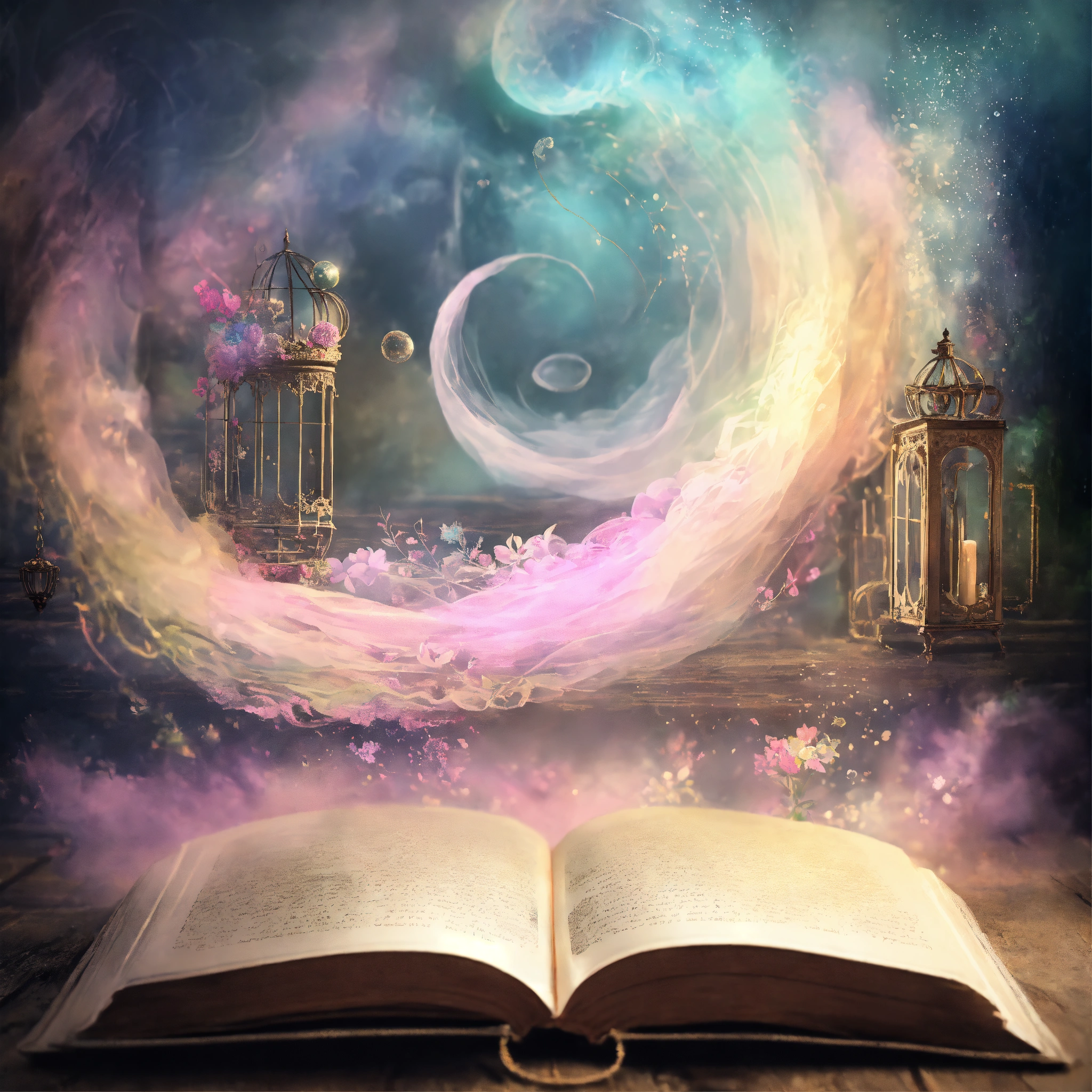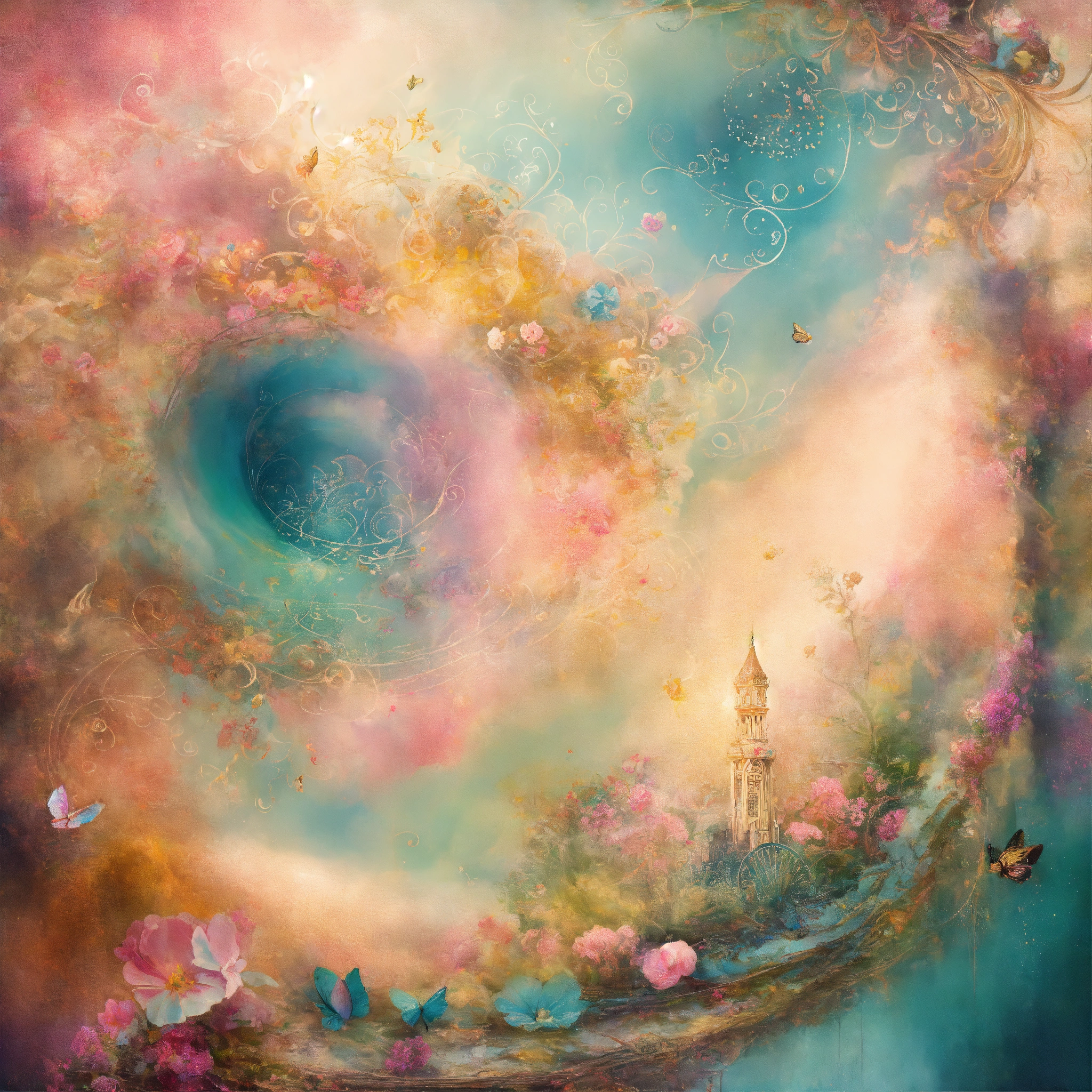 Shabby chic dreamy mist pastel junk journals the universal thoughts to the new world behind the veil swirling magical fairytale abstract art style
