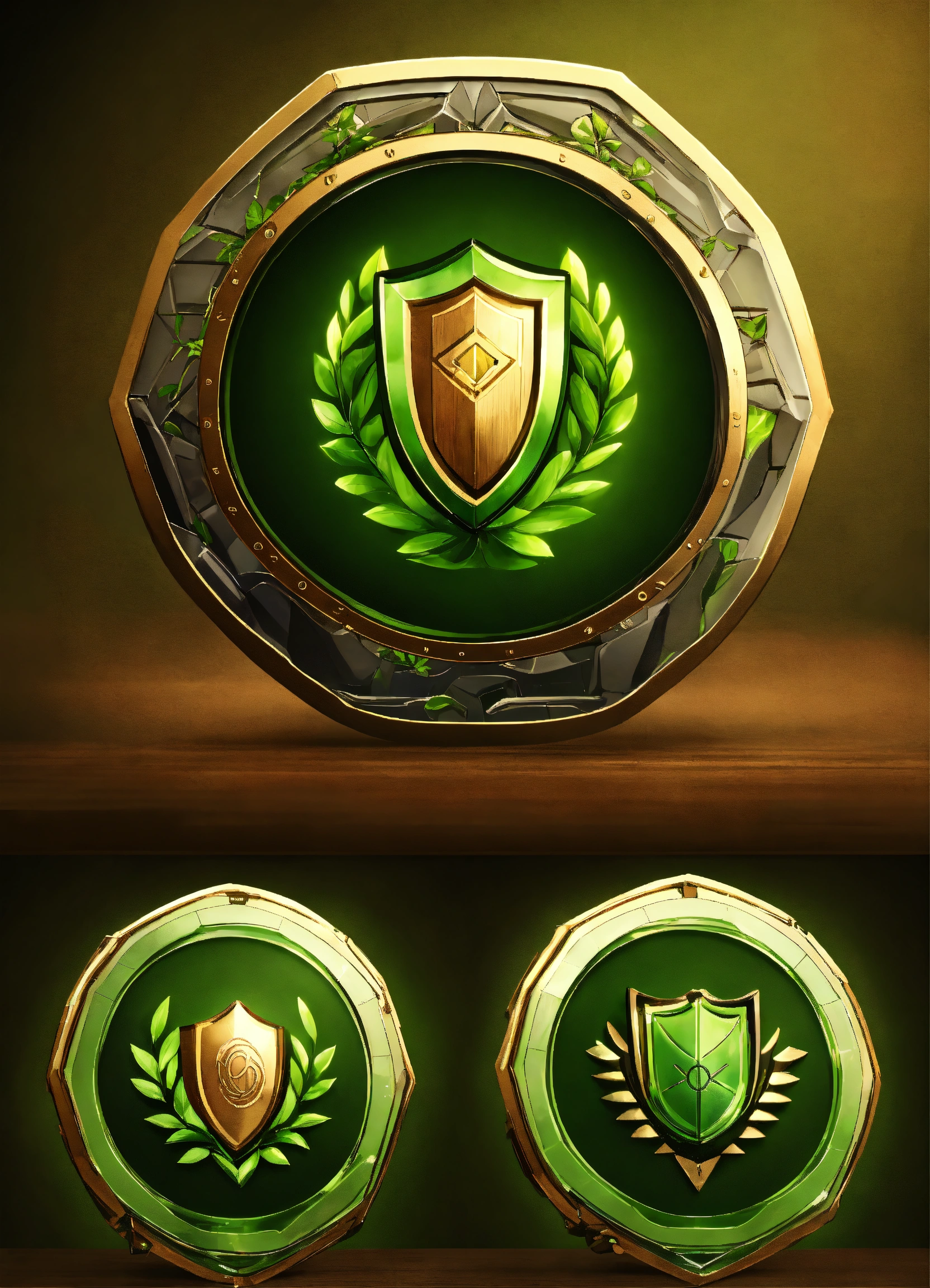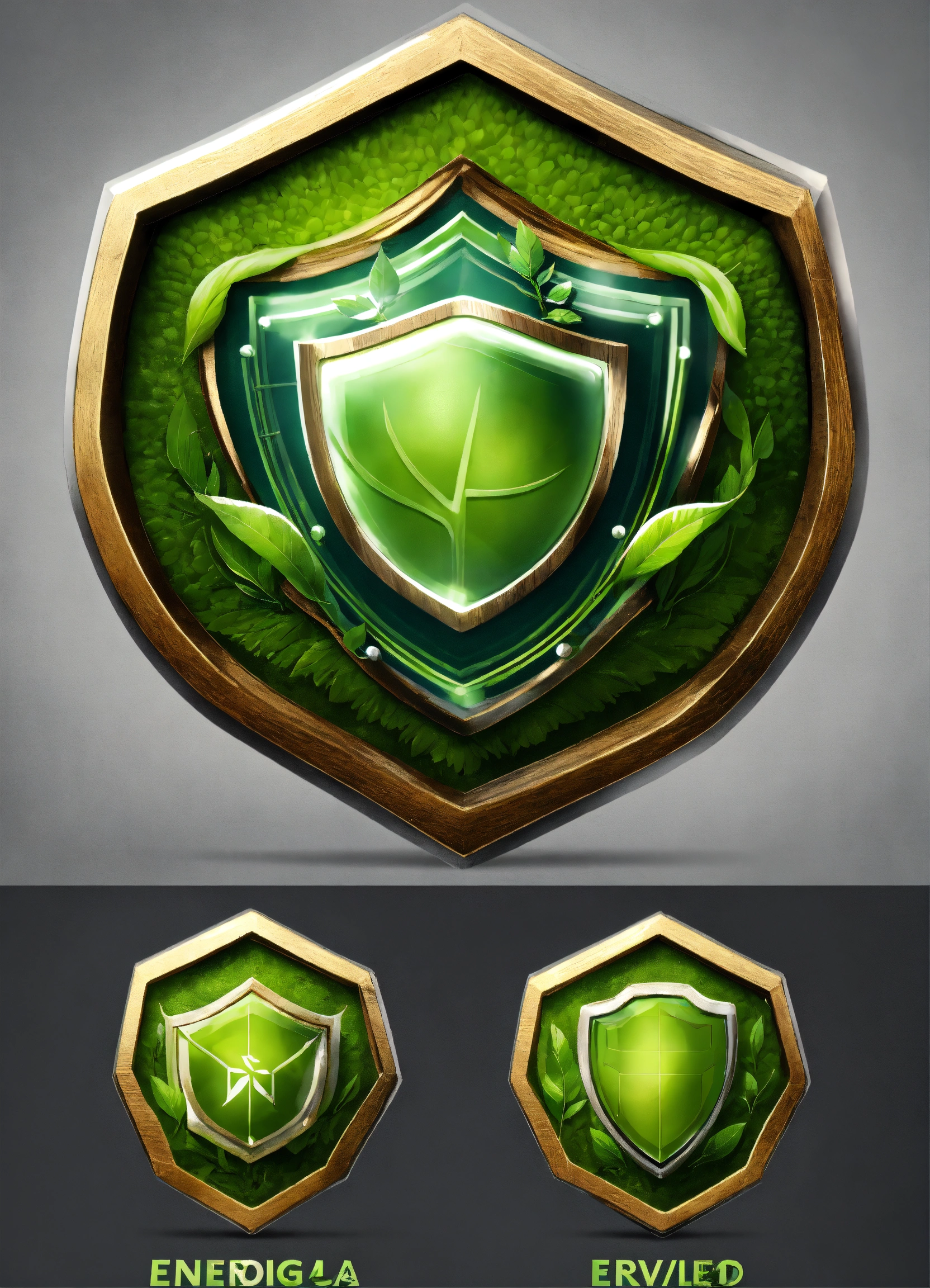 Logo, shield, armor, ecología, icon, energia renovable, organico, vegetales, shield round, hexagon, circle, coinlogo, elegant, highly detailed, futuristic