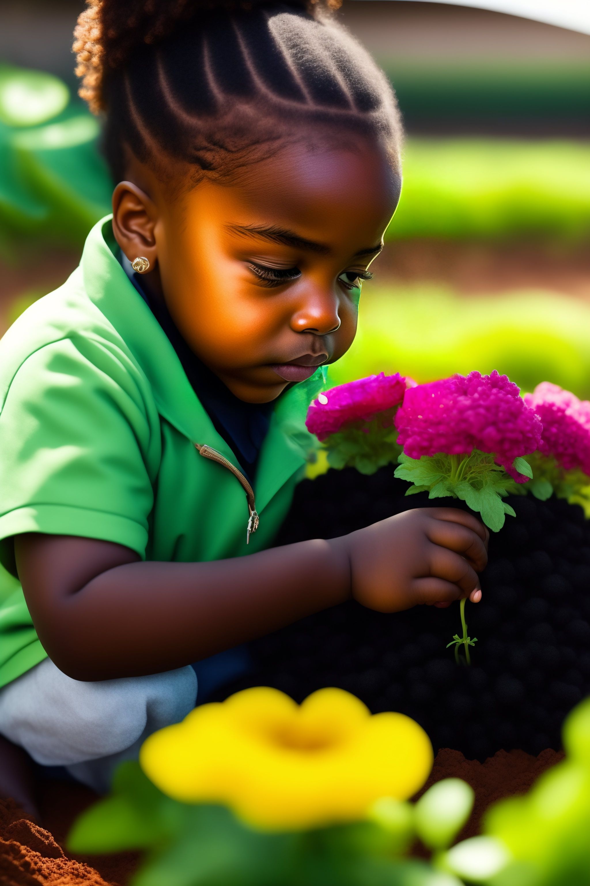 A black girl planting a seed and then germinates