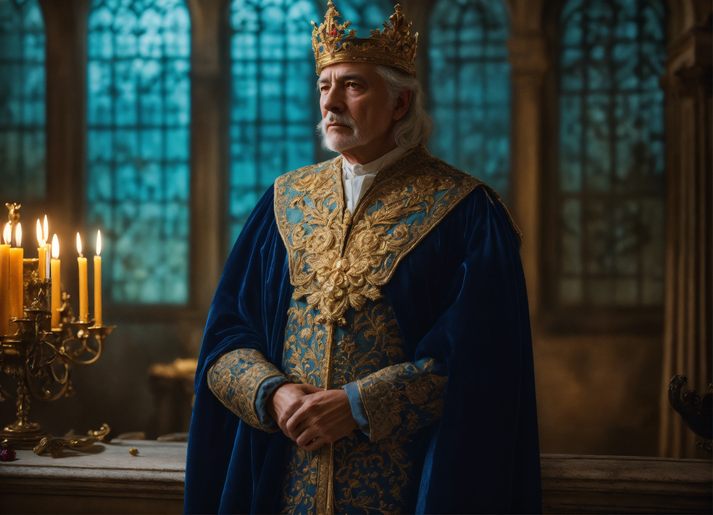 Kodak portra 400, 8k, soft light, volumetric lighting, highly detailed, fine art portrait photography, medieval setting, 68 years old male baron, slim build, narrow face, pale, complex 3d render, 150 mm lens, elegant noble medieval clothing, crown of a baron, kind appereance, front view, full body portrait, intricate details, elegant, hyper realistic, ultra detailed, octane render, etheric, outworldly colours, emotionally evoking, fantasy, ornamental, intricate, elegant, 8k, soft light, volumetric lighting, highly detailed, refined, highly detailed, soft lighting colors scheme, fine art photography, hyper realistic, photo realistic