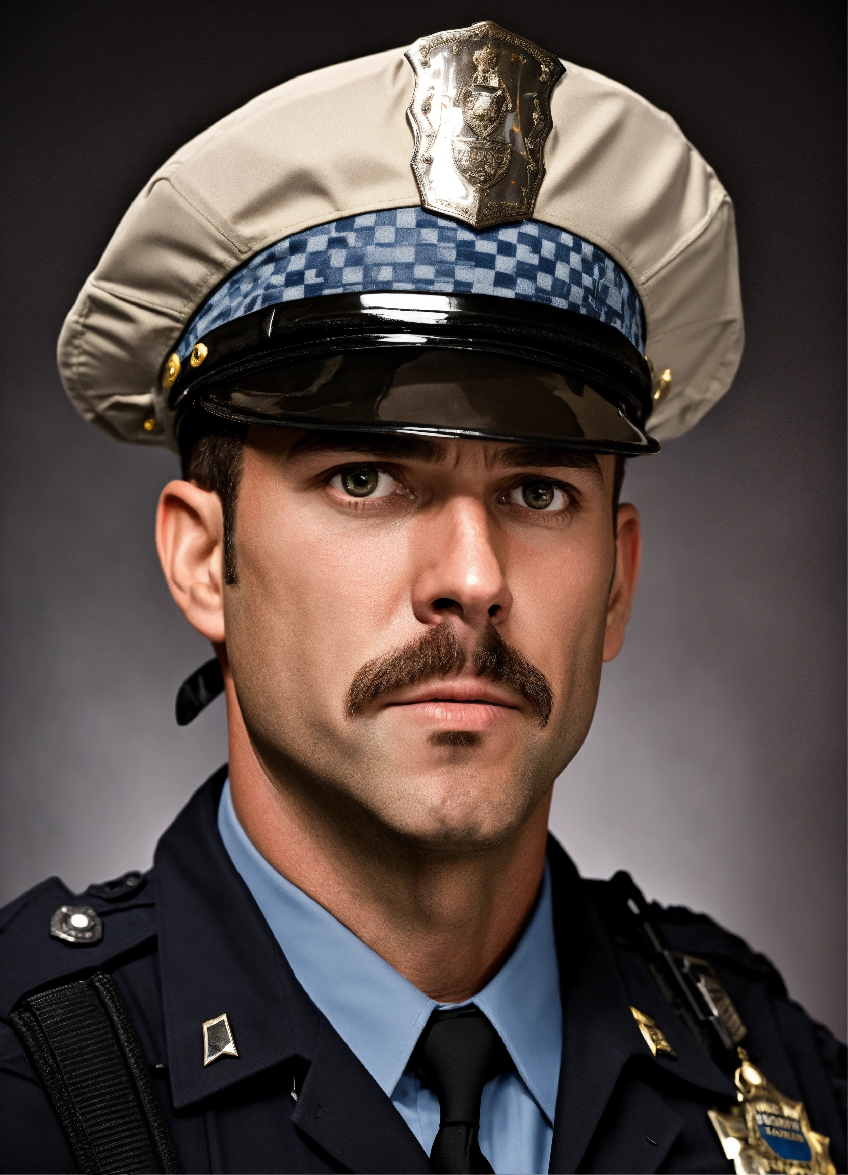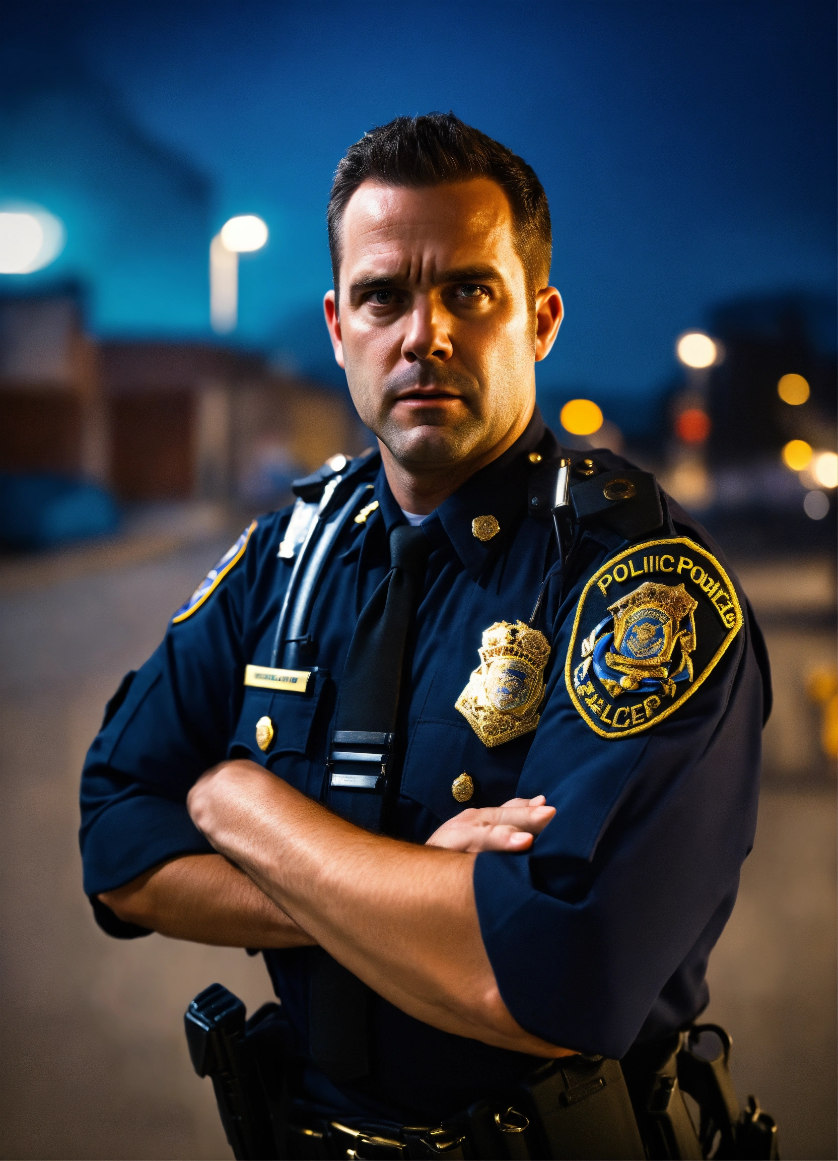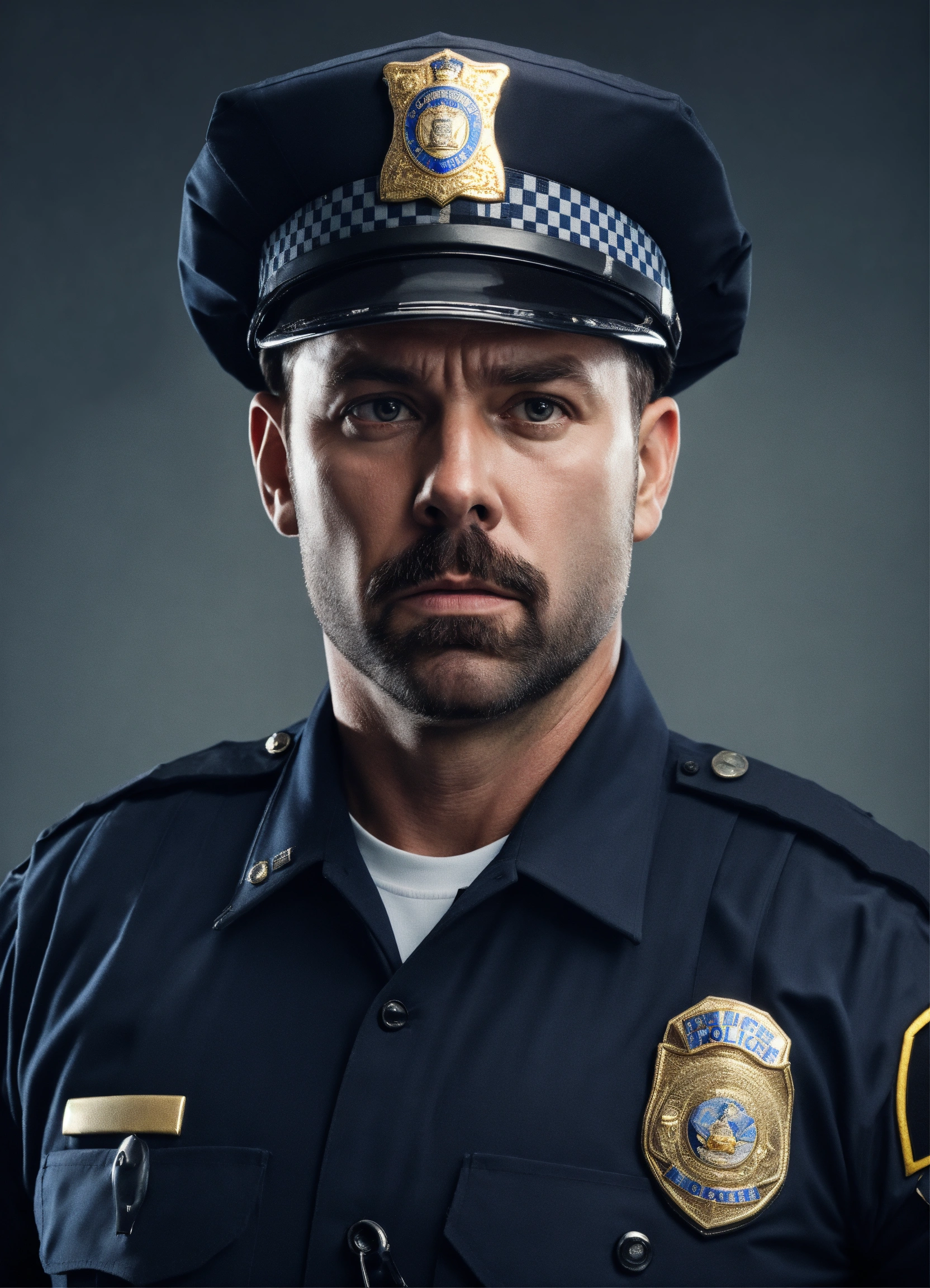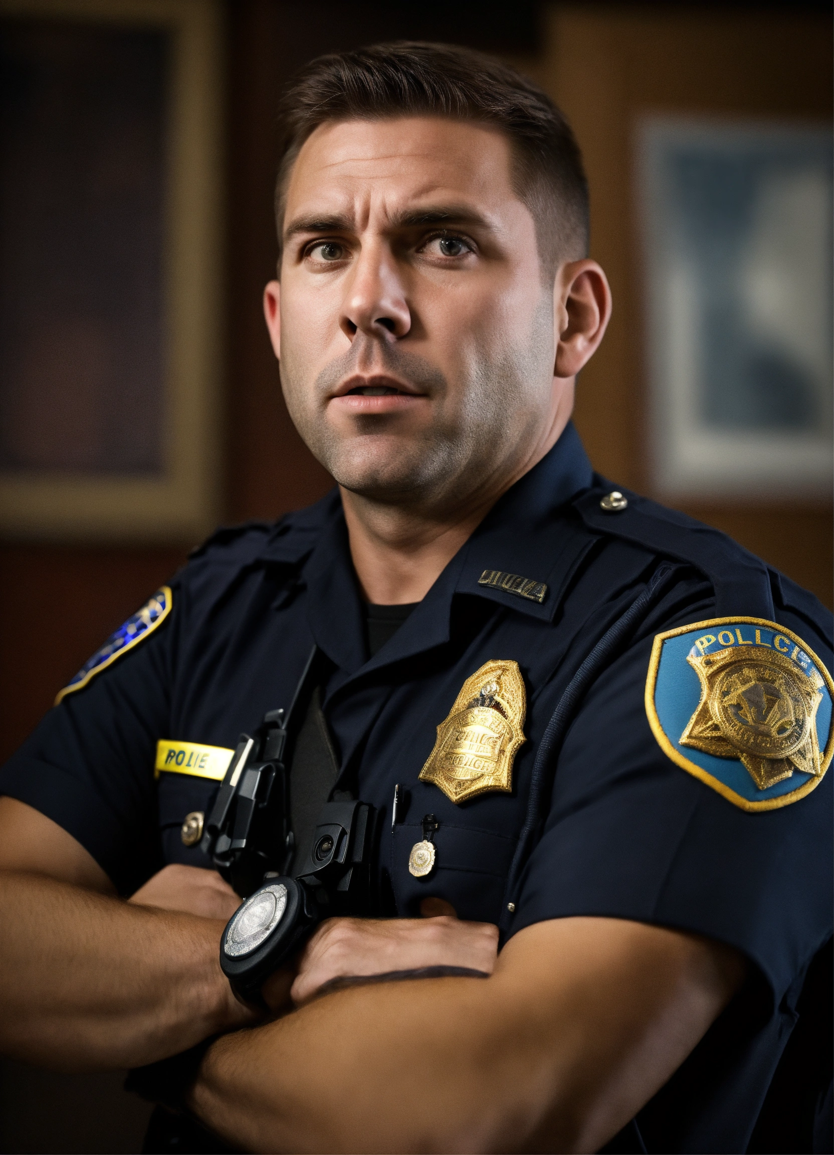 Scared random looking unique expressive police officer american man casually dressed expressive-looking front view looking real-life looking realistic