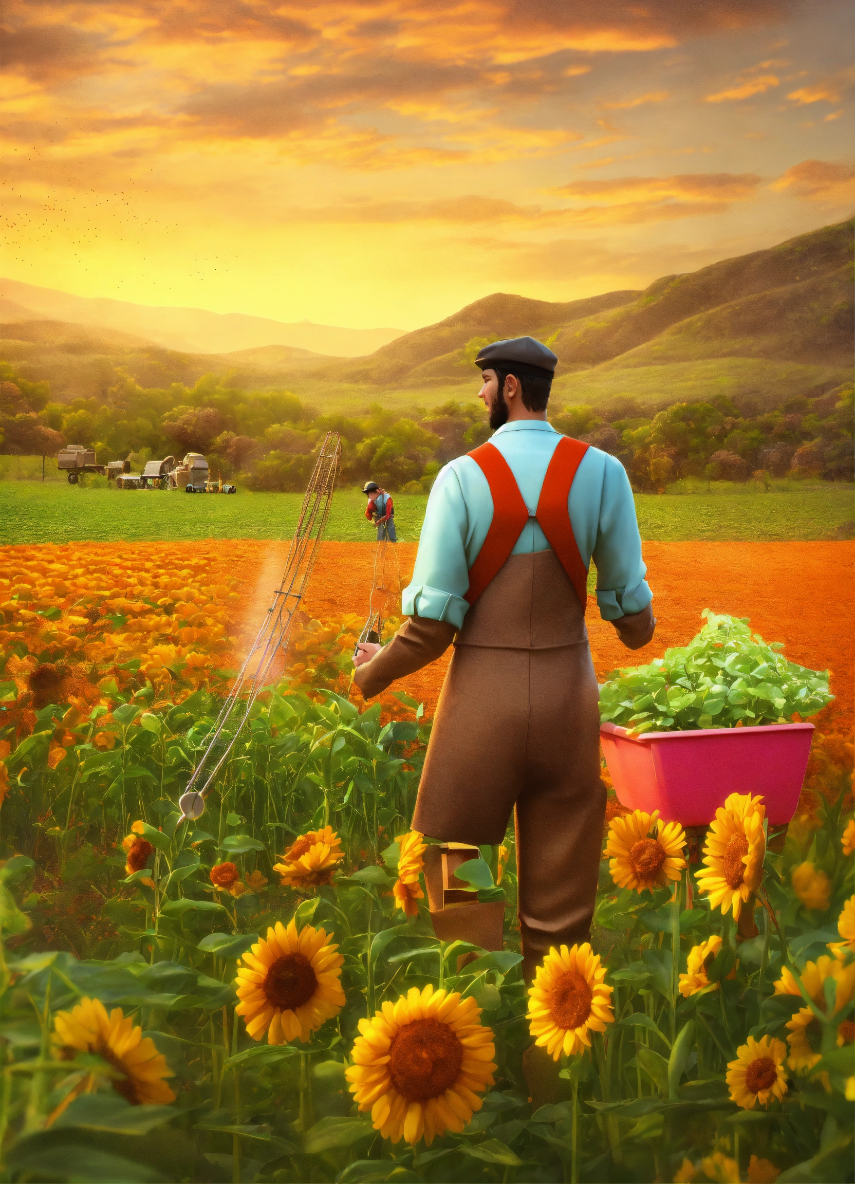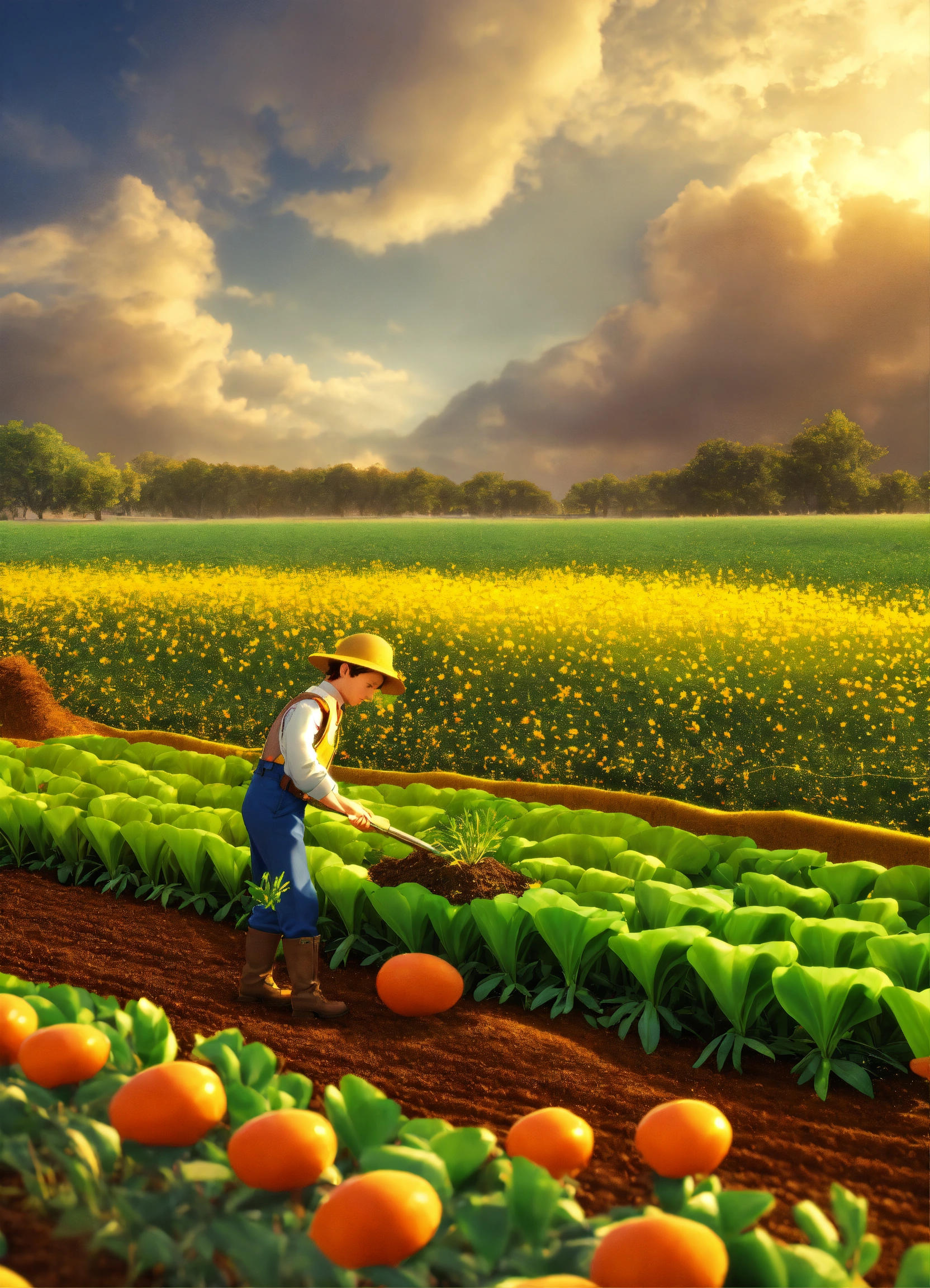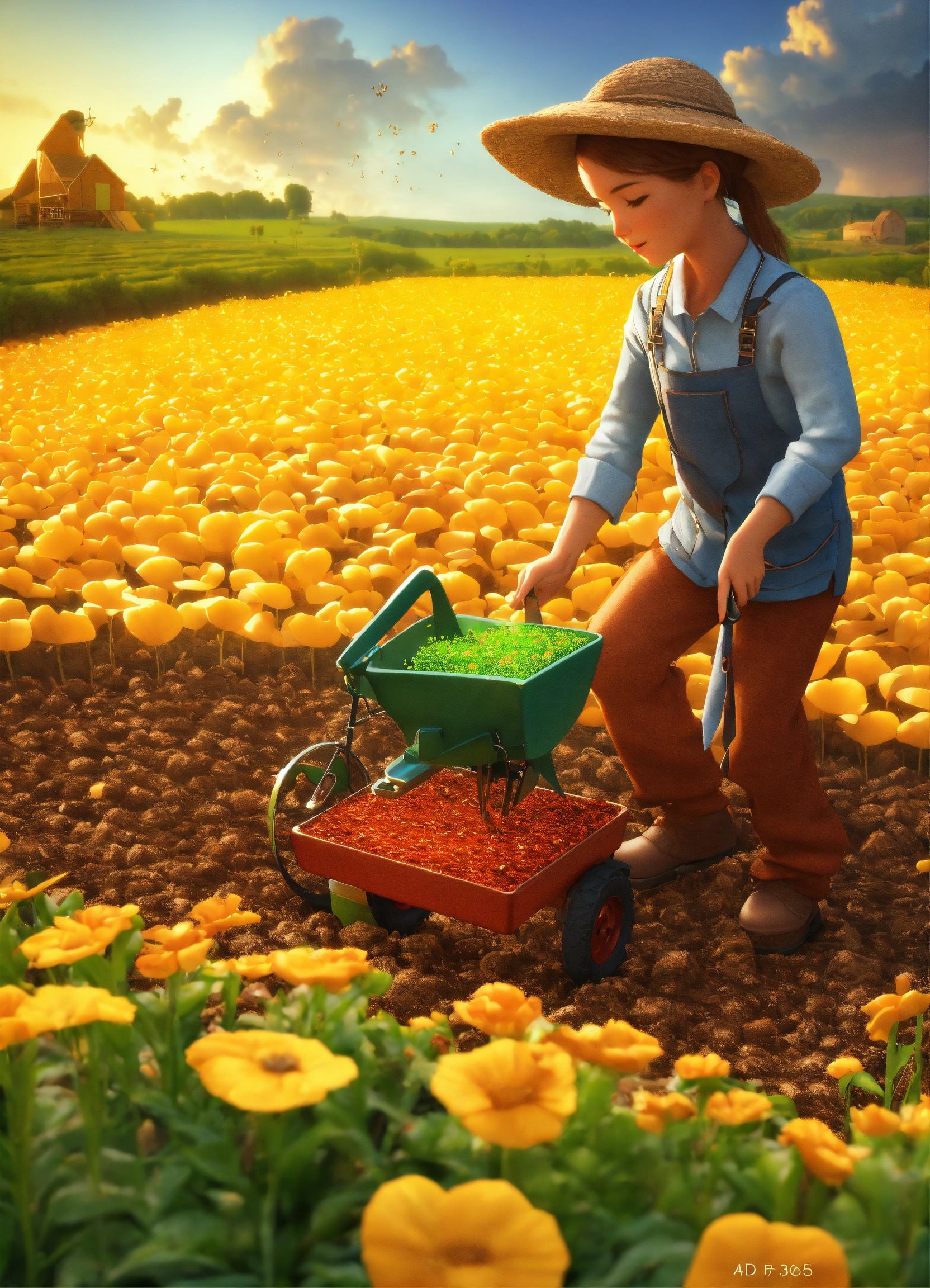 "sowing seed in the field " 3d pictures, storybook illustration, digital art, professional, high quality, detailed.